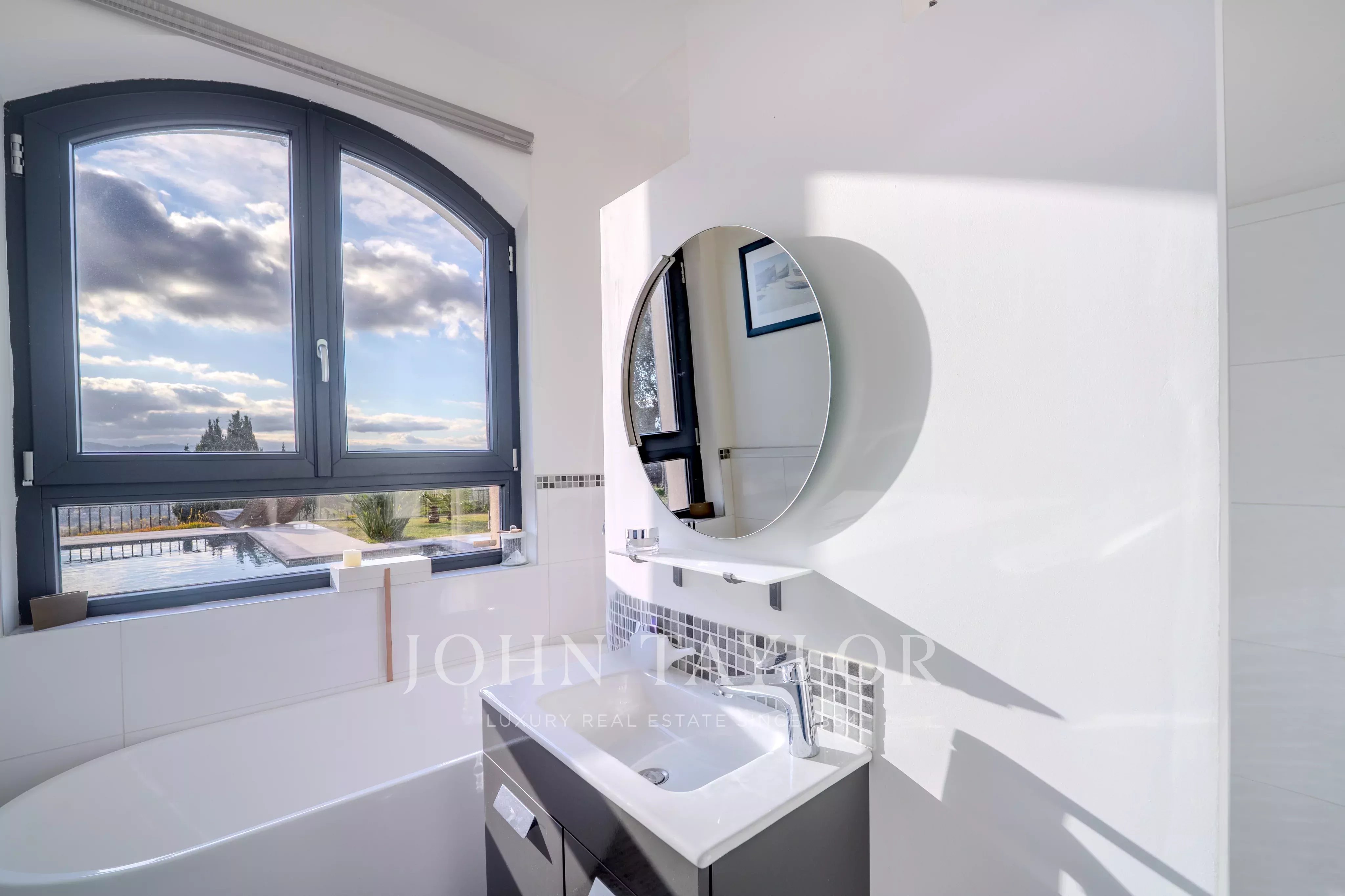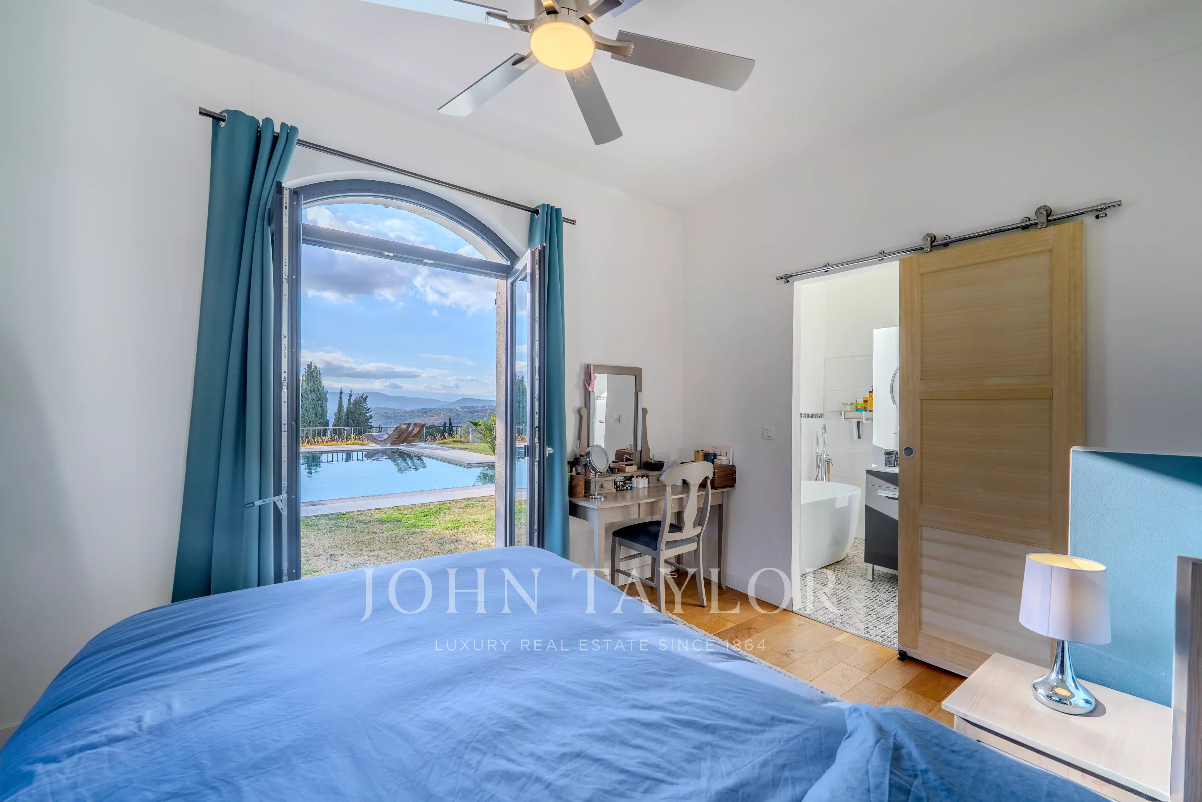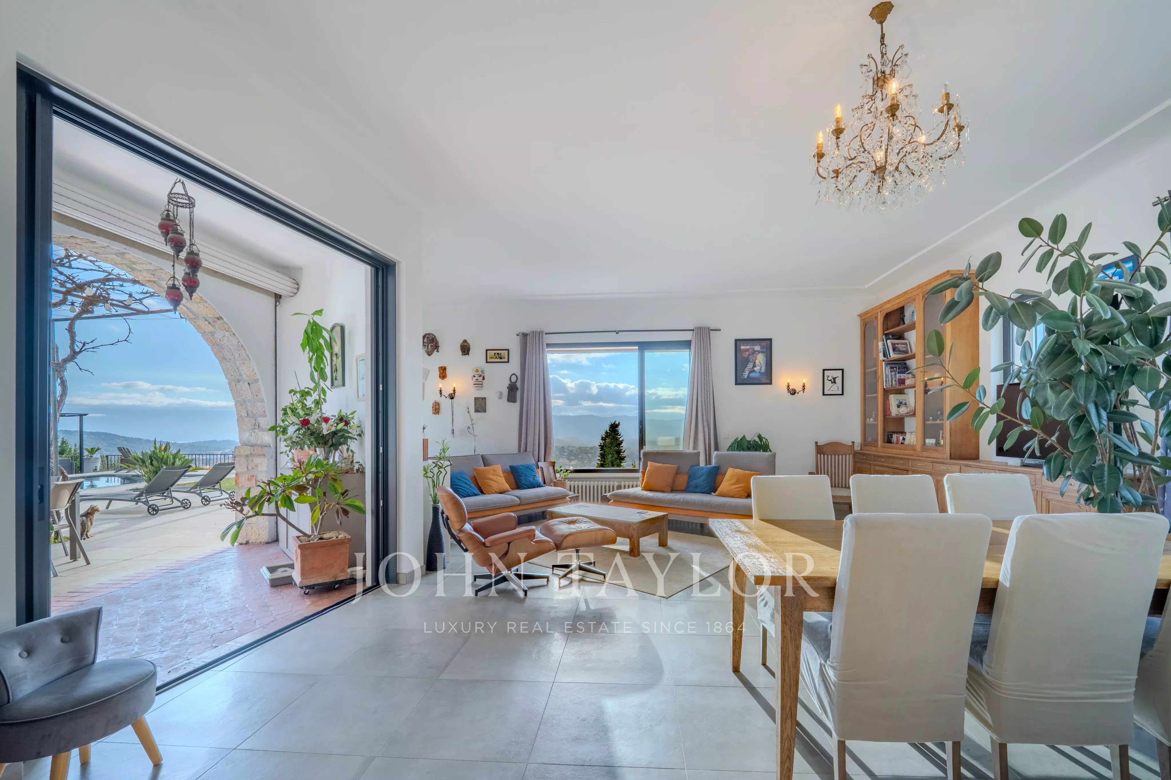 Этот отреставрированный особняк площадью 217 м2 с бассейном и джакузи, расположенный всего в нескольких минутах езды от деревни Вальбонн, покорит вас захватывающими панорамными видами, от Каннского залива до гор Граса, на территории площадью 3500 м2 с ландшафтным дизайном.