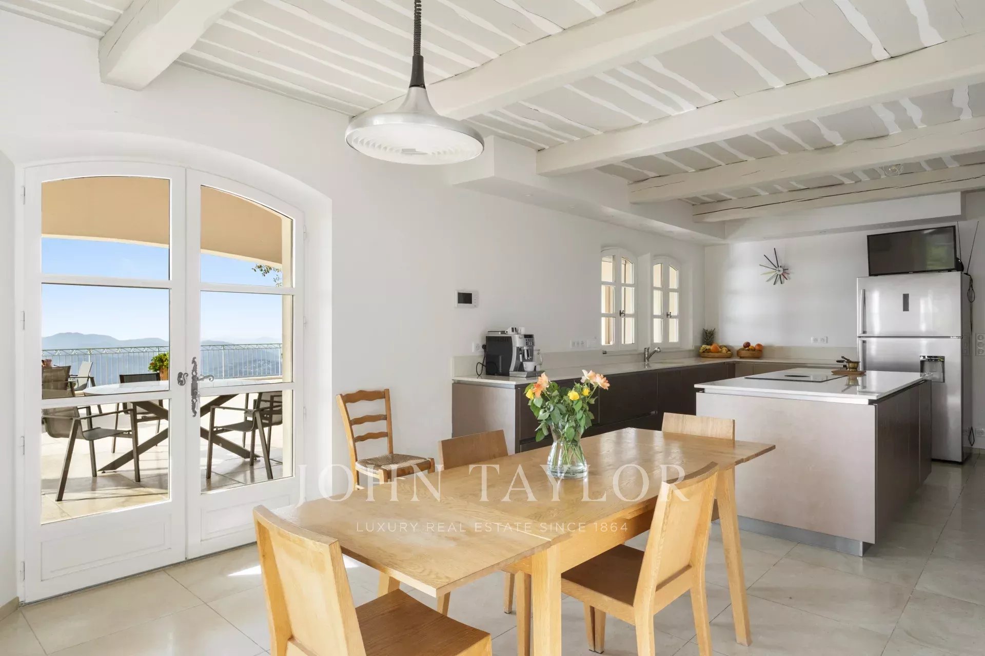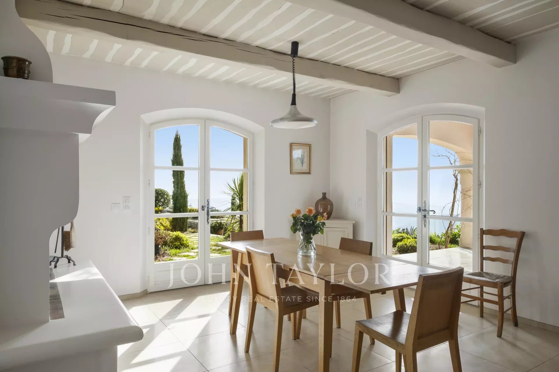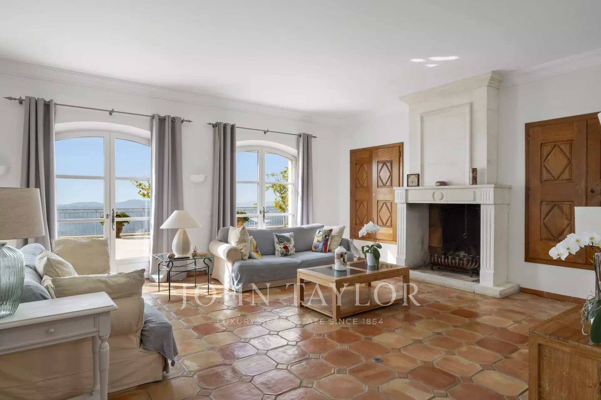 Великолепная прихожая с потолком двойной высоты ведет в просторную гостиную/столовую с элегантным камином и большими окнами-витражами, выходящими на огромную террасу. Очаровательная кухня в провансальском стиле с большим камином располагает к семейным обедам. На этом же уровне вы найдете кабинет, две спальни, включая главную спальню с привлекательной ванной комнатой, гардеробной и собственной террасой, а также прачечную, кладовую и гардеробную.