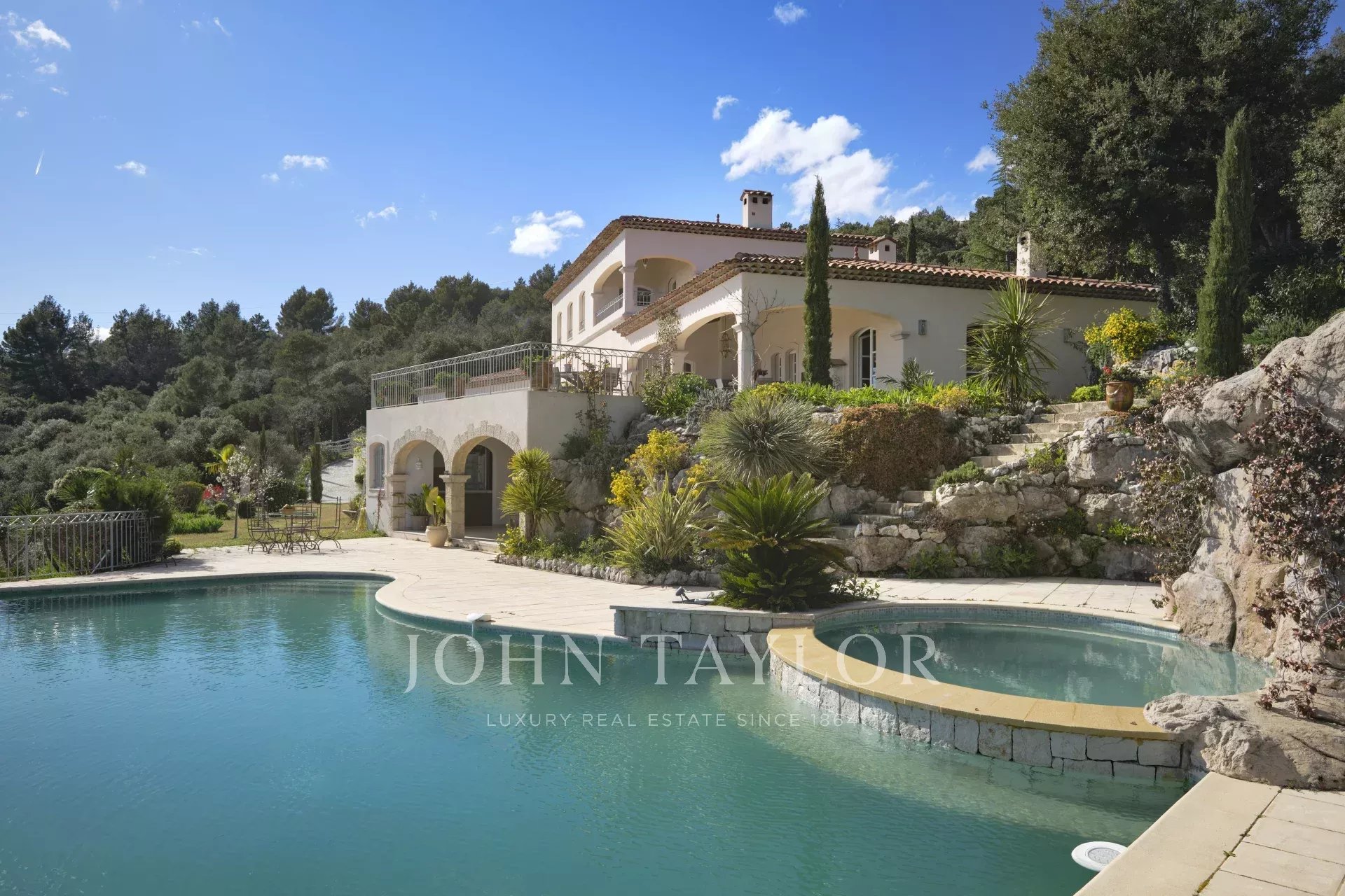 Великолепные водопады, окруженные средиземноморскими растениями, подчеркивают исключительный характер этого единственного в своем роде поместья.