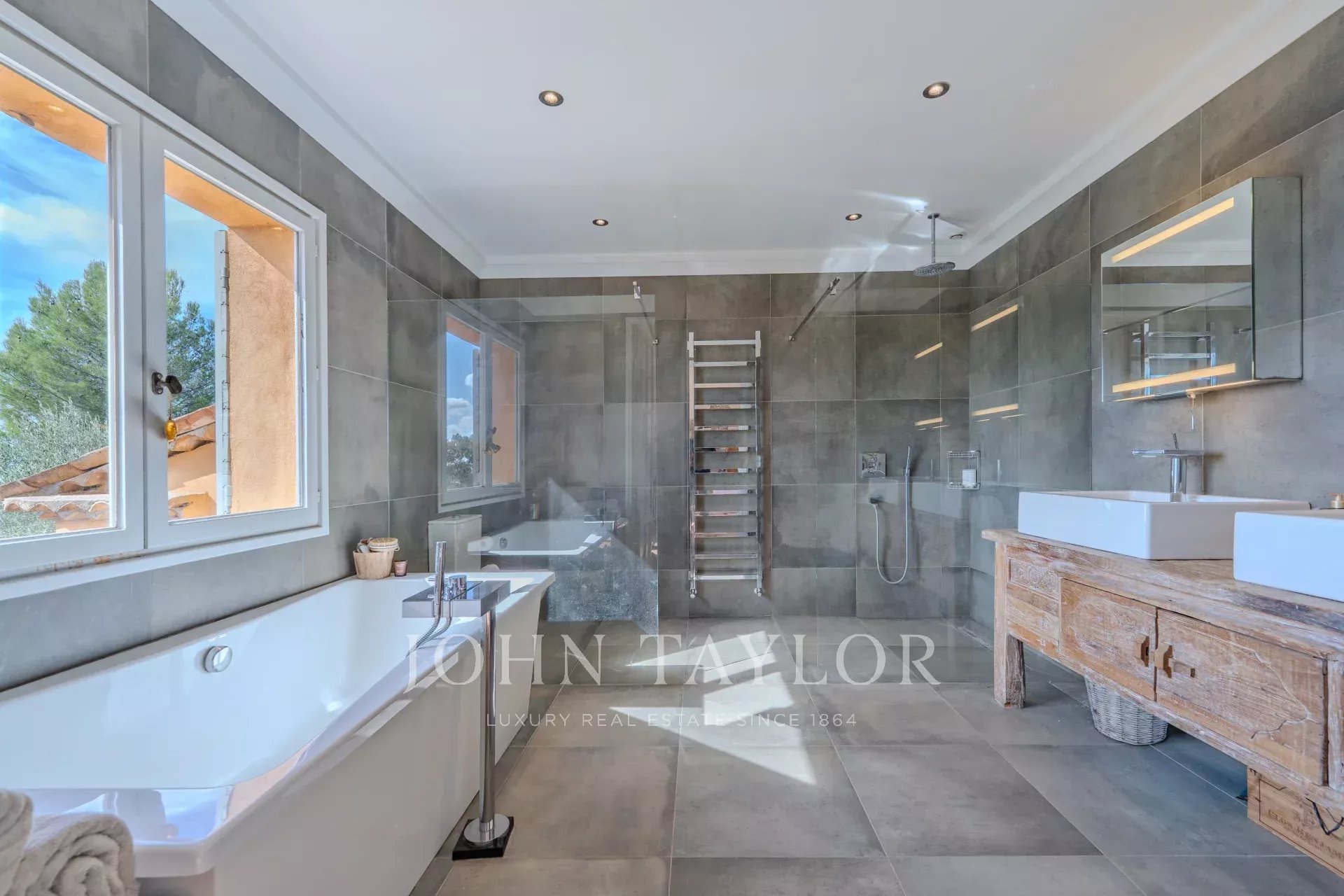 Навес для трех автомобилей дополняет комфорт этого великолепного поместья, идеально расположенного рядом с известными полями для гольфа и образовательными учреждениями, а также всего в 40 минутах езды от Канн.