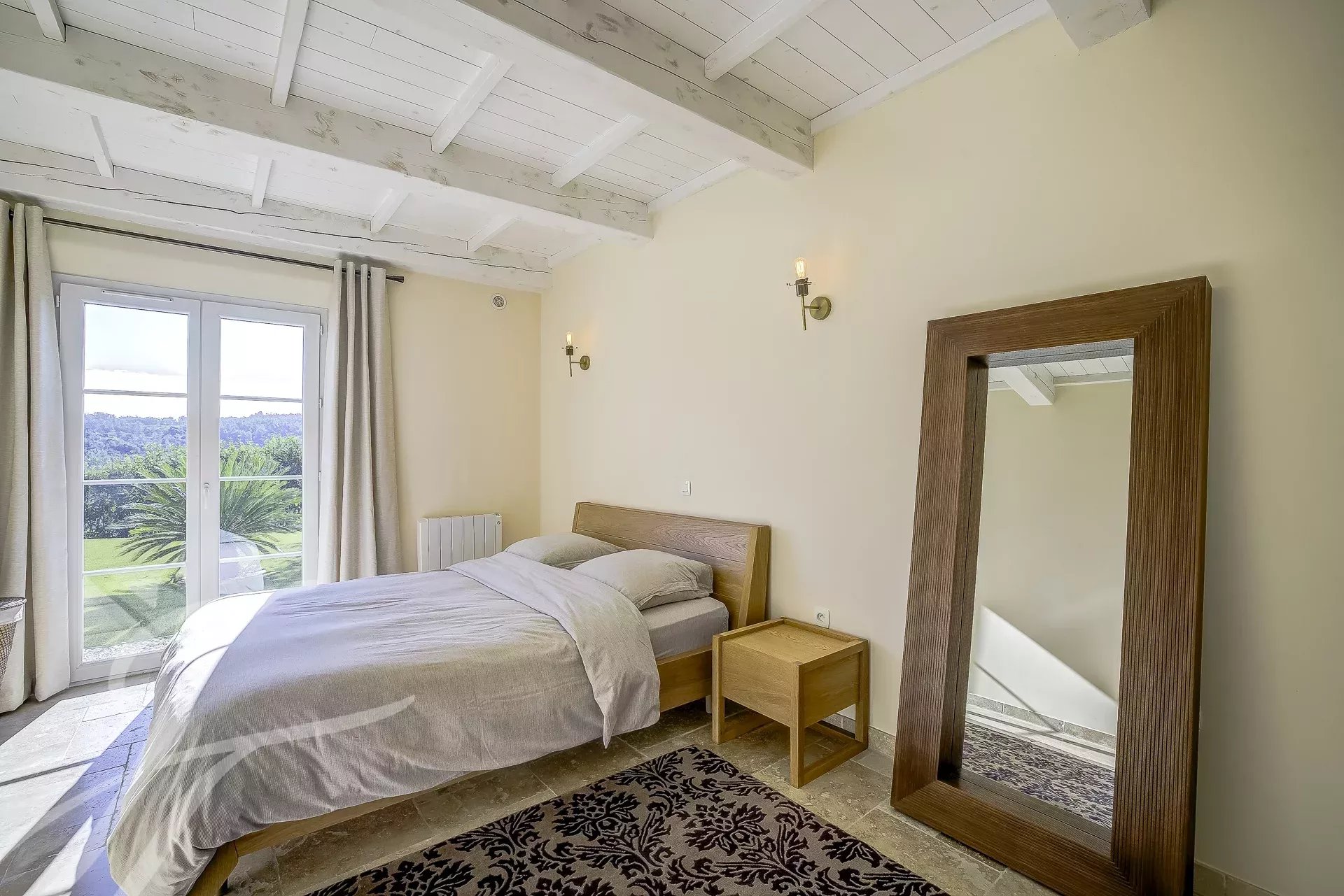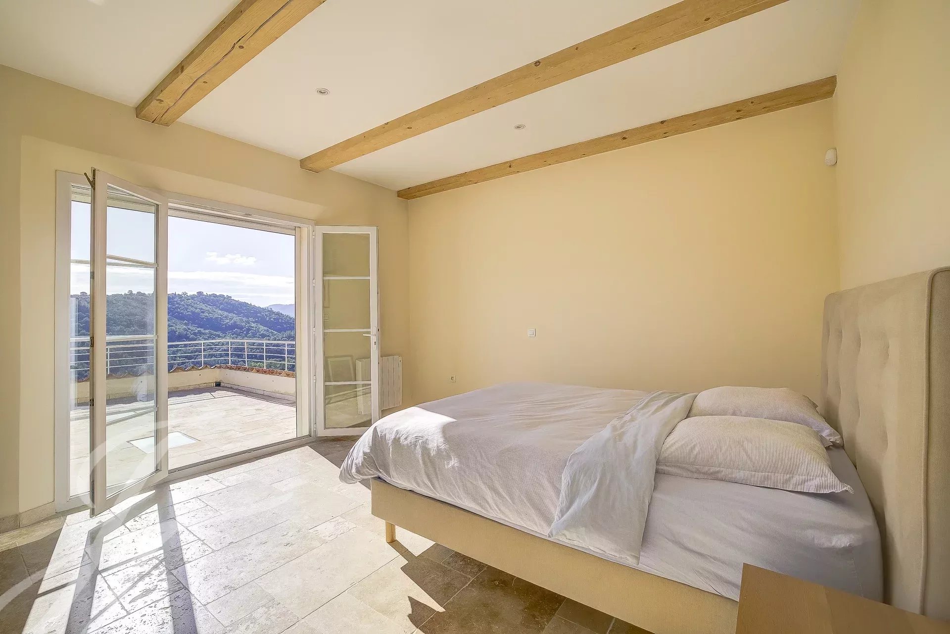 Верхний этаж отведен под главную спальню с ванной комнатой и собственным балконом с видом на холмы.
