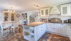 На первом этаже площадью около 230 м² расположены прихожая, отдельный туалет, кухня, подсобное помещение, спальня с ванной комнатой, еще три спальни и душевая комната с туалетом. Наверху - двойная гостиная, расширенная за счет большой веранды, холл, отдельный туалет и главная спальня с ванной комнатой и гардеробной.