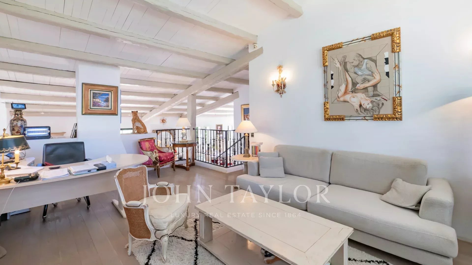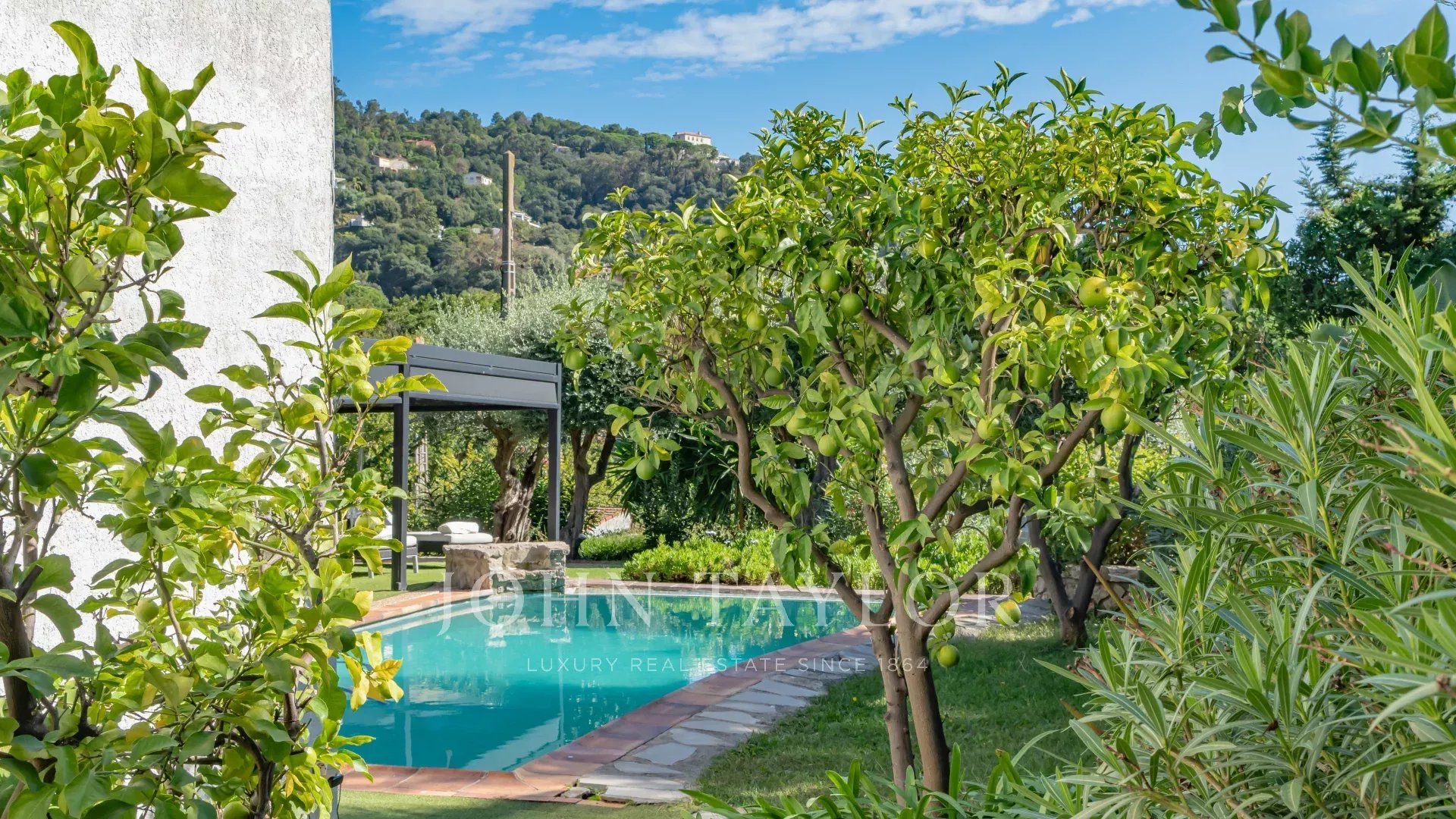Эта вилла находится недалеко от центра города и окружена зеленью. На ее открытой территории, засаженной многочисленными средиземноморскими растениями, есть несколько террас, окружающих бассейн.