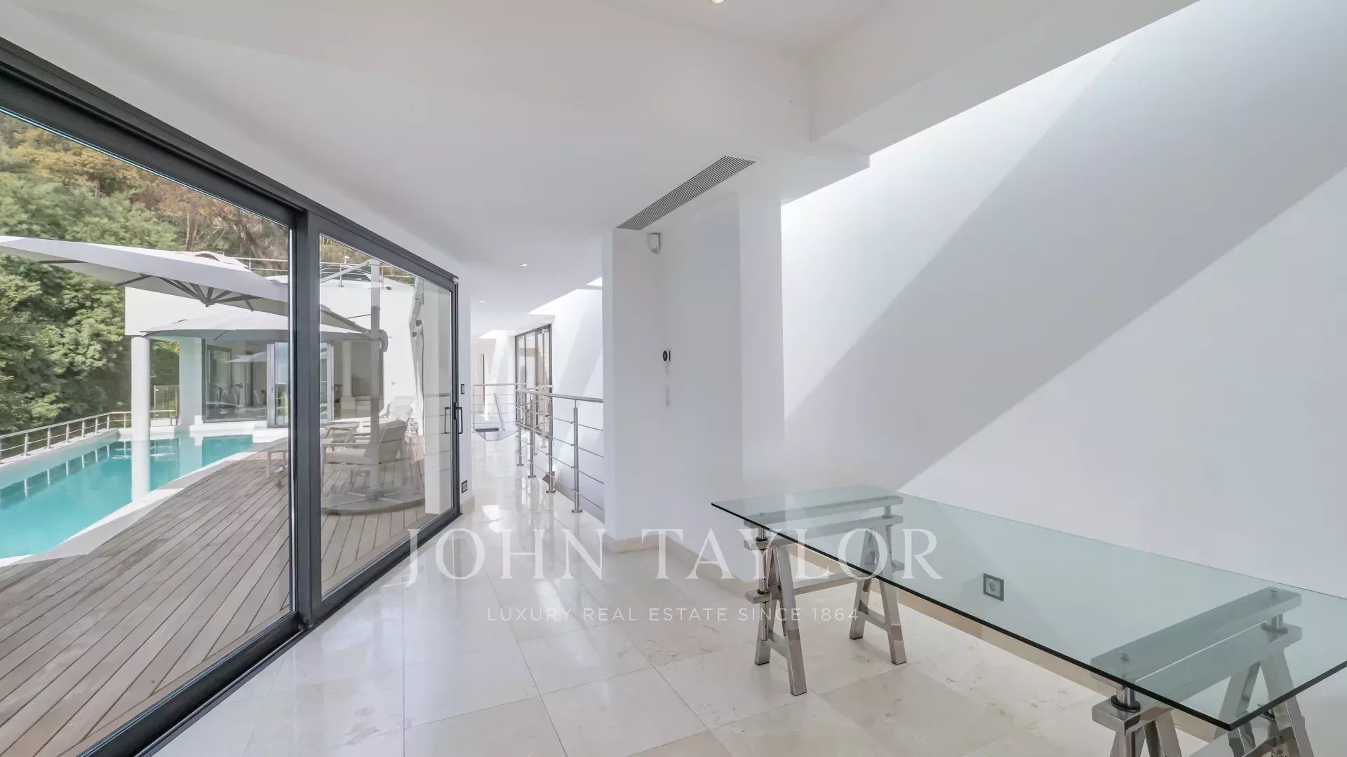 Расположенная в тихом жилом районе, в 500 метрах от пляжа и в 10 минутах от центра города, эта современная, наполненная светом вилла предлагает прекрасные материалы и идиллическую обстановку для жизни.