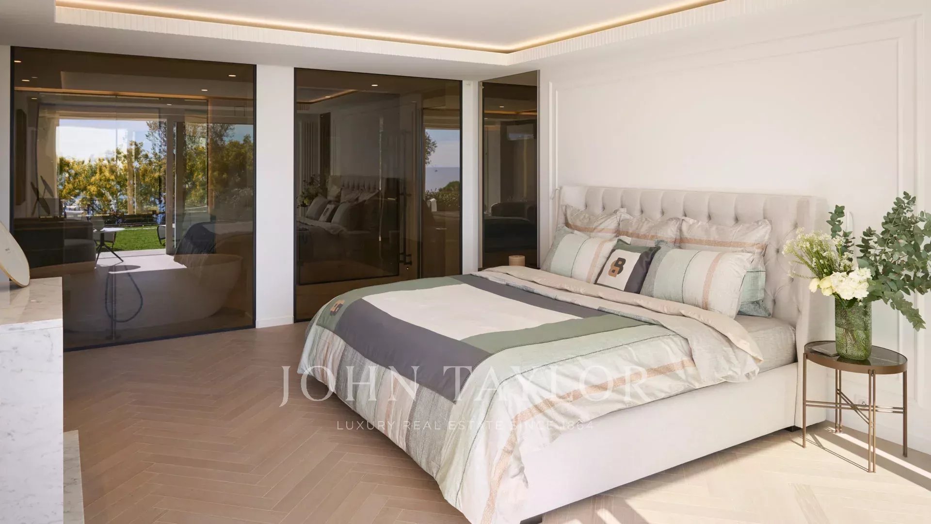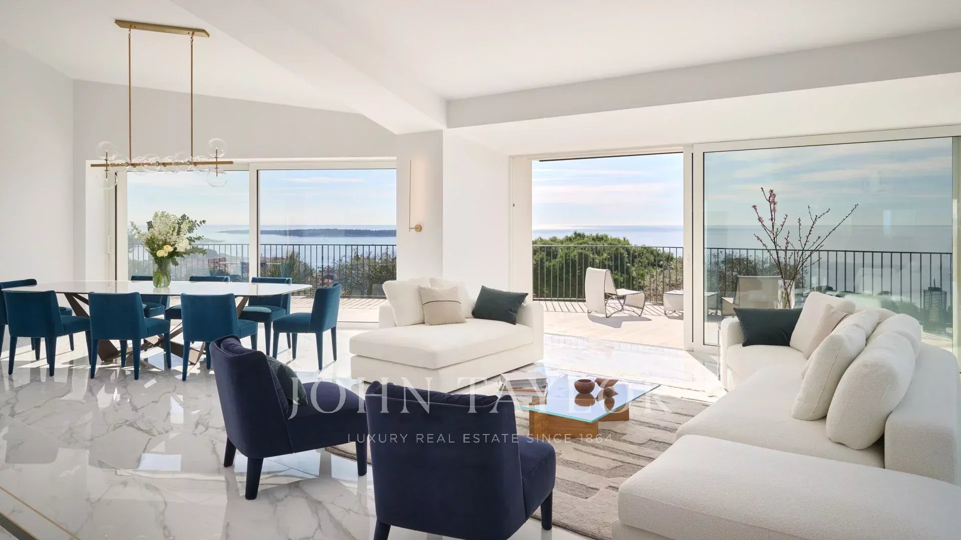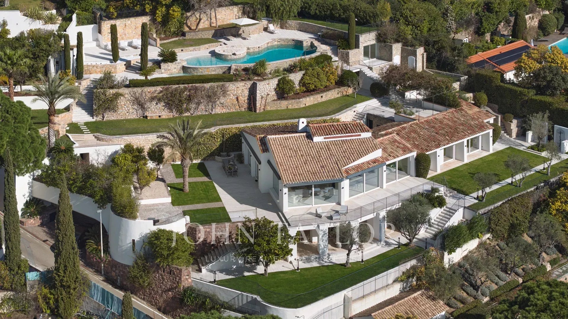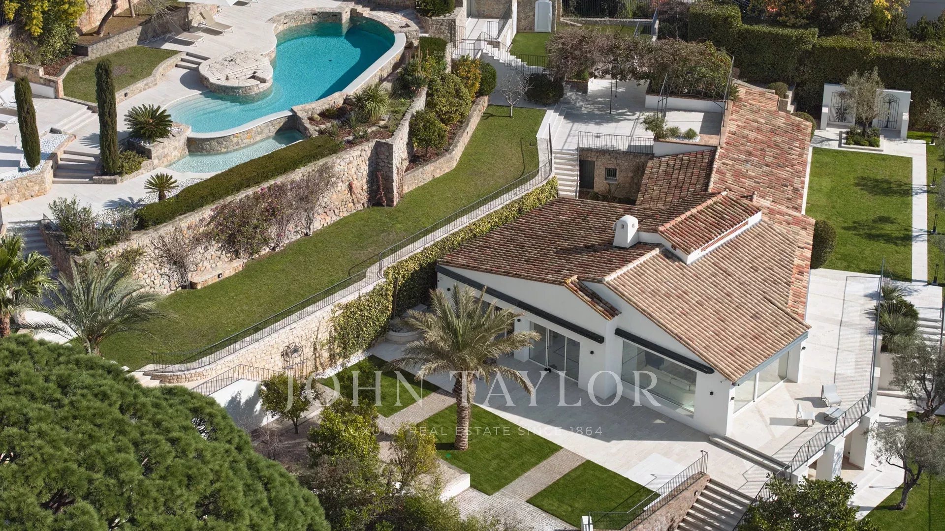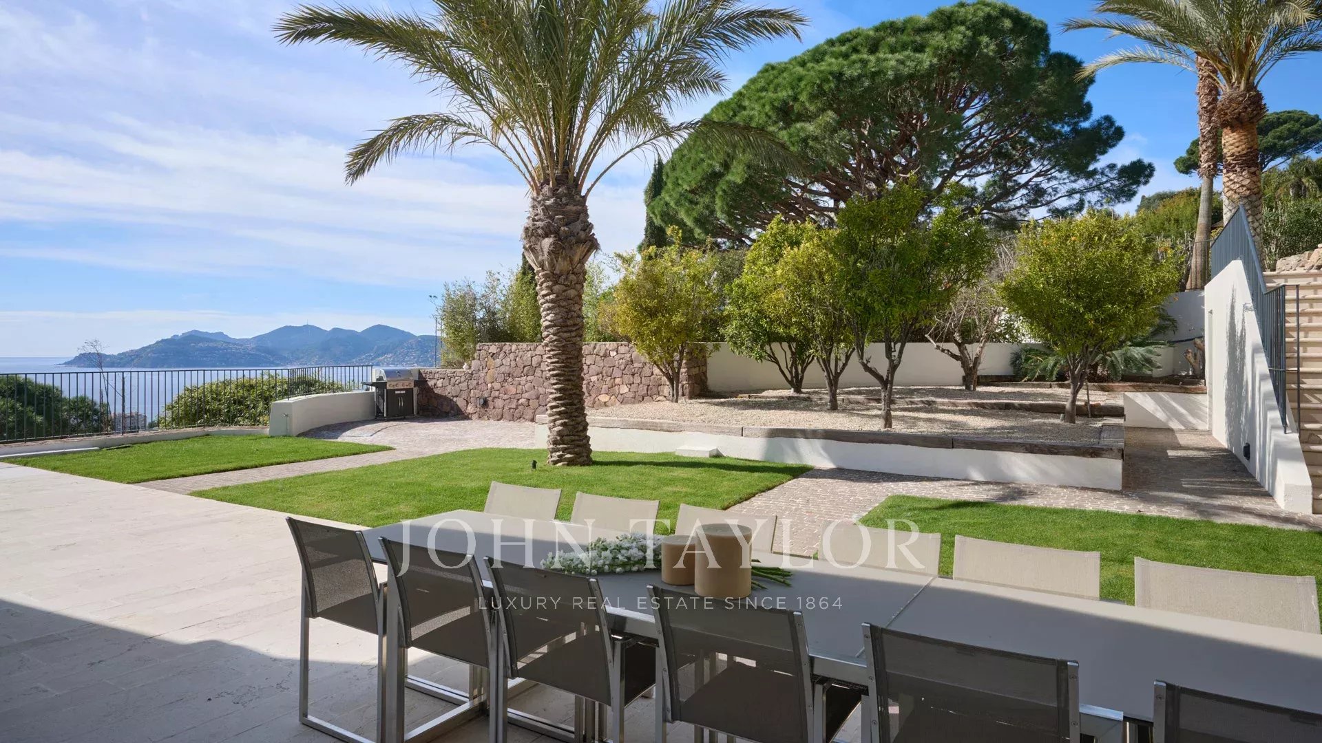 Великолепная вилла расположена на участке около 2400 кв.м с бассейном. Красивый вид на море, Сюке, каннский залив и на Кап д'Антиб.