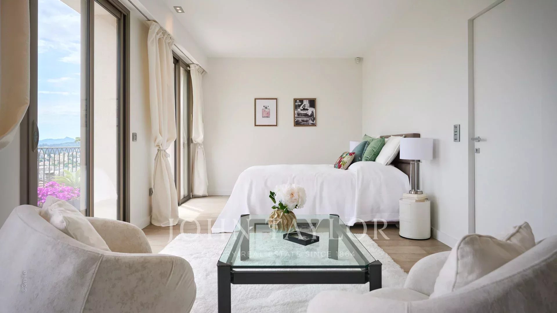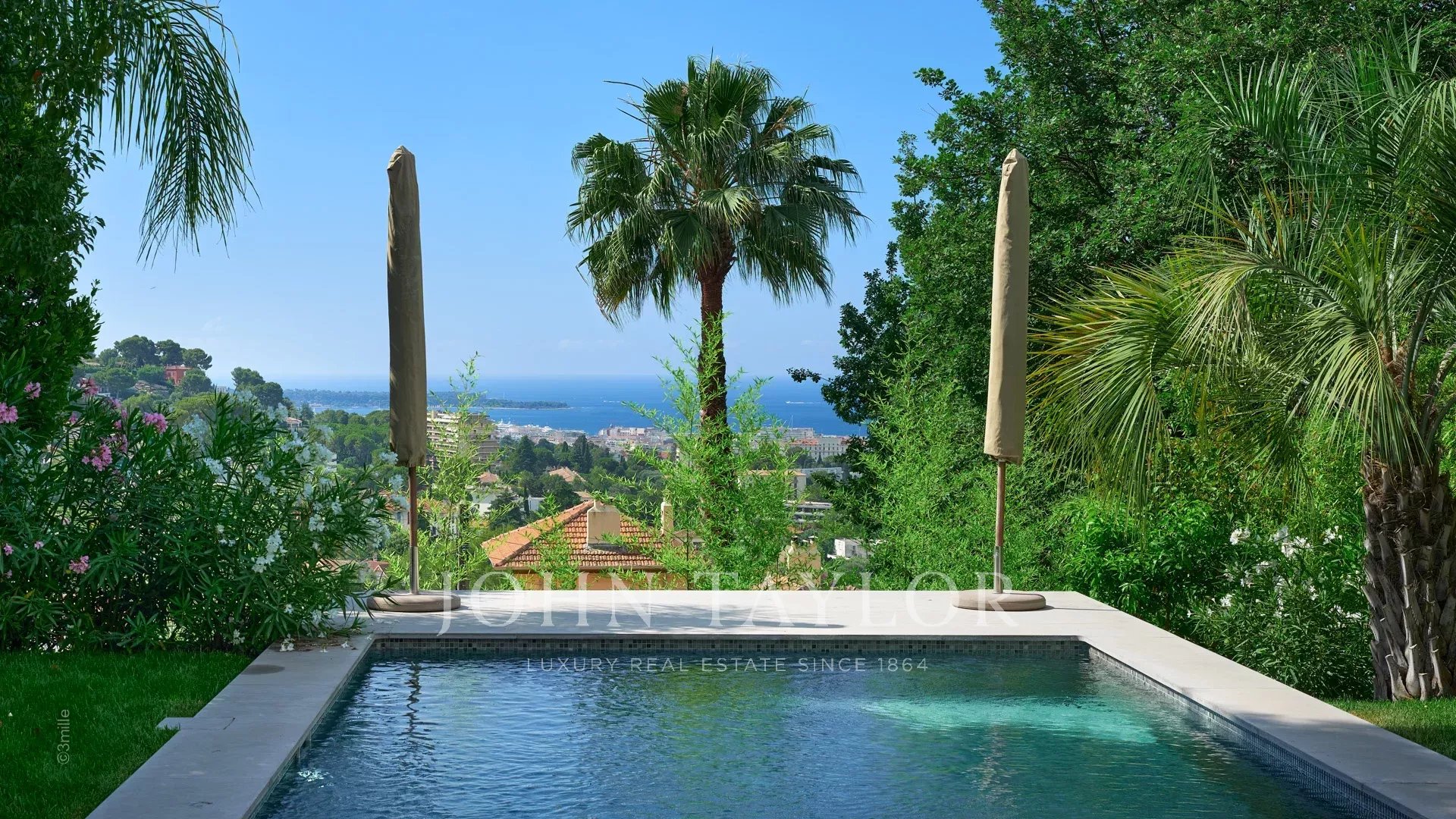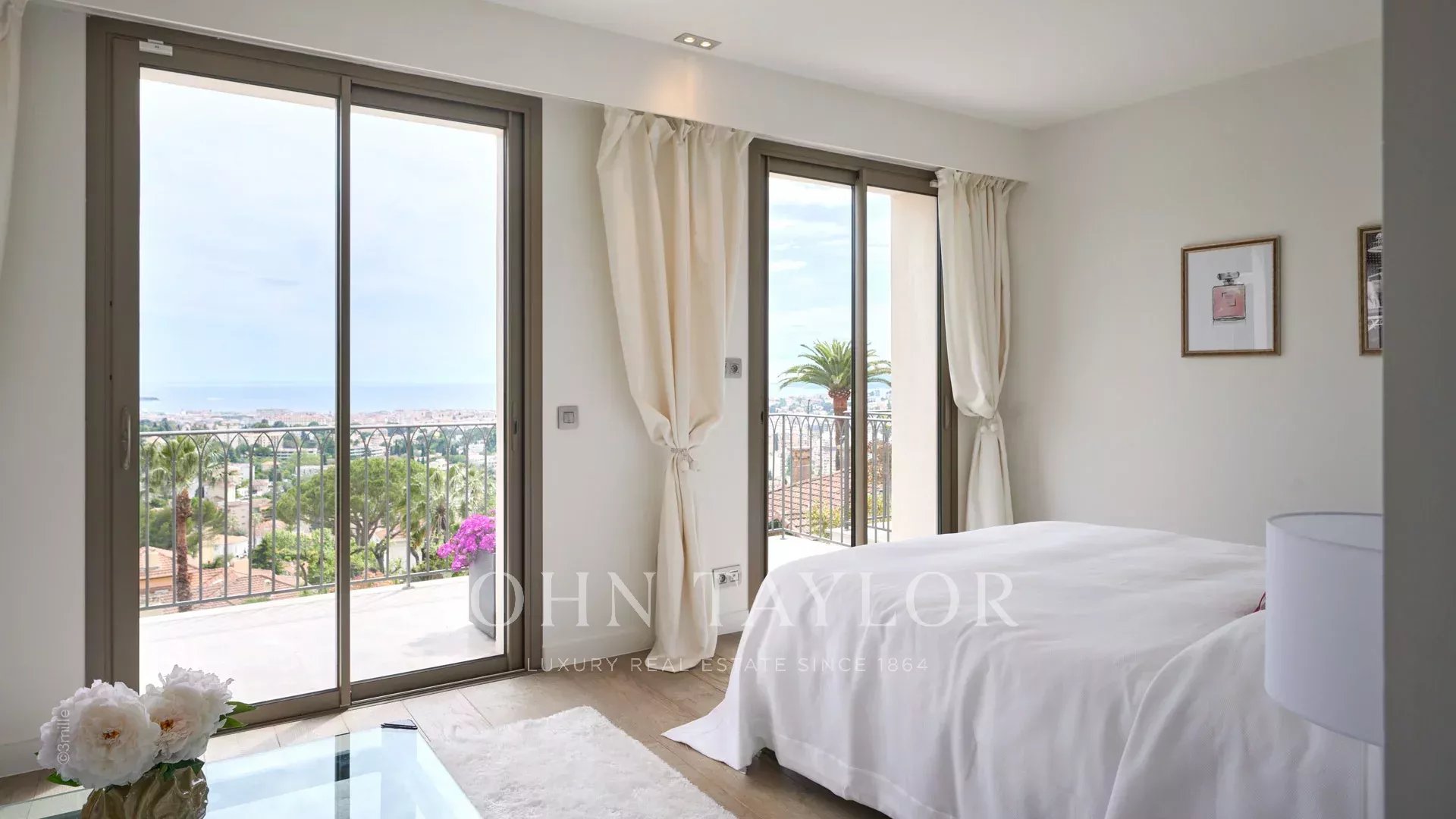 Из окон виллы, выходящих на южную сторону Каннского залива, открывается вид на море от Леринских островов до горного массива Эстерель.