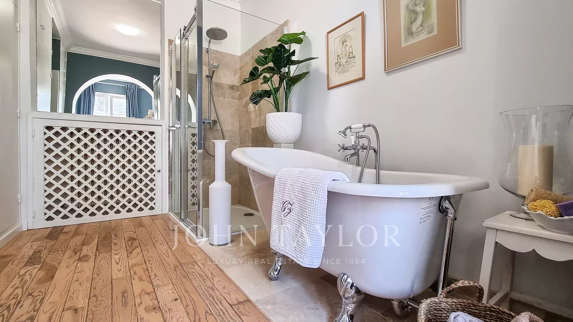 Эта бывшая резиденция русского графа расположена в жилом районе Ле Канне на территории площадью около 2 885 м2, где растут столетние оливковые деревья, фруктовые деревья и цветочный сад, который благоухает вокруг великолепного мозаичного бассейна.