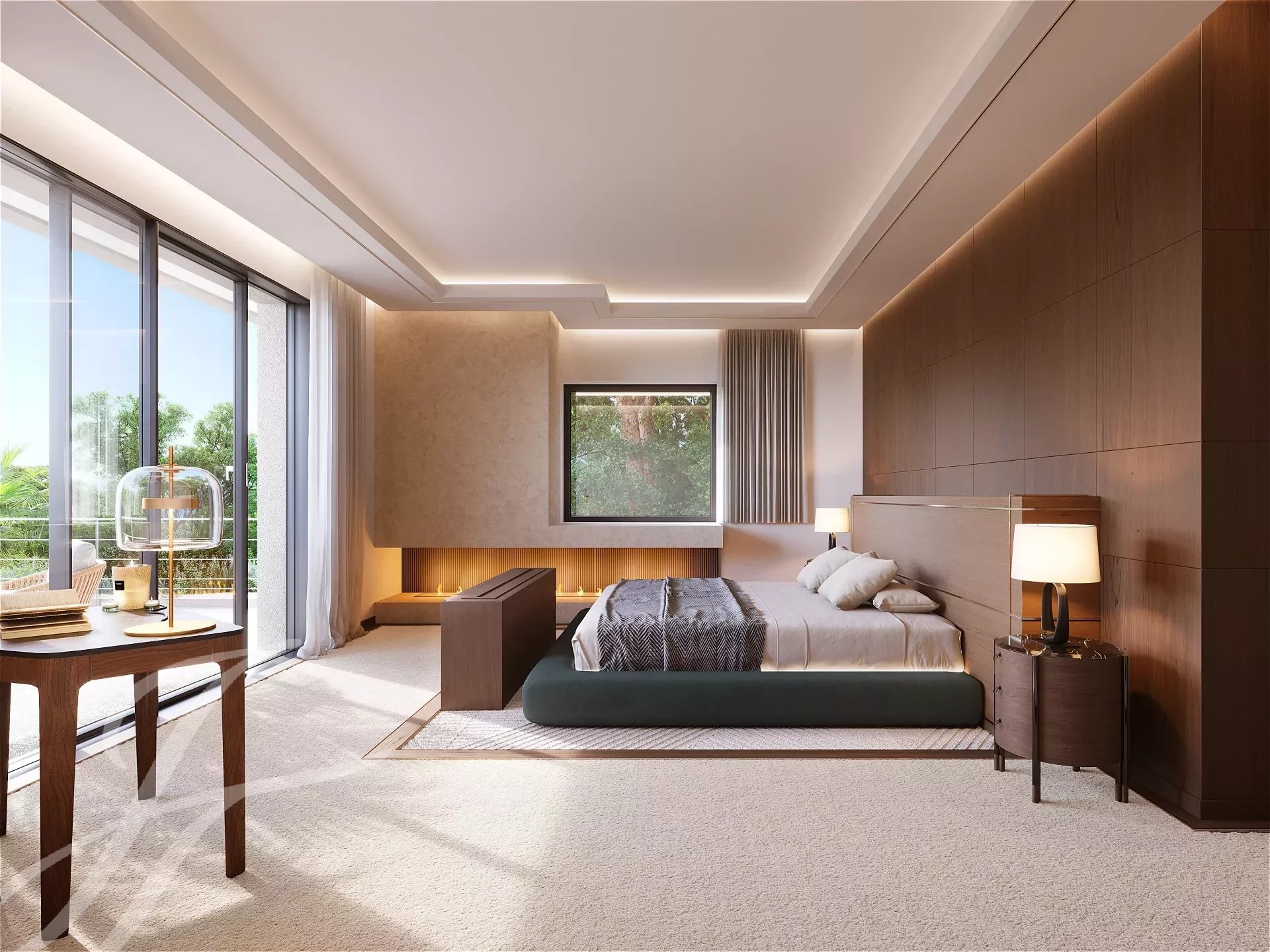 Ночной этаж площадью 260 м² включает главную спальню площадью 70 м² с гардеробной, ванной комнатой/душем и хаммамом, четыре спальни с ванными комнатами/туалетами, все выходят на террасу с видом на море.