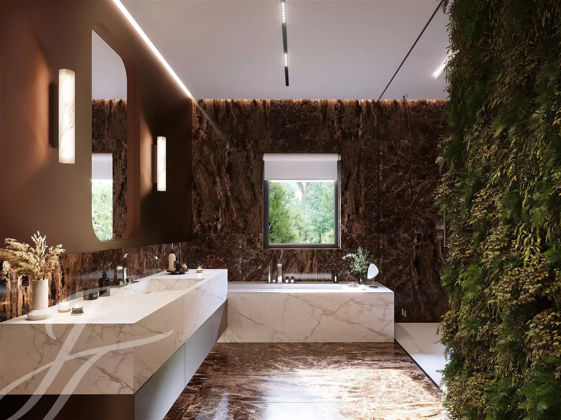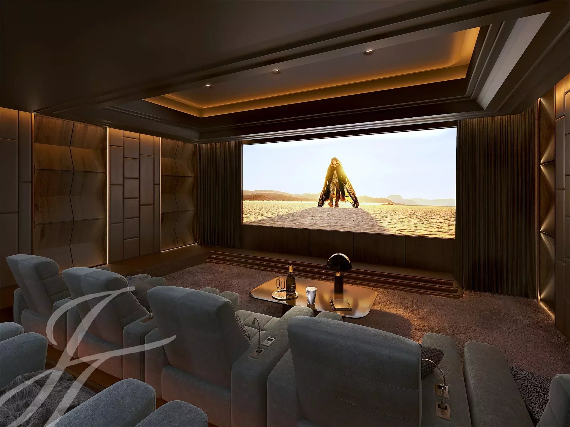 Оздоровительный уровень (около 336 м²) включает в себя тренажерный зал, крытый бассейн с подогревом (8 м x 4 м), массажный кабинет, зону отдыха и медитации, гардеробную + туалет, кинотеатр с баром, две спальни с отдельными душевыми комнатами/туалетом.
