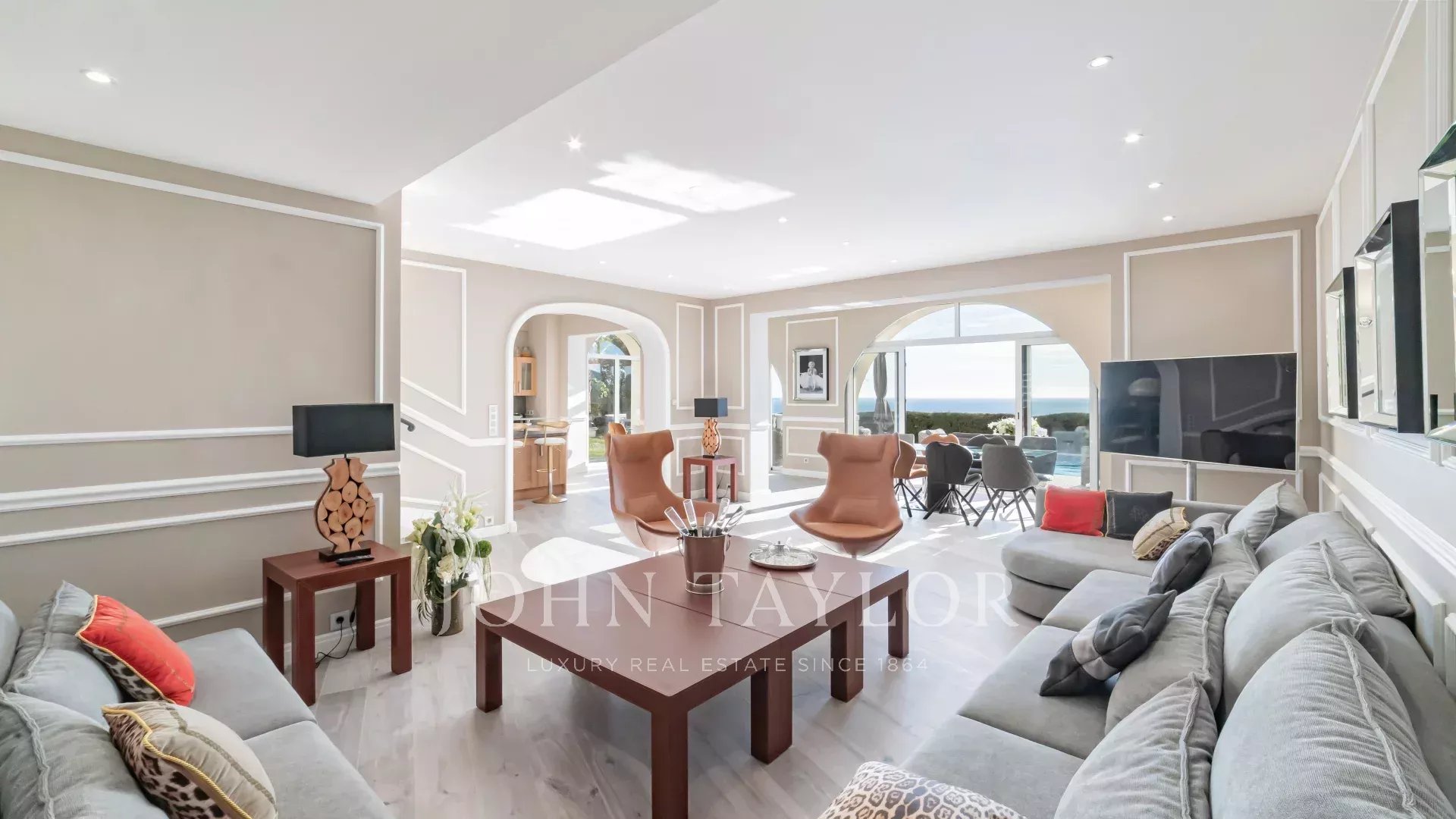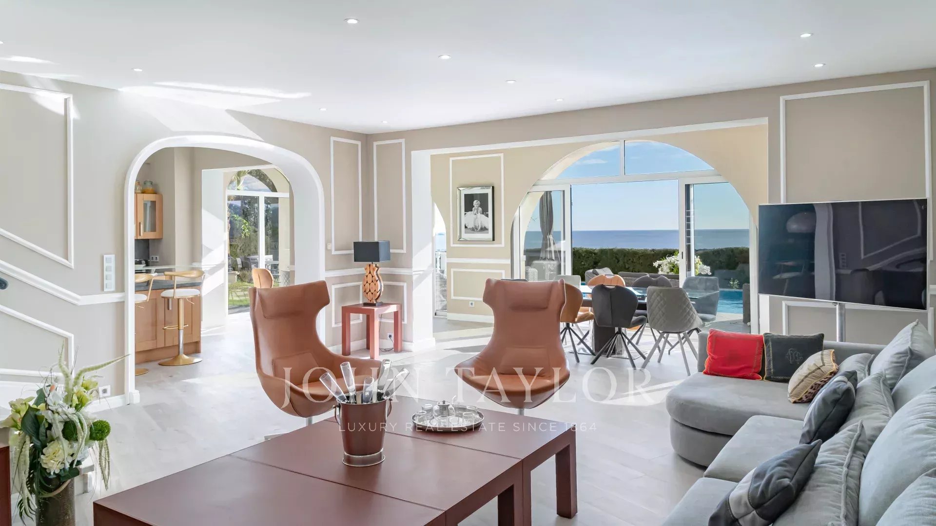 - Уровень сада: светлая двойная гостиная, кухня открытого плана, столовая и просторная терраса с видом на бассейн-инфинити.
