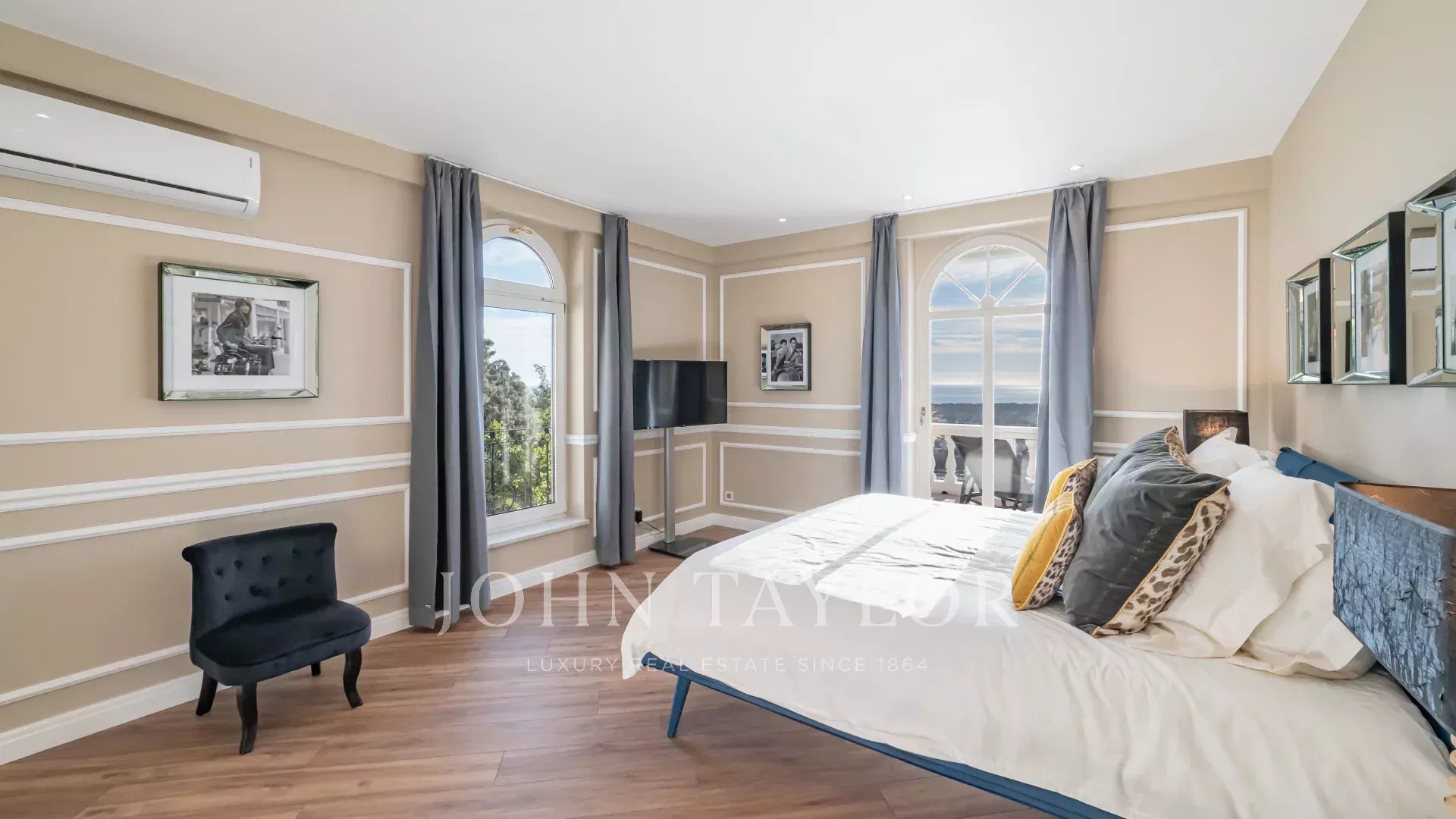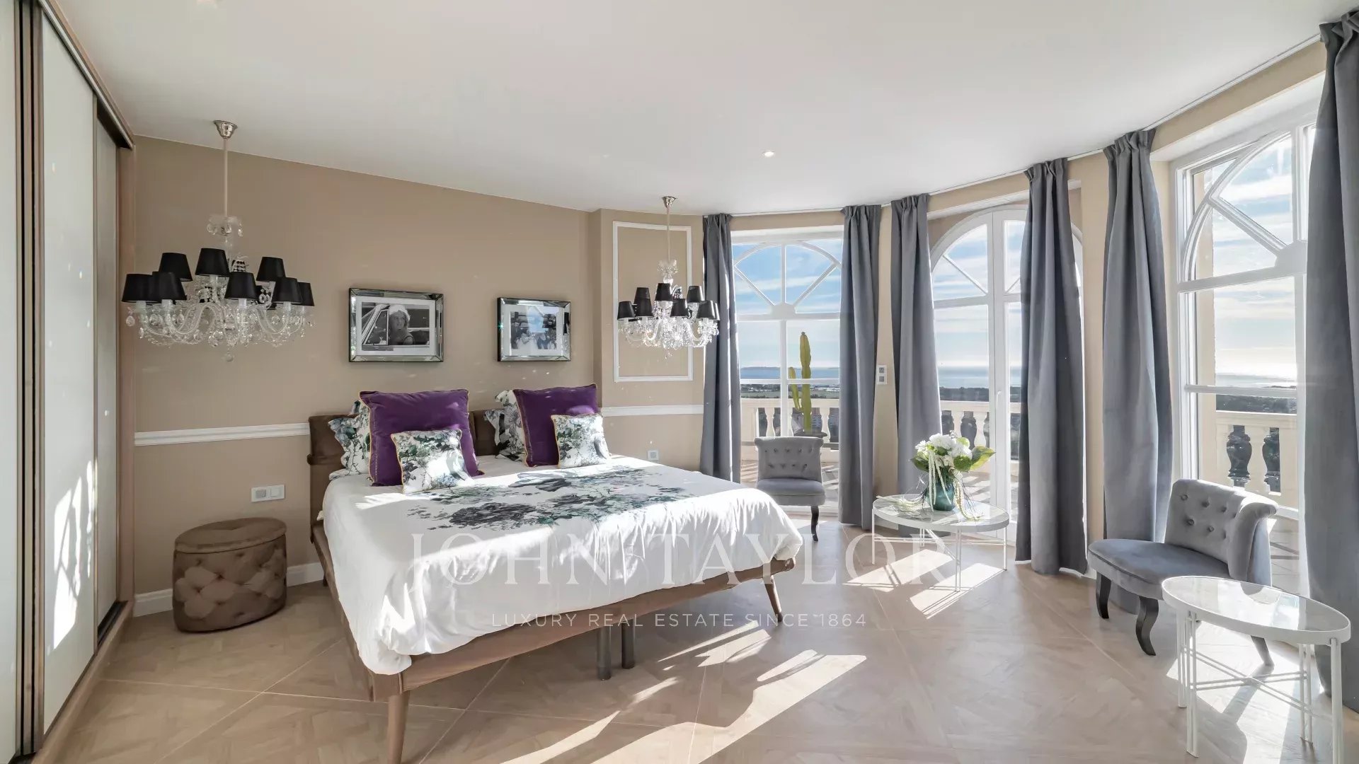 Расположенная в жилом районе недалеко от центра города Манделье, эта красивая вилла с бассейном-инфинити на южной стороне имеет панорамный вид на Каннский залив.
