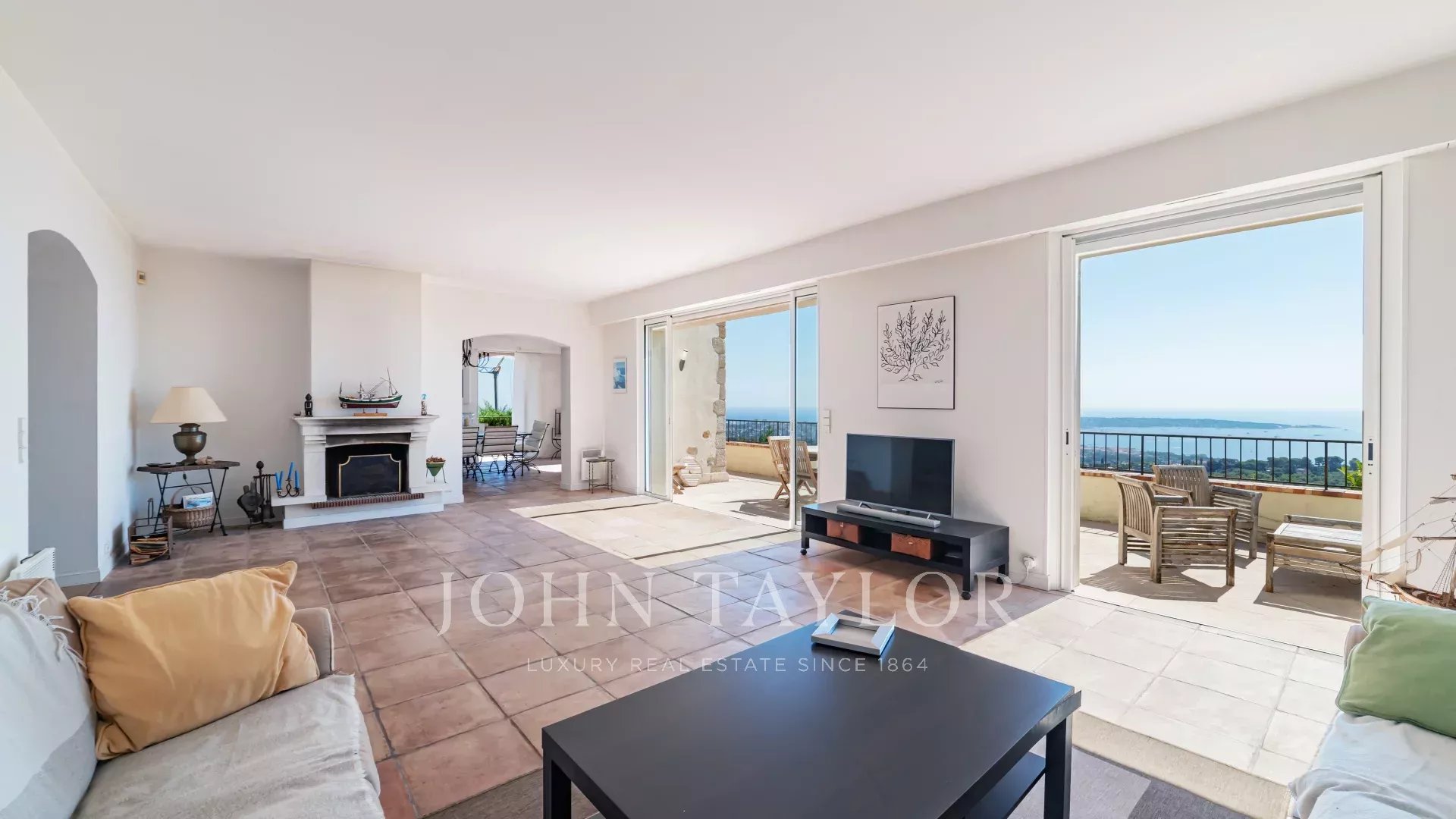 Эта провансальская вилла на участке площадью 1820 м² с бассейном расположена на возвышенности Гольф Жуан, недалеко от основных дорог. Из окон открывается исключительный вид на море и Кап д'Антиб.