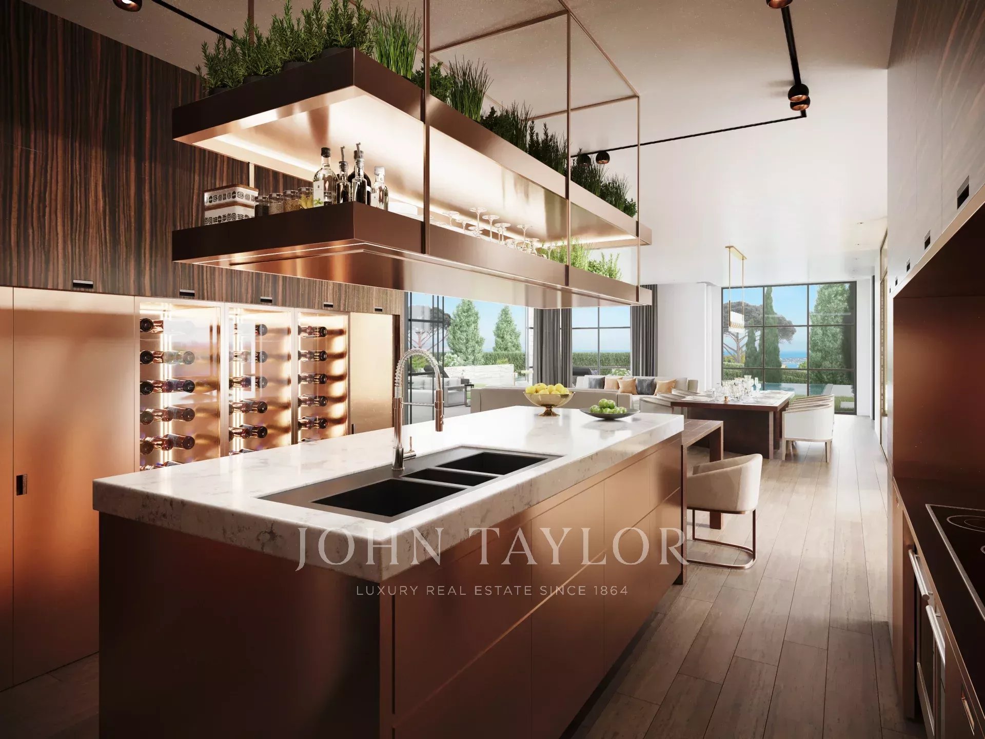 Эта современная вилла площадью около 400 м² расположена в закрытом жилом комплексе в престижном и очень тихом районе Супер Канны. С участка площадью 2 090 м² открывается великолепный вид на Кап д'Антиб, Альпы и итальянские горы.