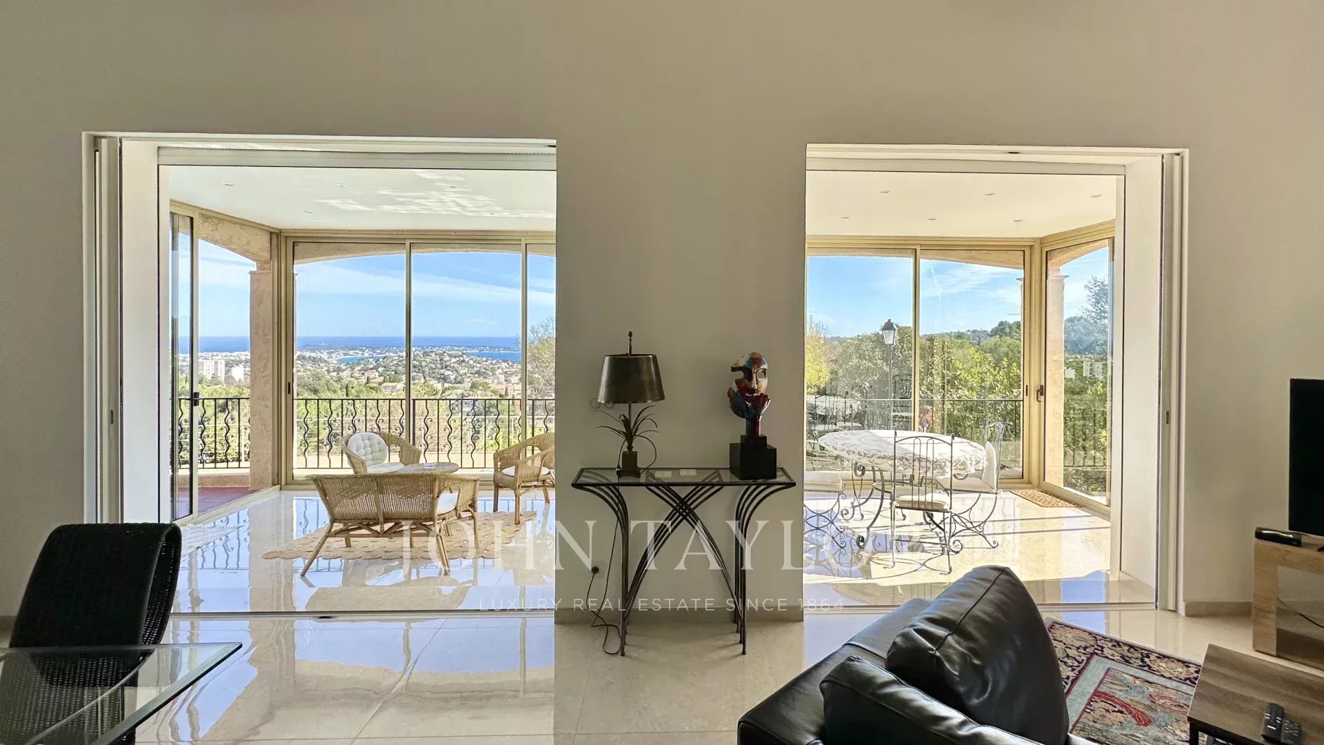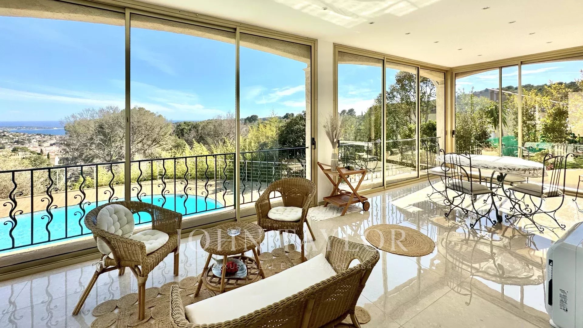 Расположенная на возвышенности Валлориса в тихом жилом районе, эта вилла была отремонтирована с использованием лучших материалов и может похвастаться непрерывным видом на море, Кап д'Антиб и холм Супер-Канны.