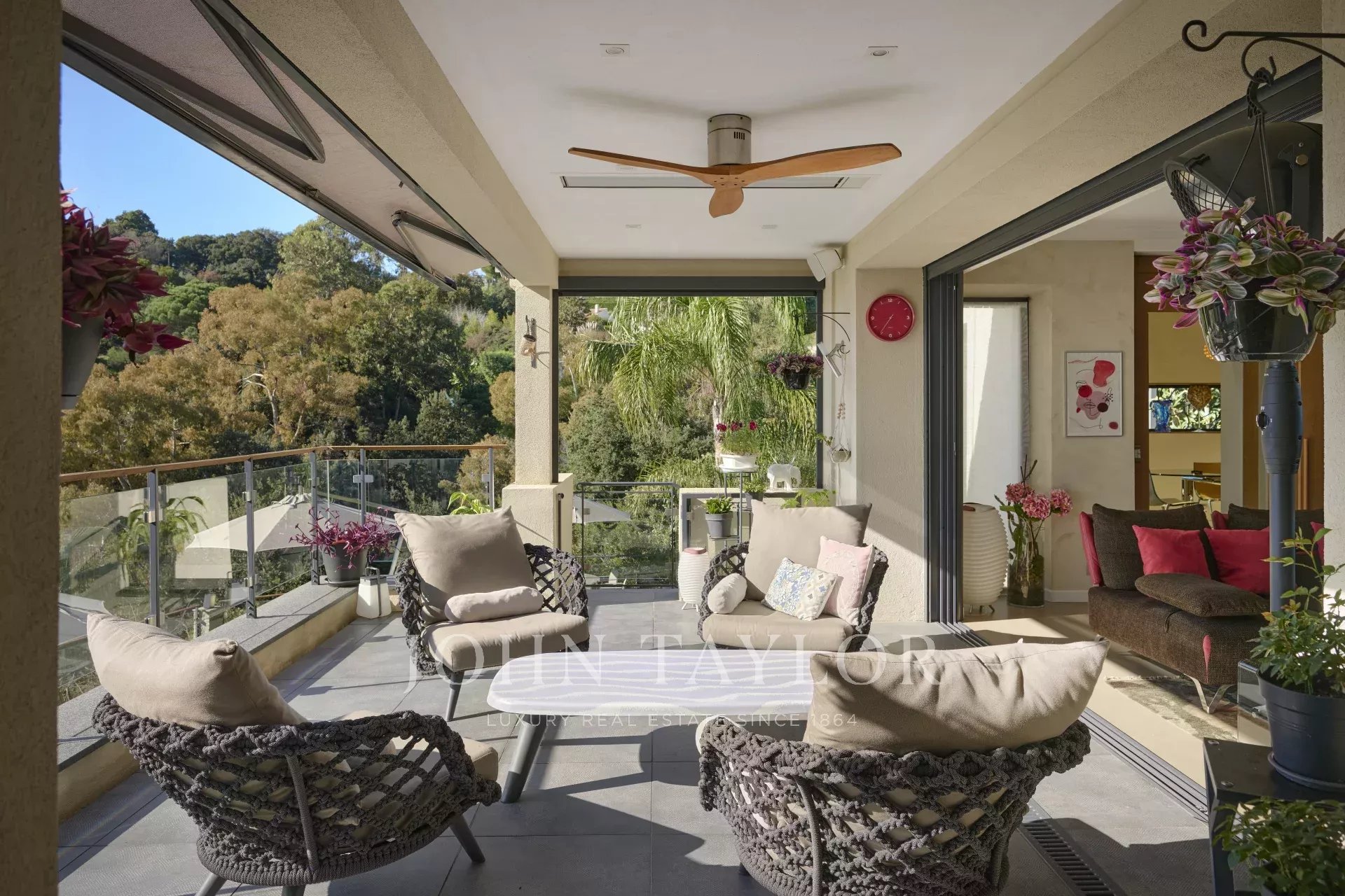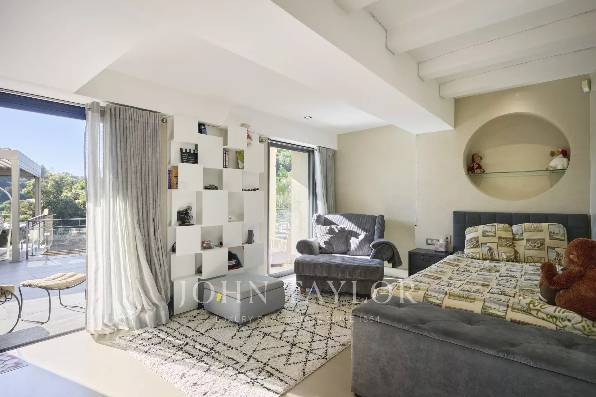 Этот прекрасно отремонтированный особняк находится в жилом районе Супер-Канны. Из окон открывается прекрасный вид на море и холмы.