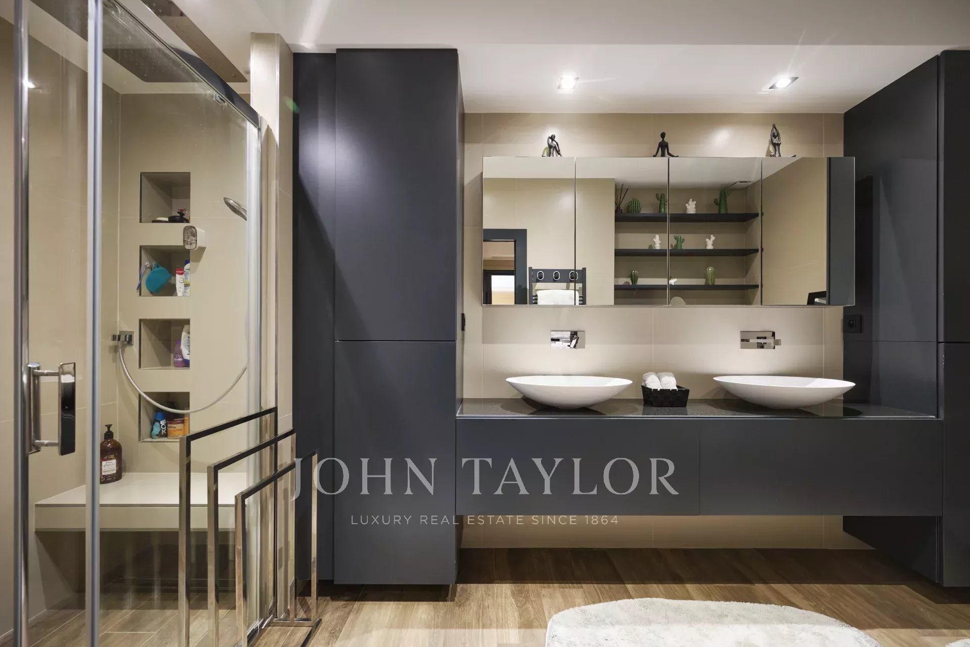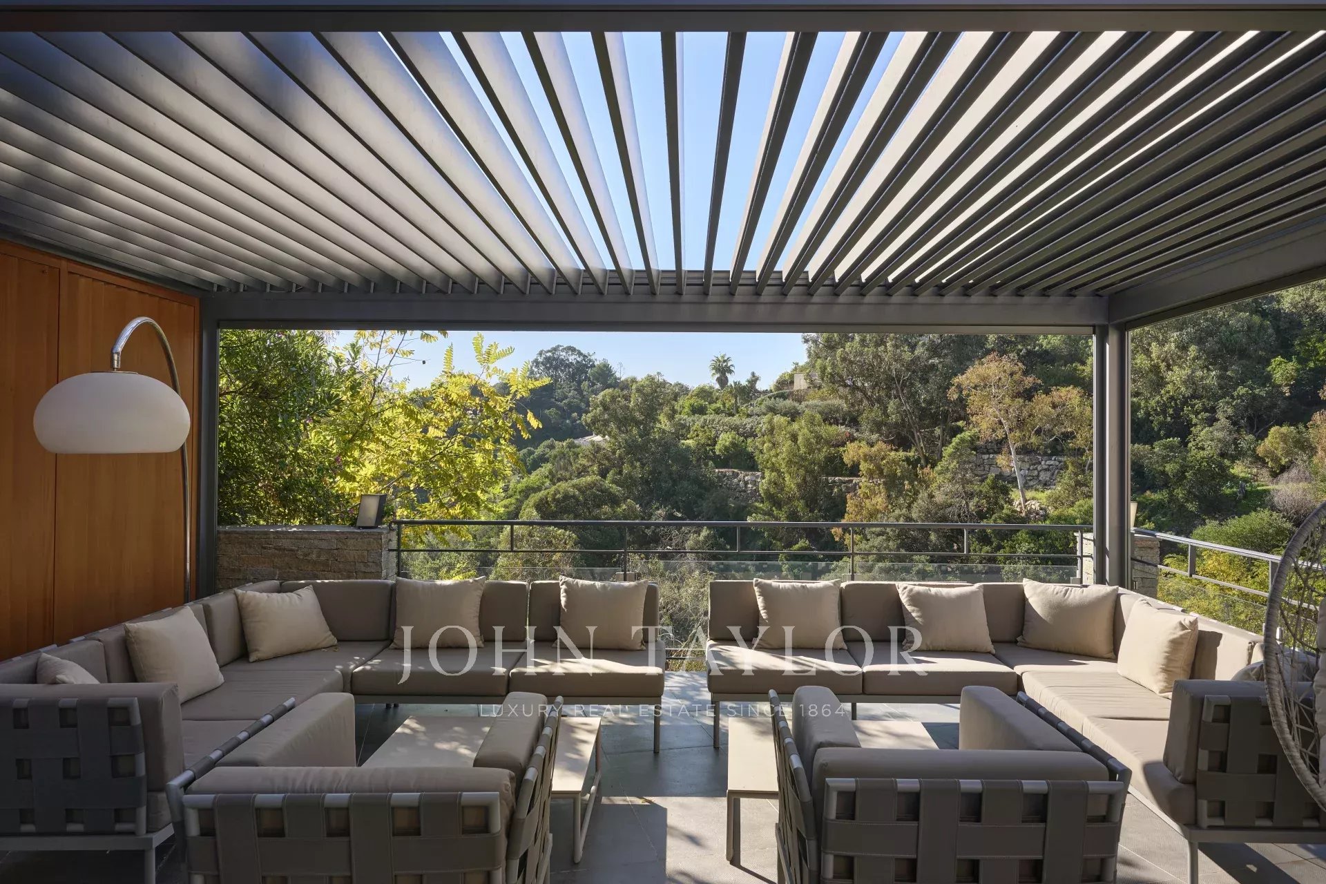 Вилла площадью 250 м² расположена на участке площадью 2 185 м² с бассейном. На первом этаже находятся прихожая, гостевой туалет, гостиная, выходящая на крытую террасу, столовая, кухня и главная спальня с ванной комнатой и гардеробной. На уровне сада находятся три большие спальни, каждая со своей душевой комнатой.