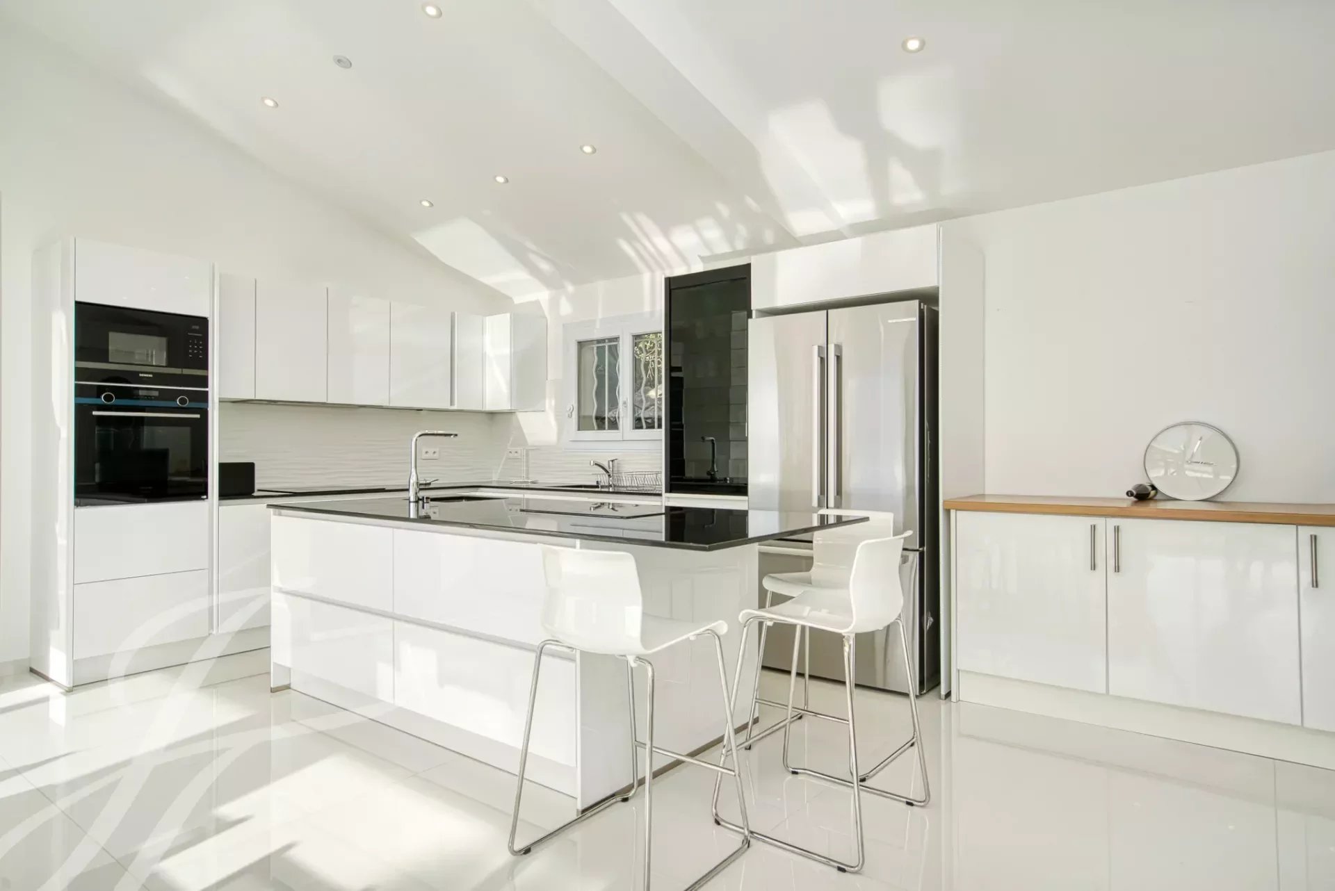 Отремонтированная в 2023 году, вилла расположена на участке площадью более 1 500 м2, засаженном средиземноморскими деревьями. На участке разбит сад, есть террасы, парковка, гараж площадью 35 м2 и красивый бассейн.