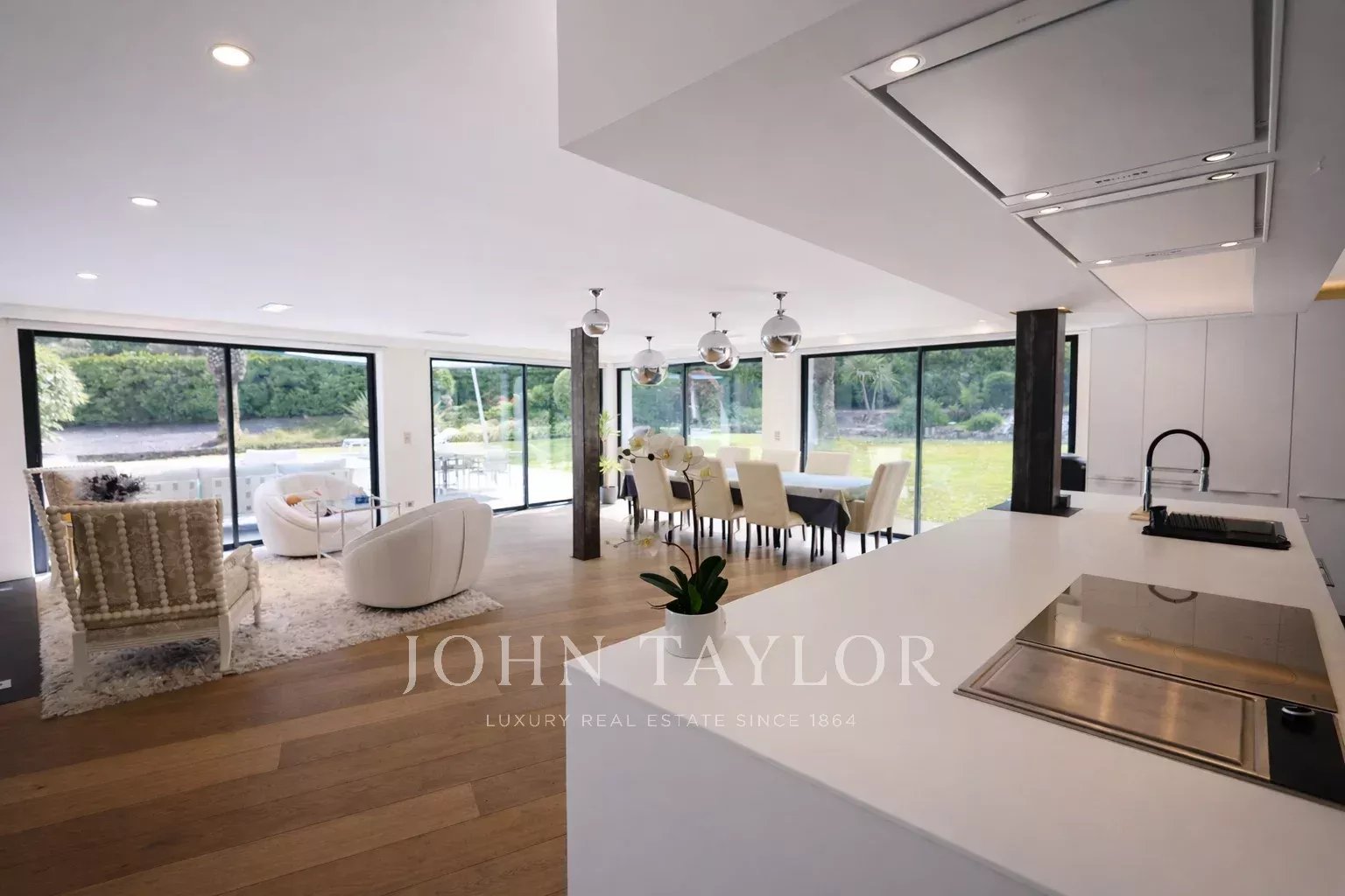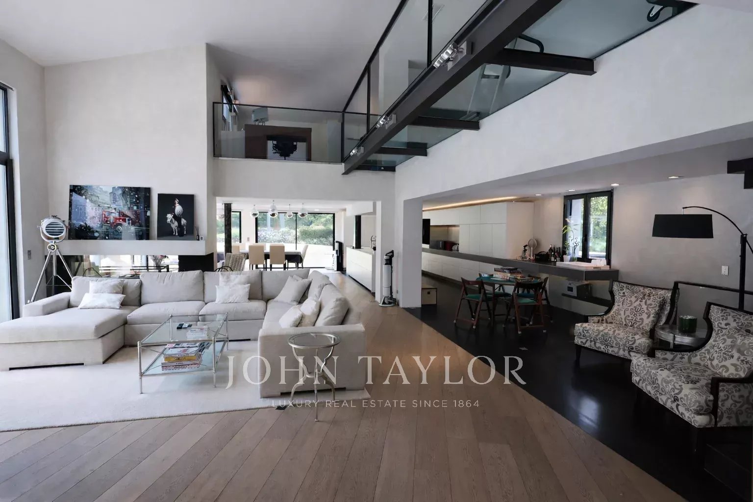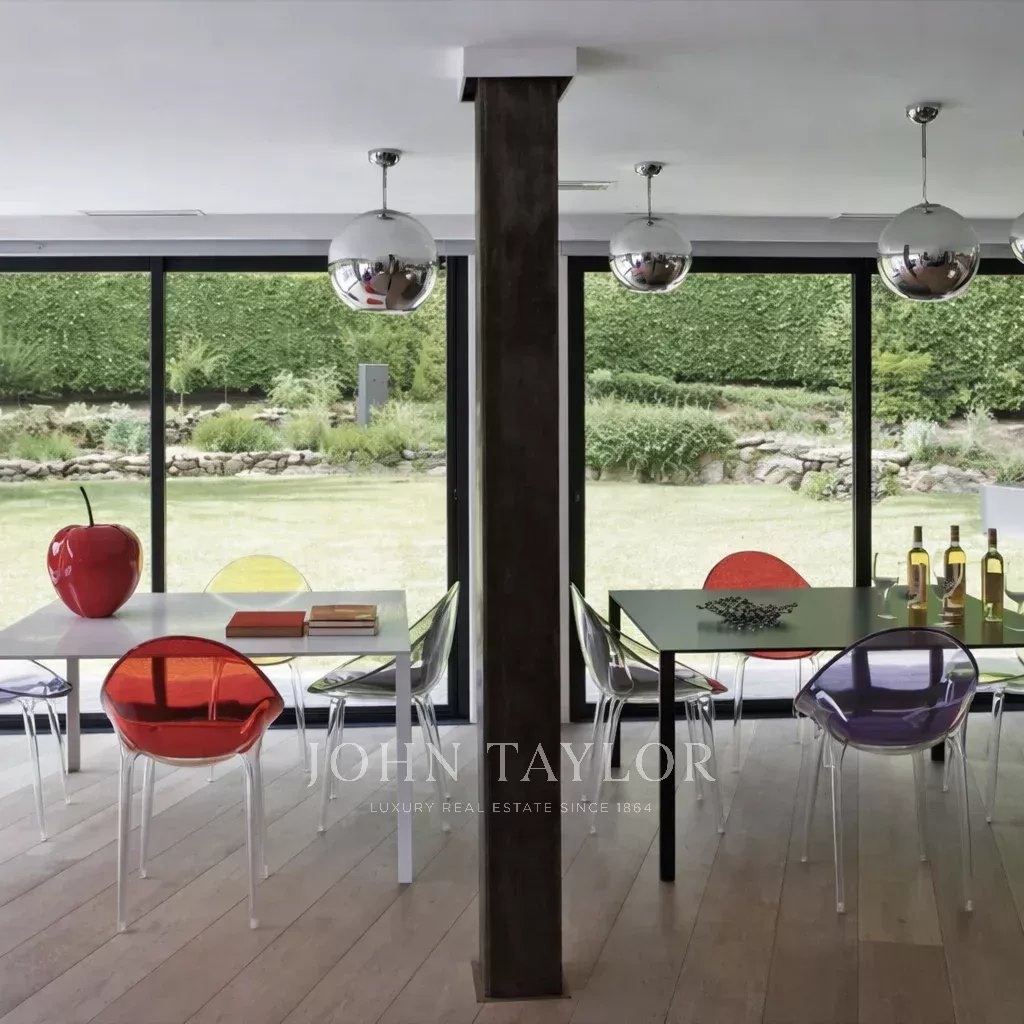 Вилла выполнена в провансальско-современном стиле и располагает просторной гостиной зоной, включающей величественную гостиную с высокими потолками и красивым камином с двойной топкой, столовую и потрясающую полностью оборудованную кухню с материалами высокого класса.