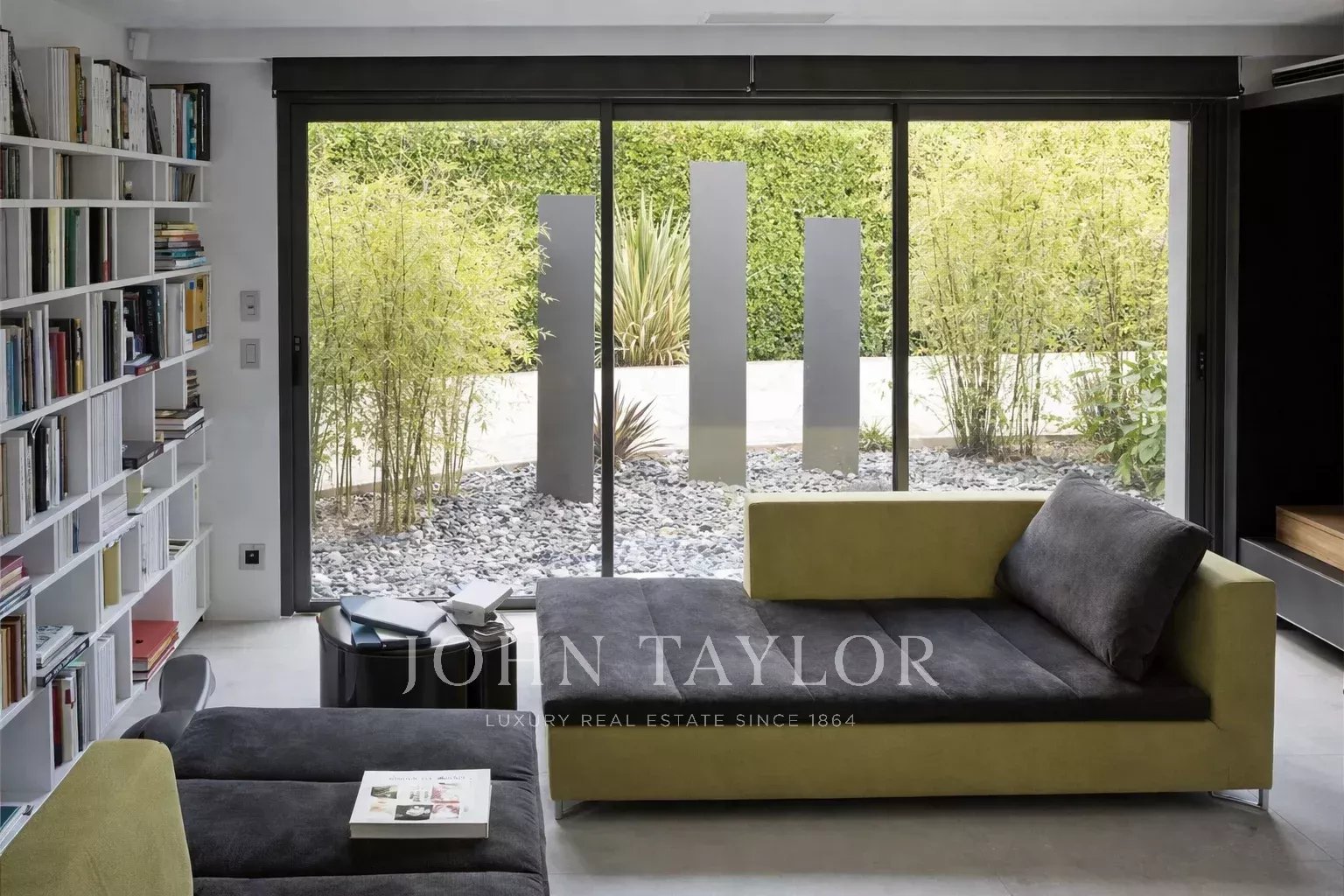 Просторная жилая зона подчеркнута большими окнами, которые стирают границы между интерьером и экстерьером, позволяя солнечному свету проникать в течение всего дня.