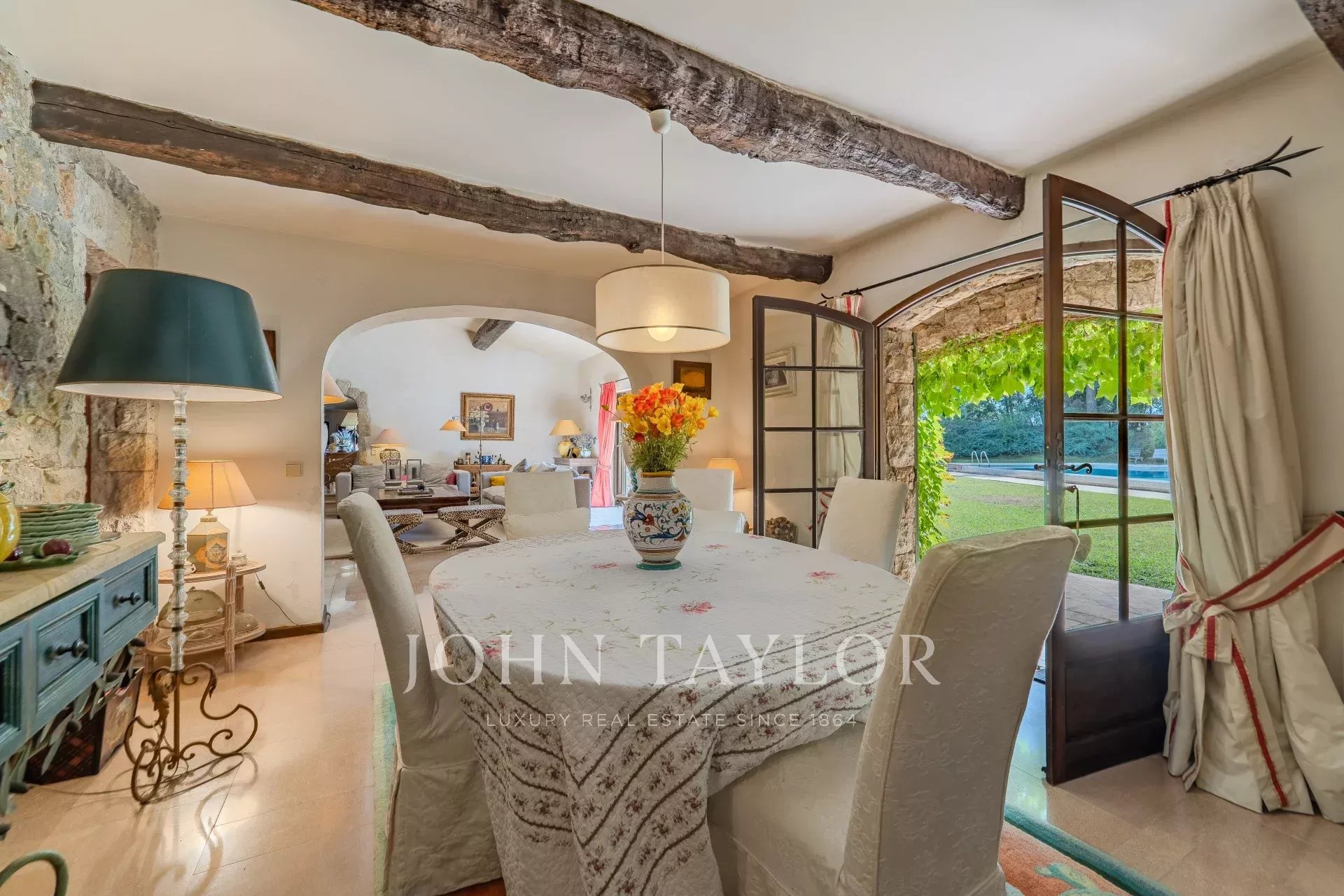 Эта роскошная каменная резиденция, расположенная на территории частного и охраняемого комплекса Les Parcs de Mougins, воплощает в себе идеальное сочетание аутентичности и изысканности.