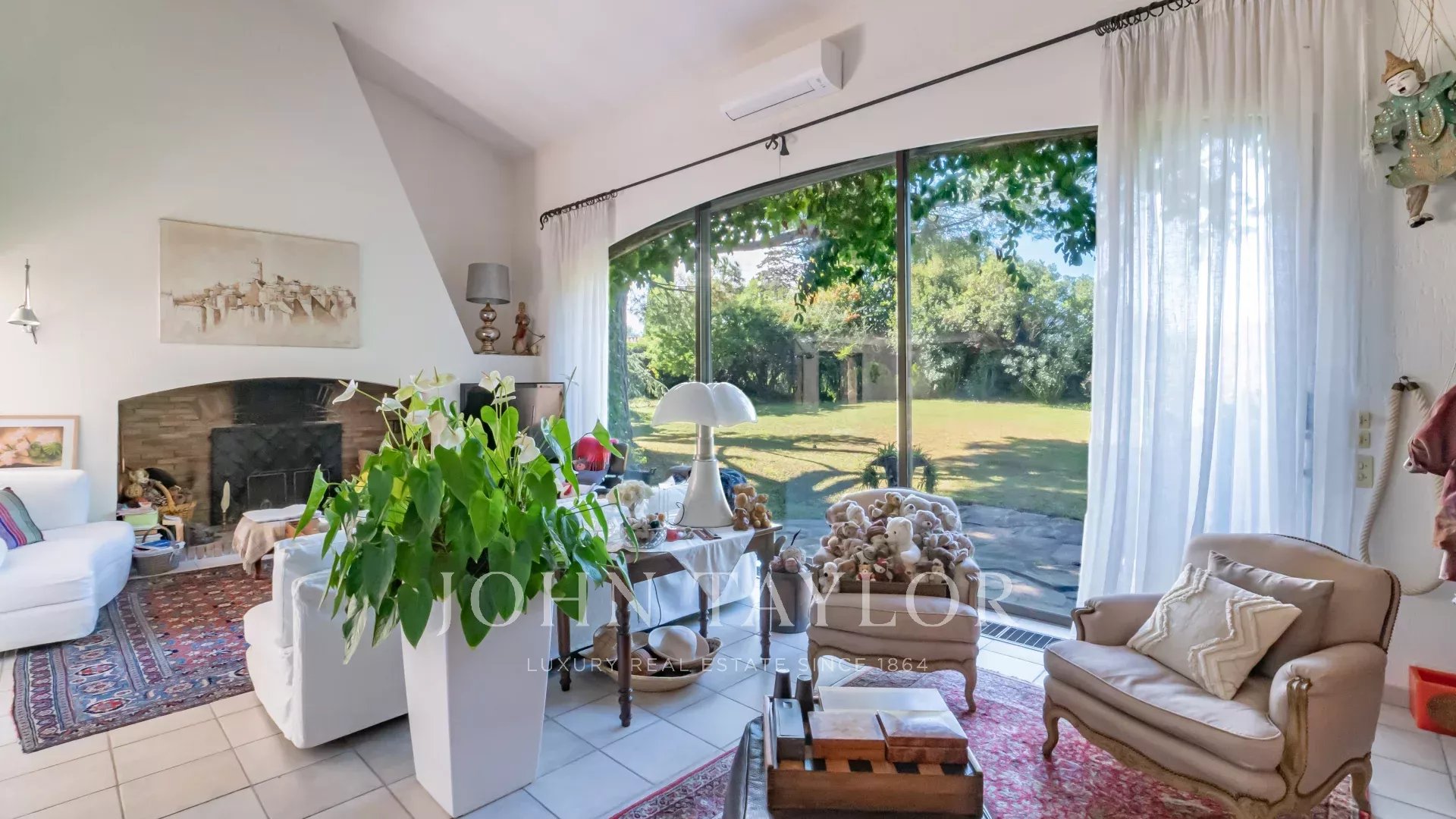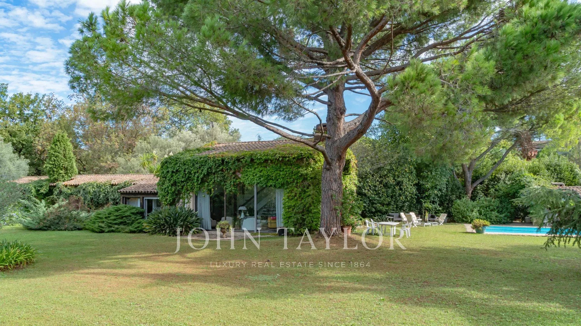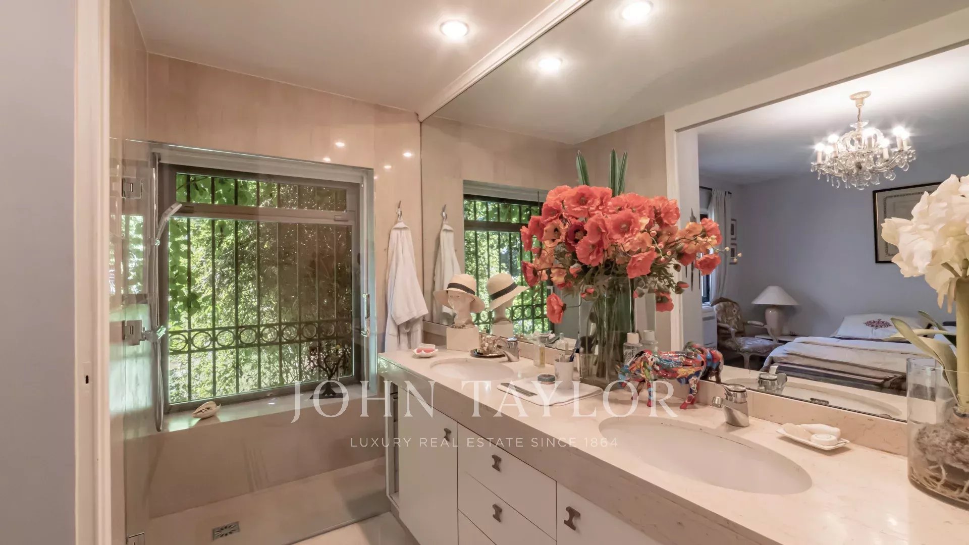На участке площадью 3 500 кв.м. с ландшафтным дизайном и средиземноморскими растениями расположен бассейн 6 x 12 м, домик у бассейна и флигель, который можно переоборудовать по своему усмотрению.