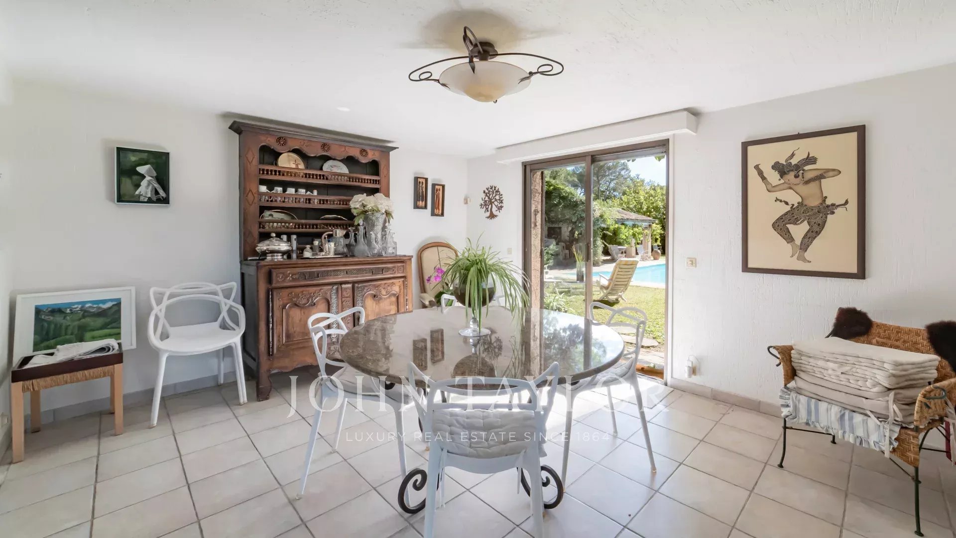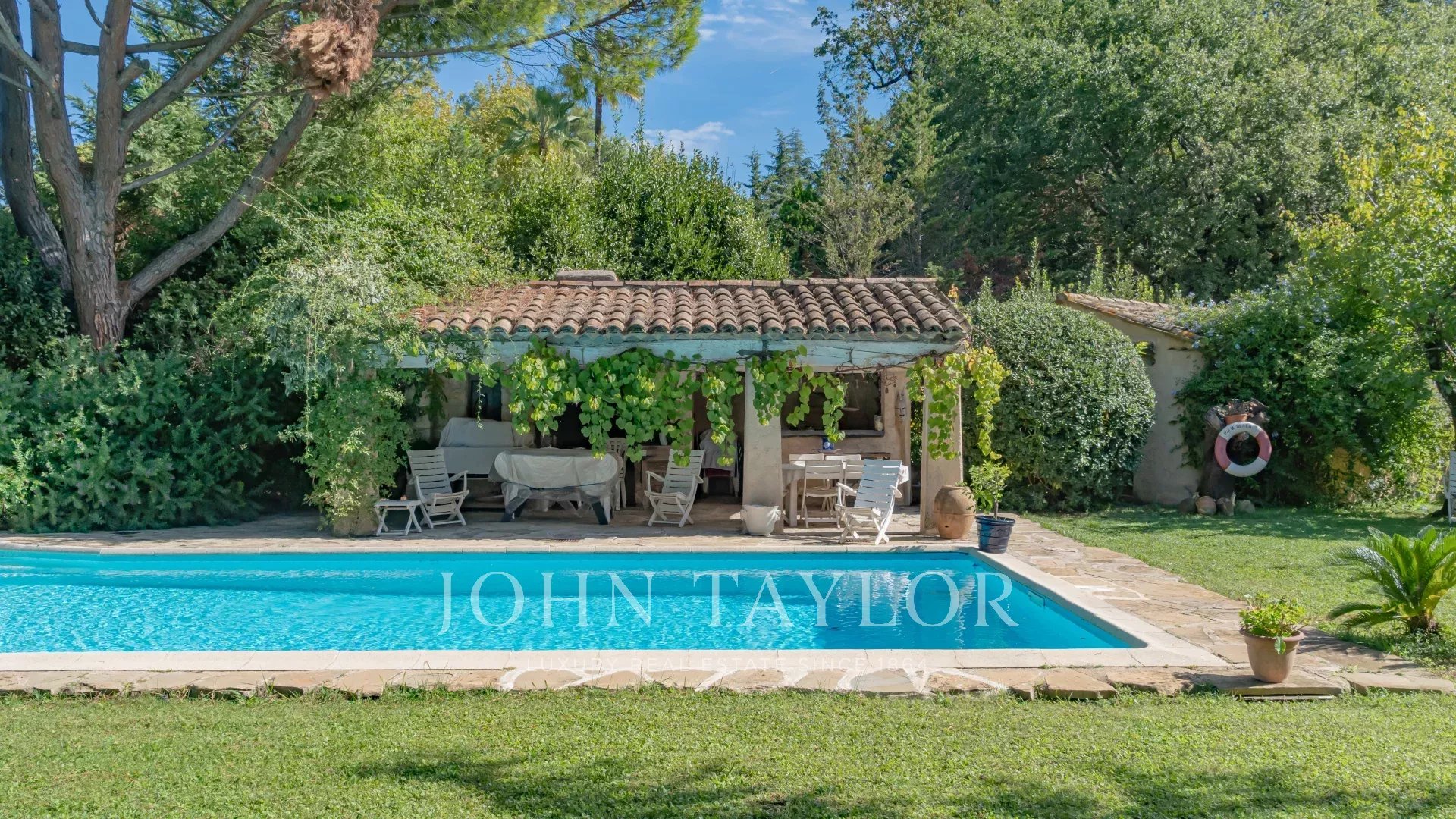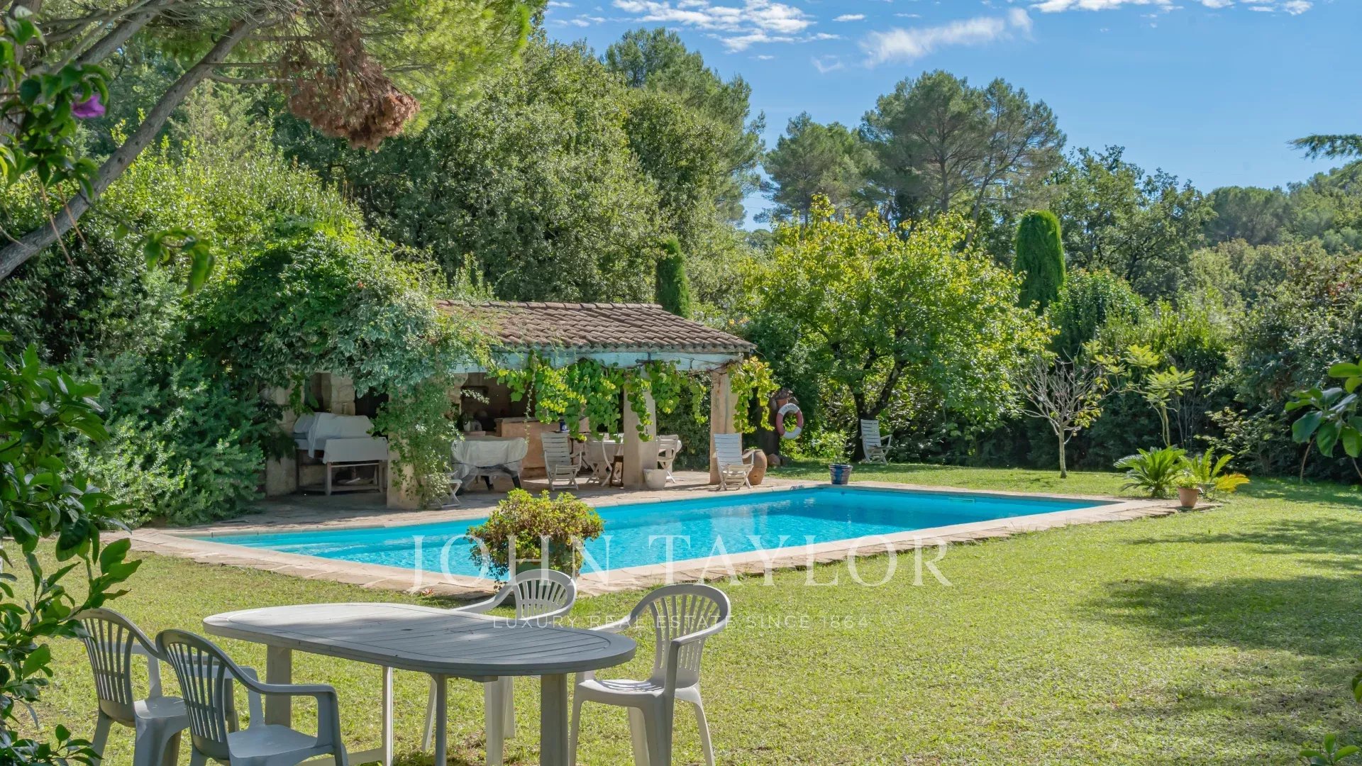 На участке площадью 3 500 кв.м. с ландшафтным дизайном и средиземноморскими растениями расположен бассейн 6 x 12 м, домик у бассейна и флигель, который можно переоборудовать по своему усмотрению.