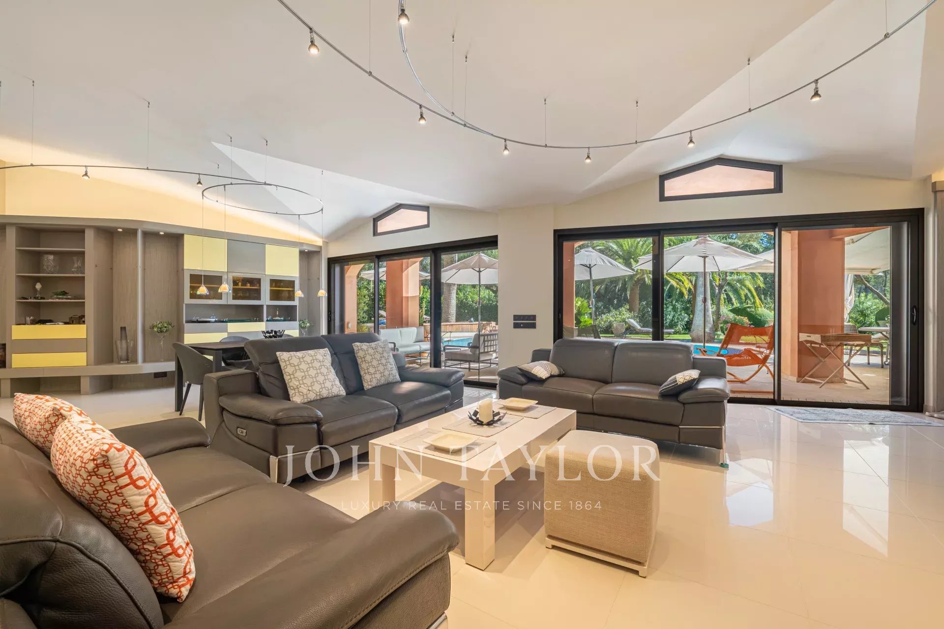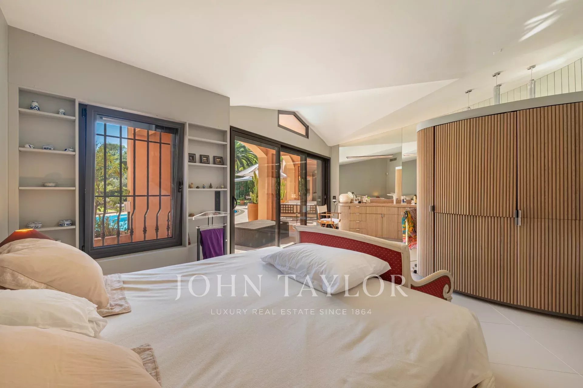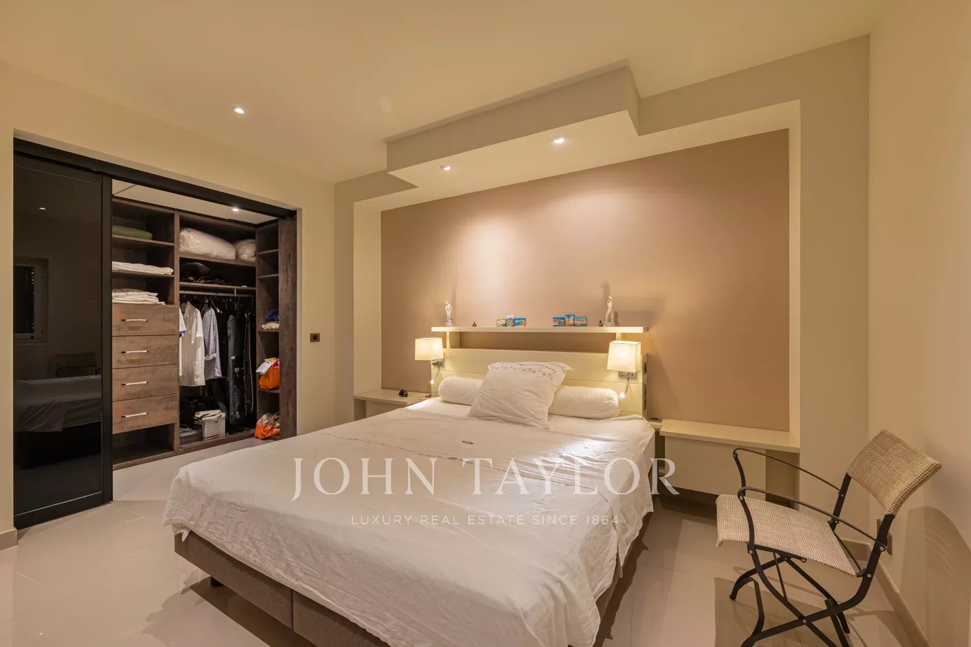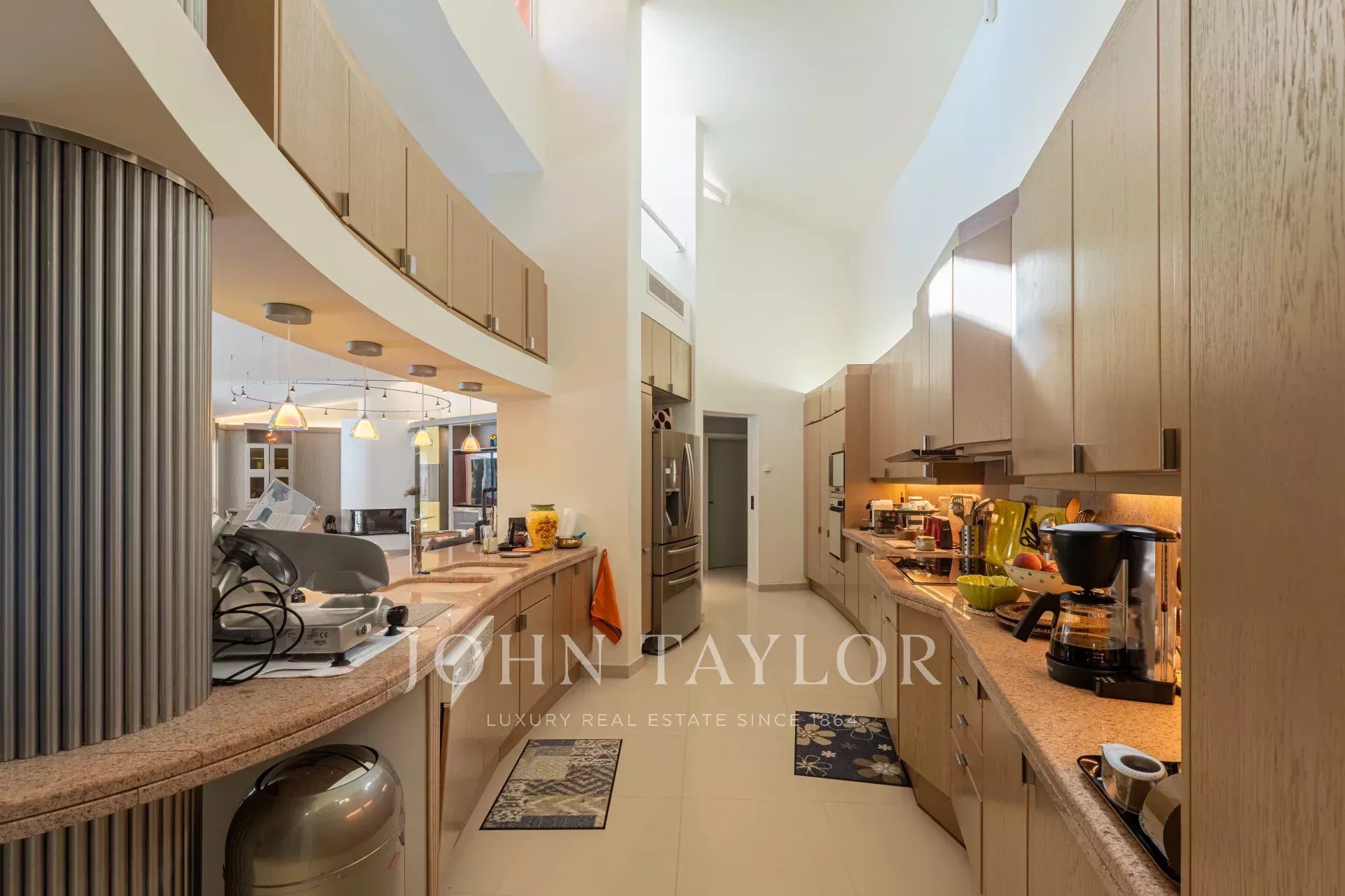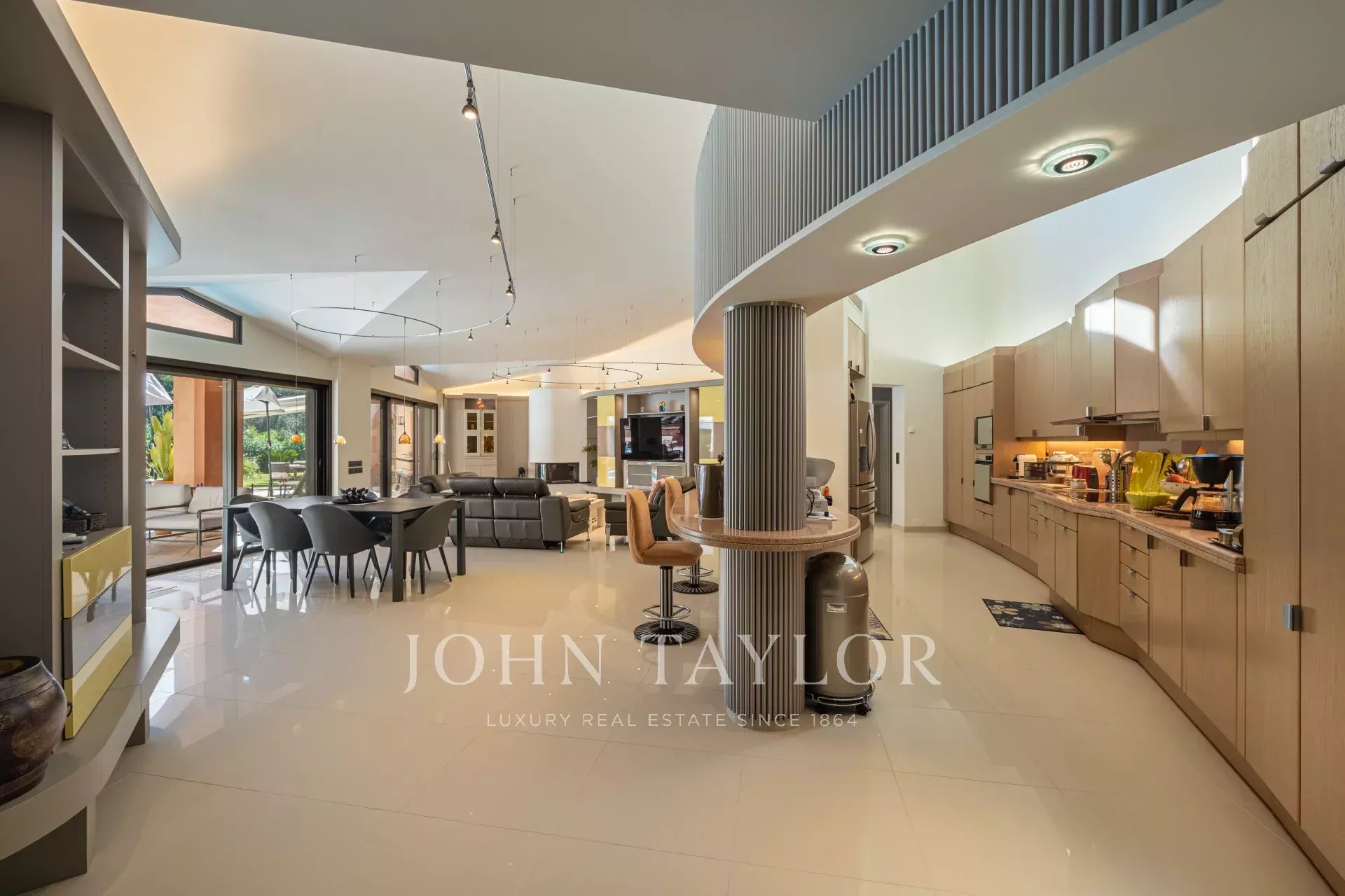 Построенная на одном уровне, вилла может похвастаться просторными объемами, залитыми светом, выходящими в роскошный ландшафтный сад, тщательно продуманный для сохранения приватности и спокойствия. Помещения для приема гостей расположены вокруг огромной гостиной, расширенной широкими террасами, ведущими к бассейну и открытым площадкам.