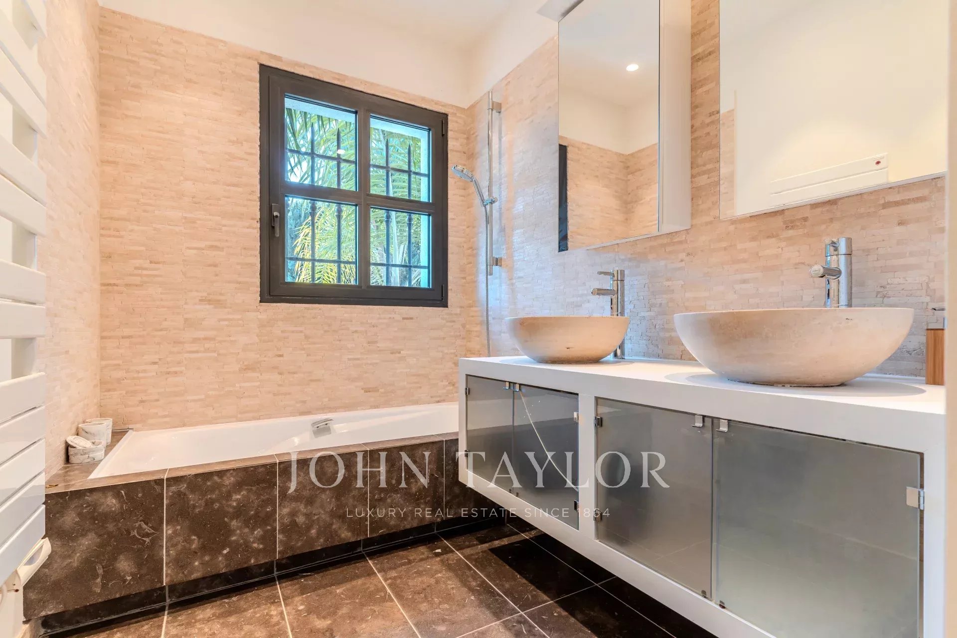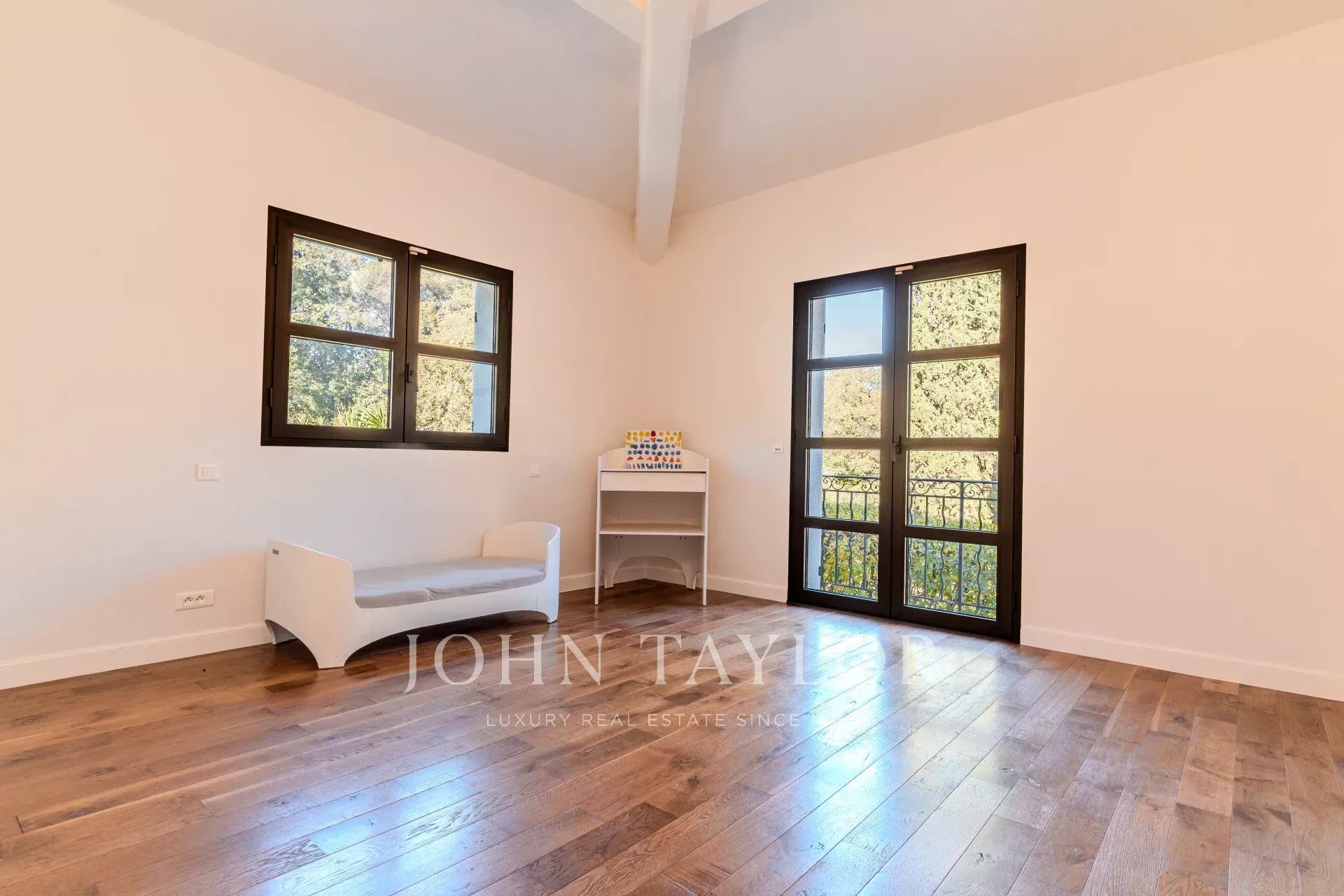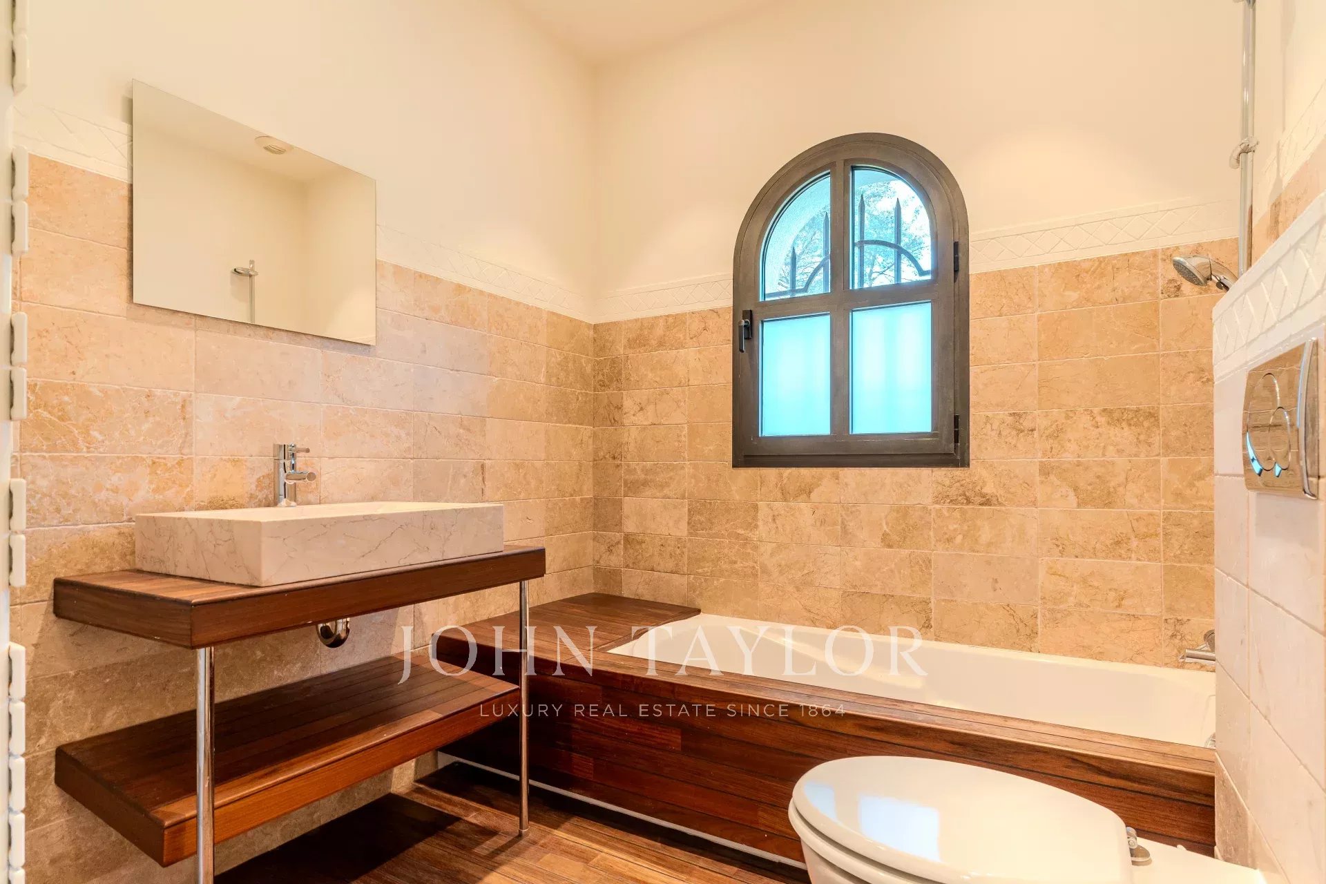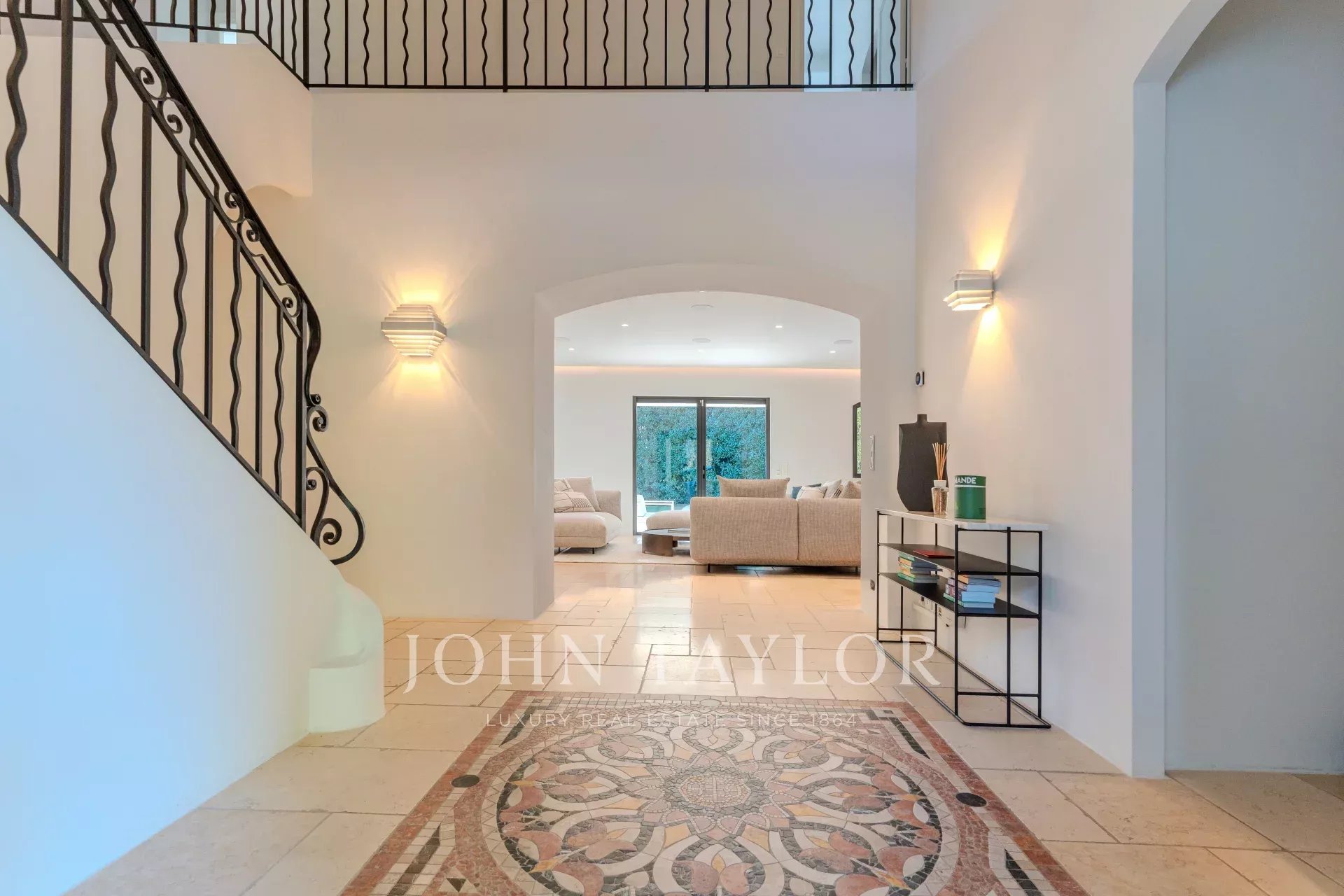 В жилом районе, элегантная, недавно построенная семейная вилла в самом центре частного поместья площадью 200 гектаров, включающего 10 владений и конноспортивный центр. В нескольких минутах ходьбы от международной школы.