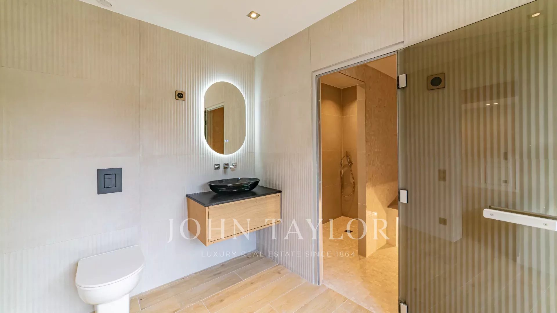 В доме пять спален с ванными комнатами, включая роскошную главную спальню с гардеробной. Одну из спален можно переоборудовать в игровую комнату или велнес-зону с хаммамом и душем.