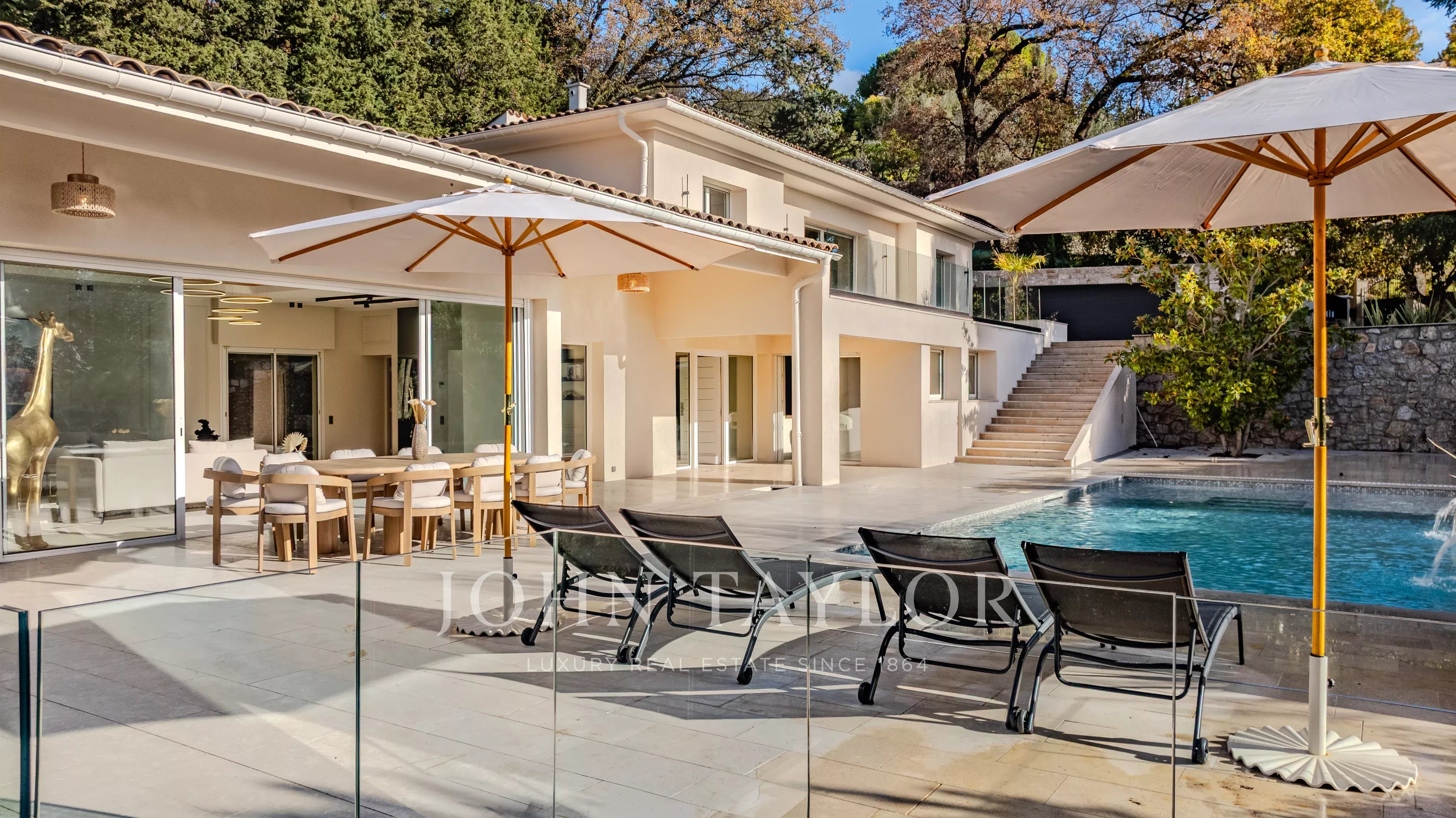 Расположенная в самом сердце популярного района Мужена, рядом с магазинами и в тихом месте, эта элегантная вилла площадью 300 м² была полностью отремонтирована в 2024 году и находится на участке площадью около 2 000 м² с бассейном.