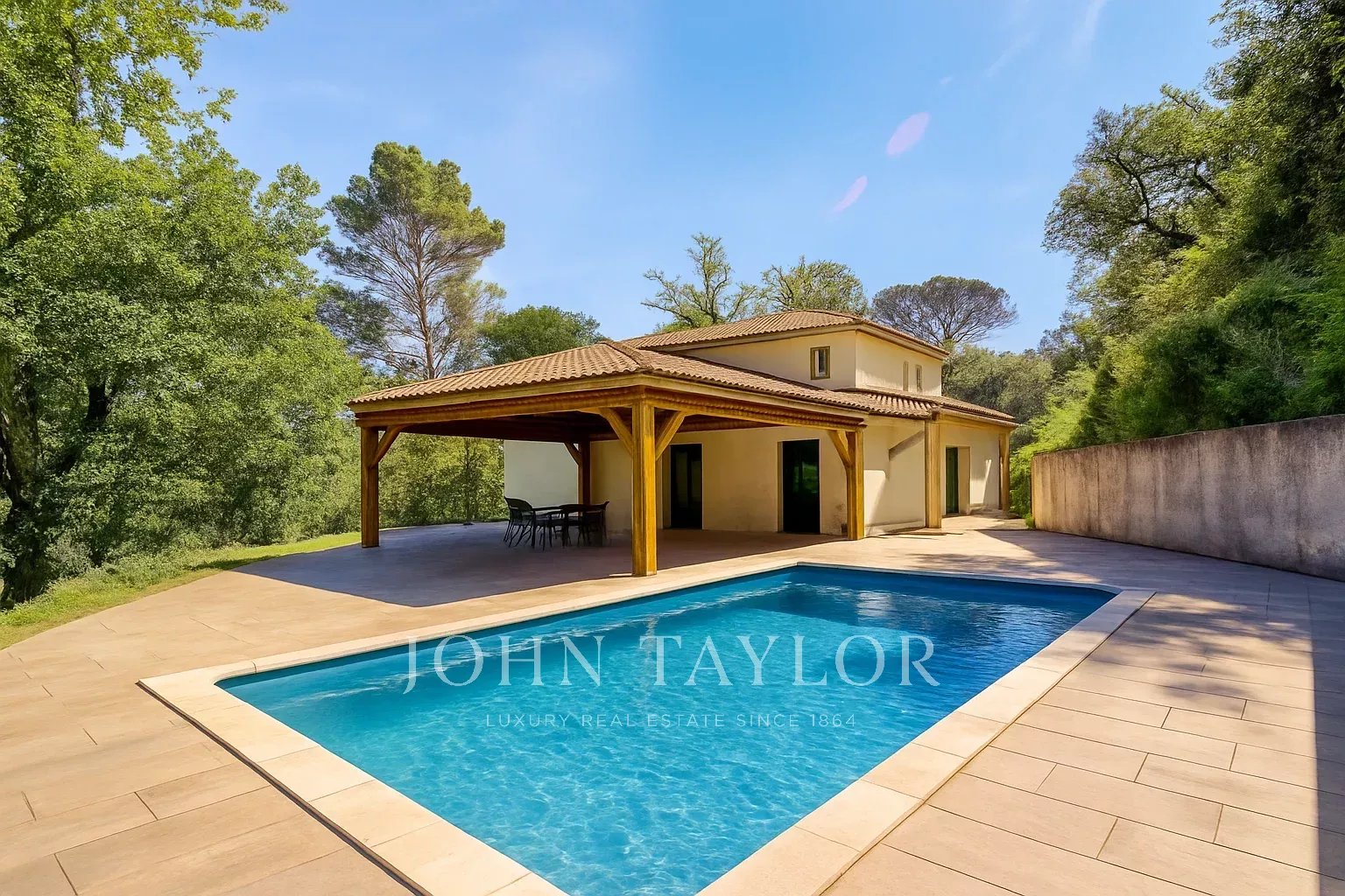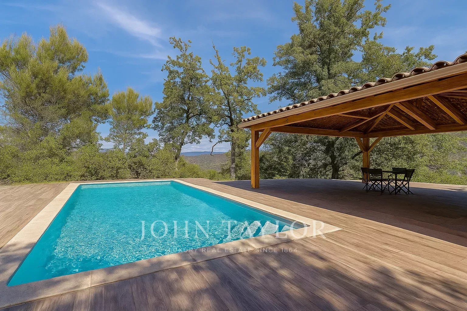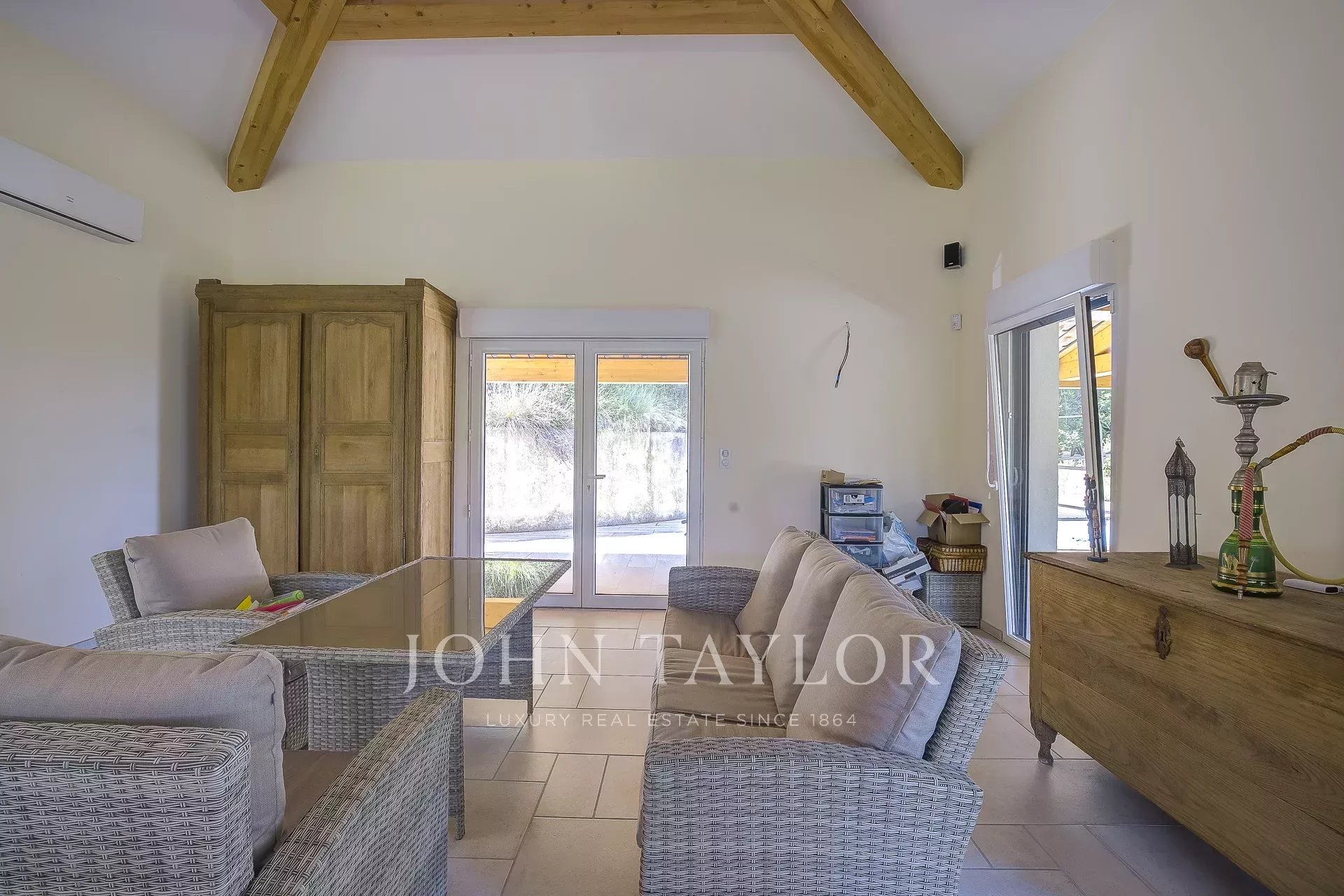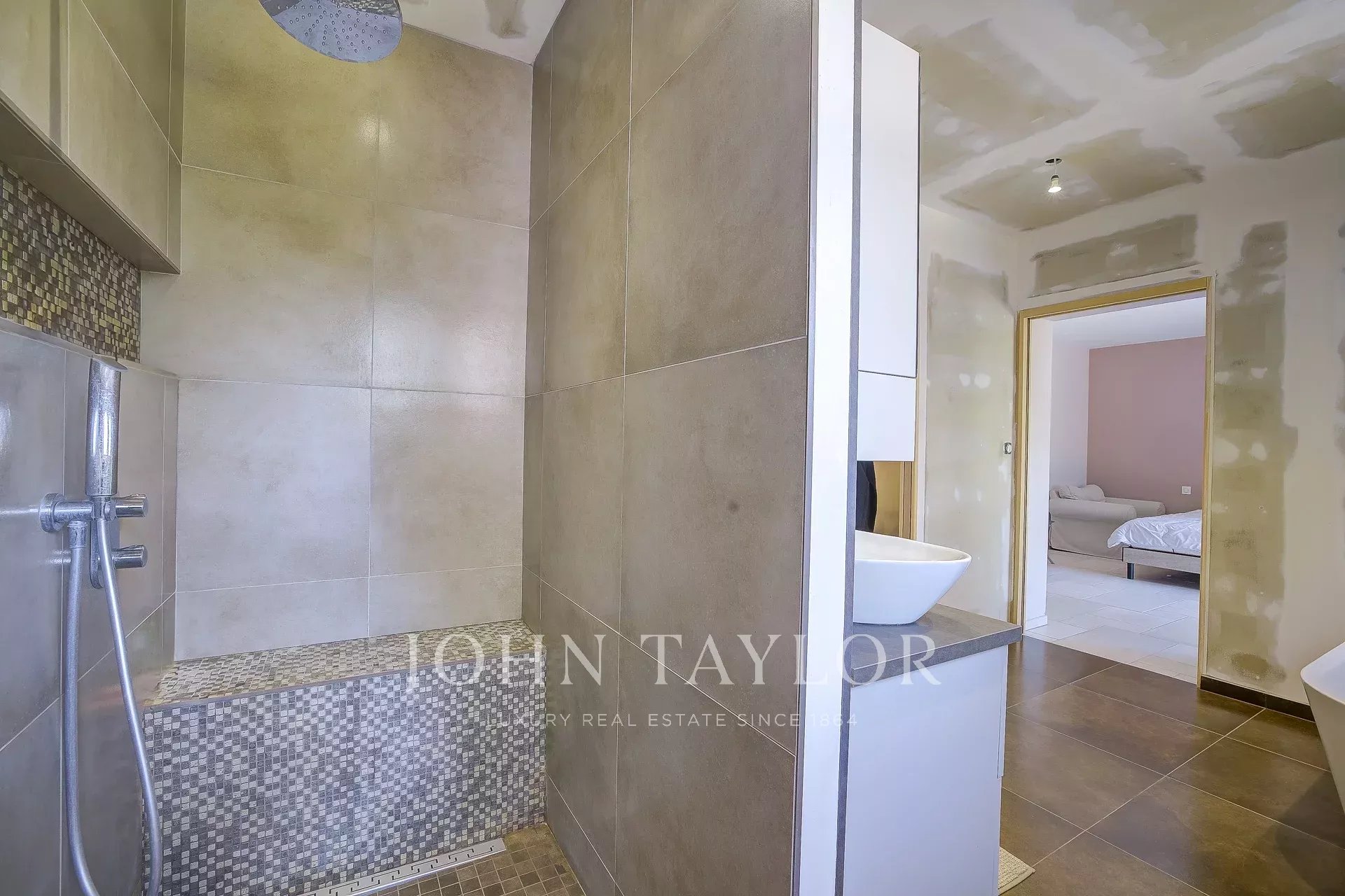 С момента входа в виллу вы будете очарованы ее огромными объемами. Зона для приема гостей площадью 70 м² построена вокруг соборной гостиной и элегантной кухни открытой планировки, приглашая вас собраться вместе. Это пространство гармонично выходит во внешний мир.