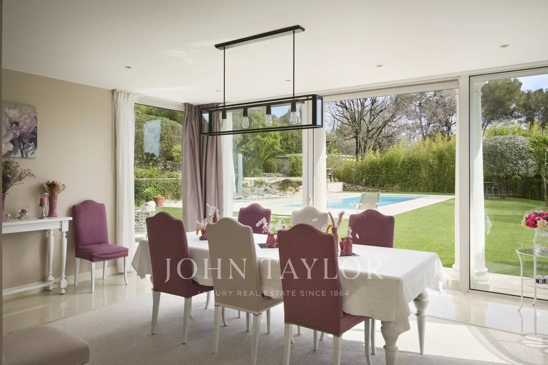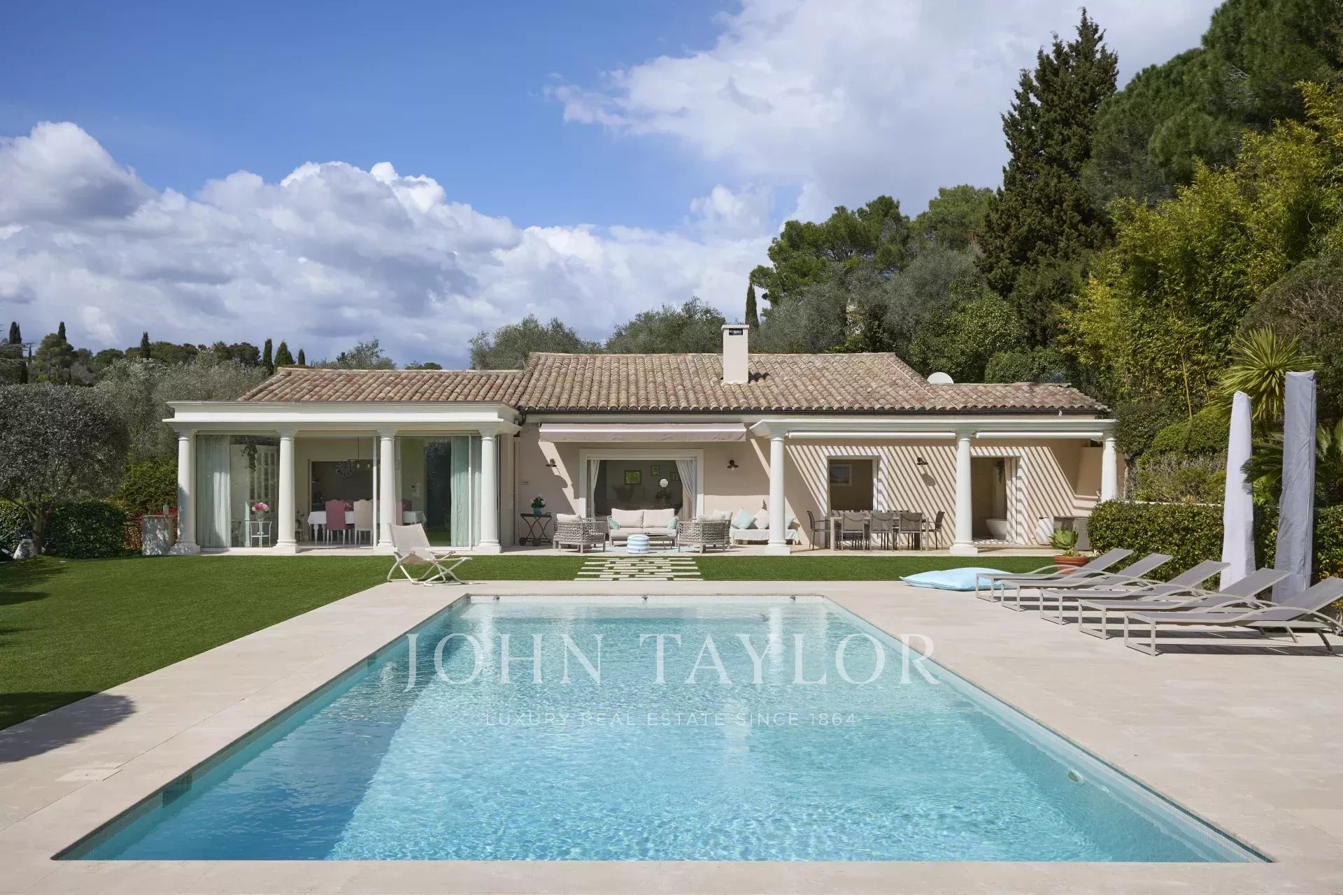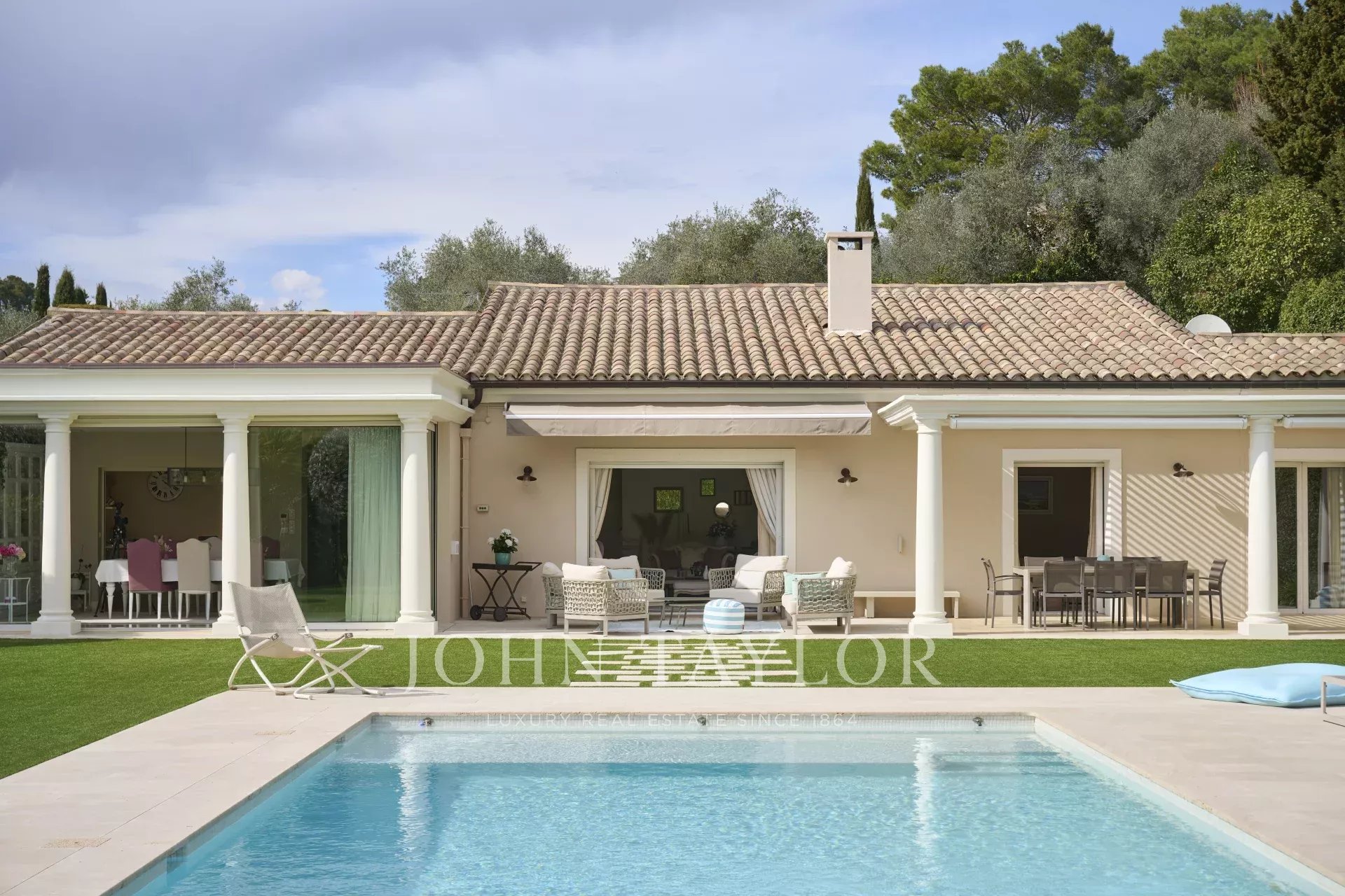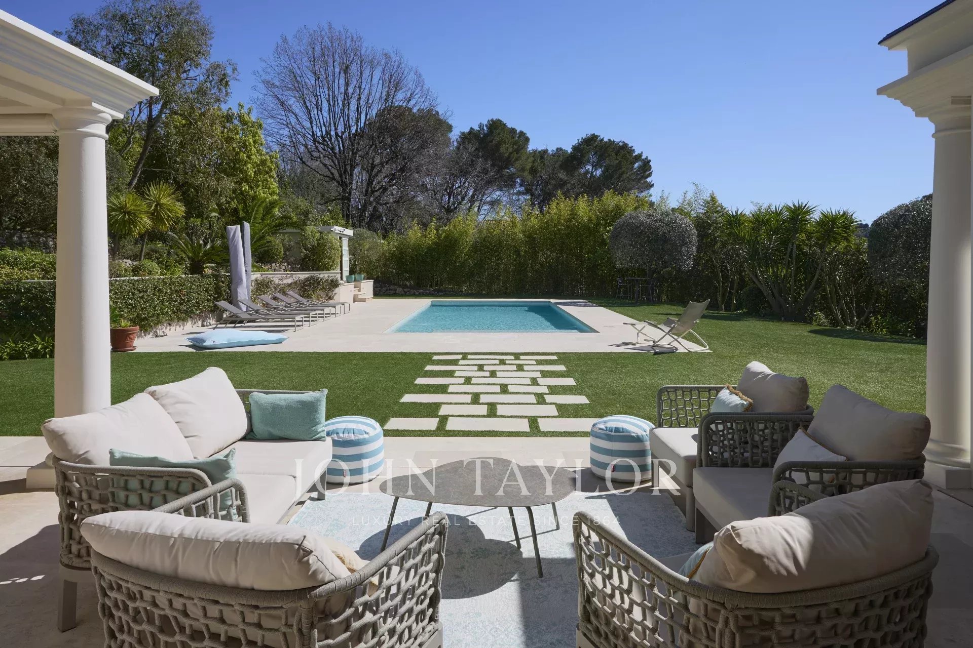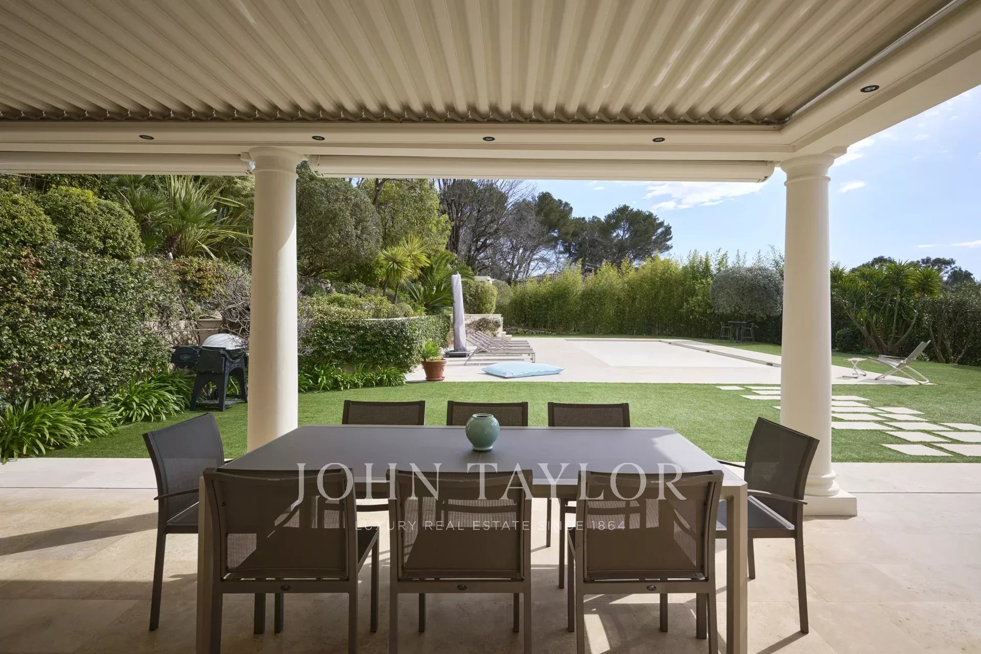 Расположенная в престижном, охраняемом поместье, всего в нескольких минутах от подлинного очарования старой деревни и всех удобств, эта роскошная вилла выделяется своей изысканностью и гармоничной планировкой.