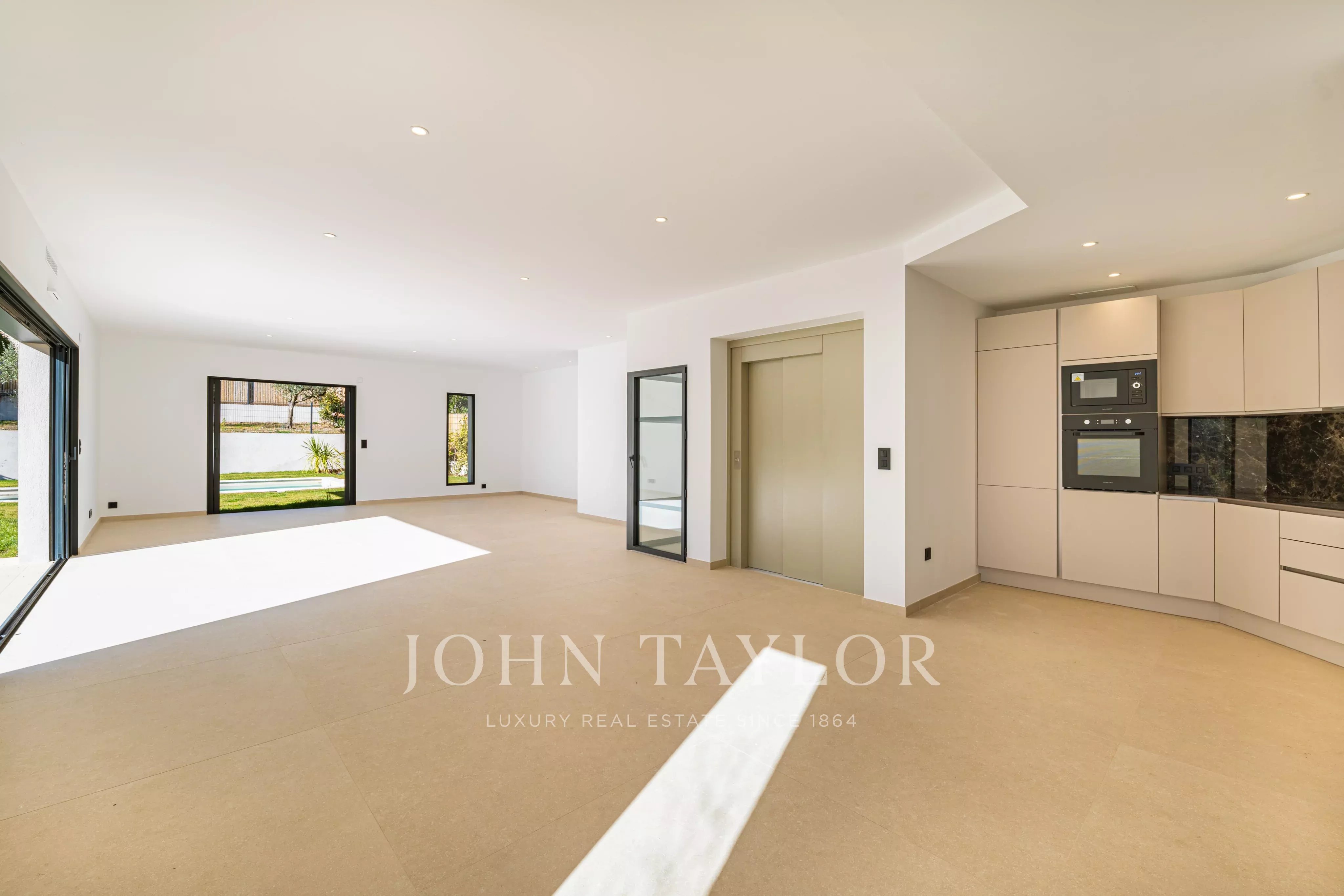 Новая калифорнийская вилла около 170 м², оборудованная лифтом, построена на ровном участке площадью 1080 м², в тишине и в то же время недалеко от основных магистралей.