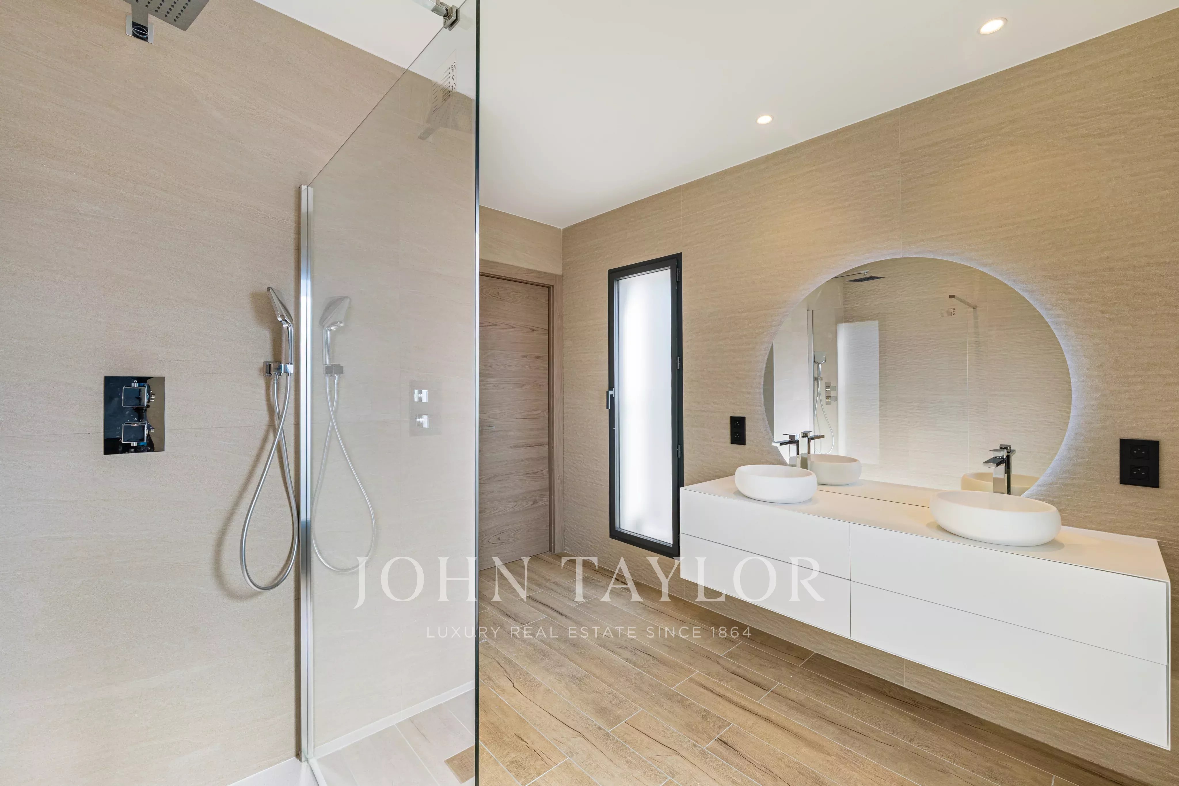 На верхнем этаже вилла располагает тремя спальнями, включая главный сьют с ванной, гардеробной и приватной террасой, а также ванной комнатой с душем и отдельными туалетами.