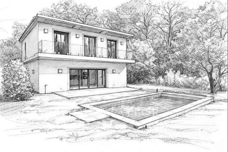 Новая калифорнийская вилла площадью 160 м² с лифтом, построенная на ровном участке площадью 1055 м² в тихом месте недалеко от главных дорог.