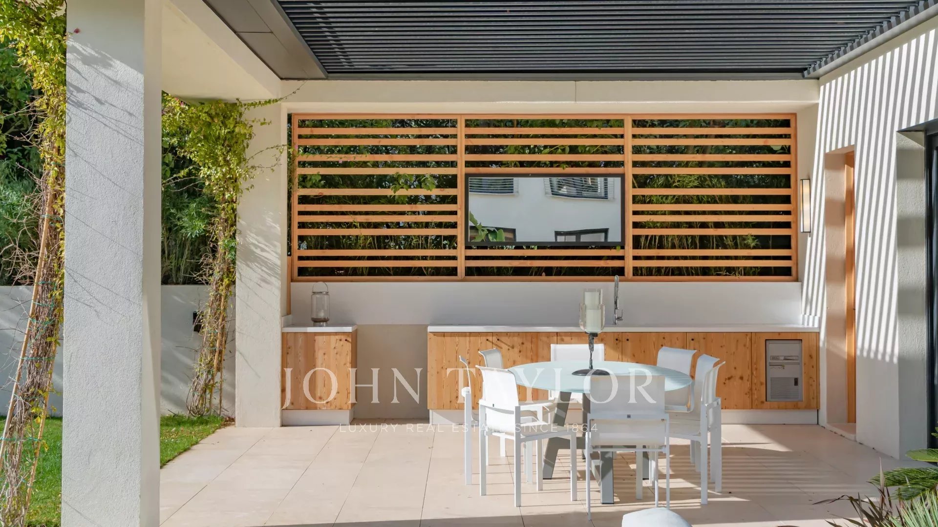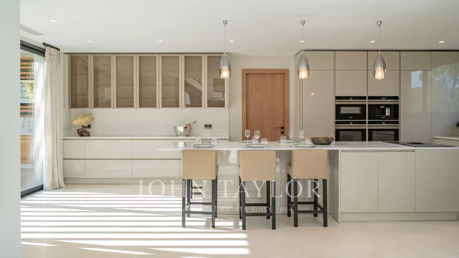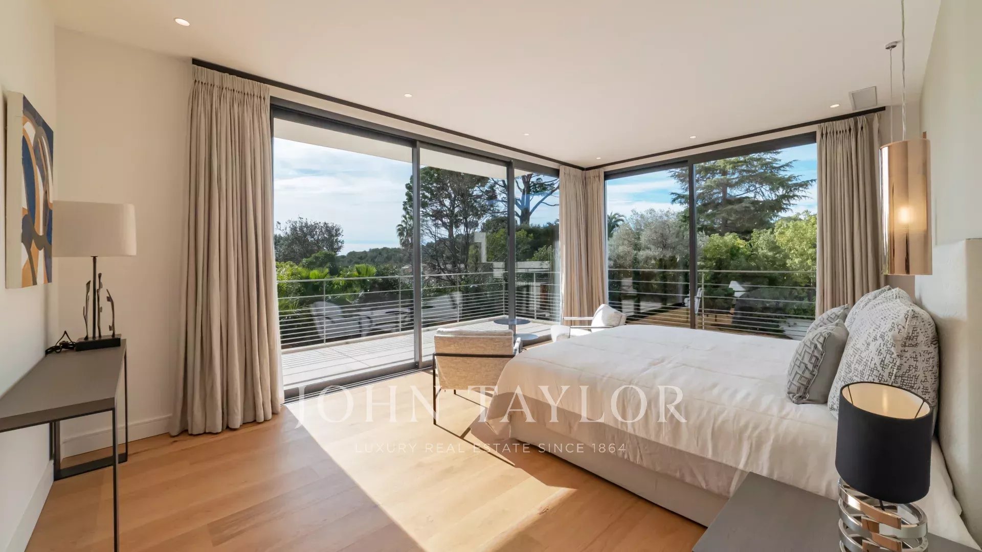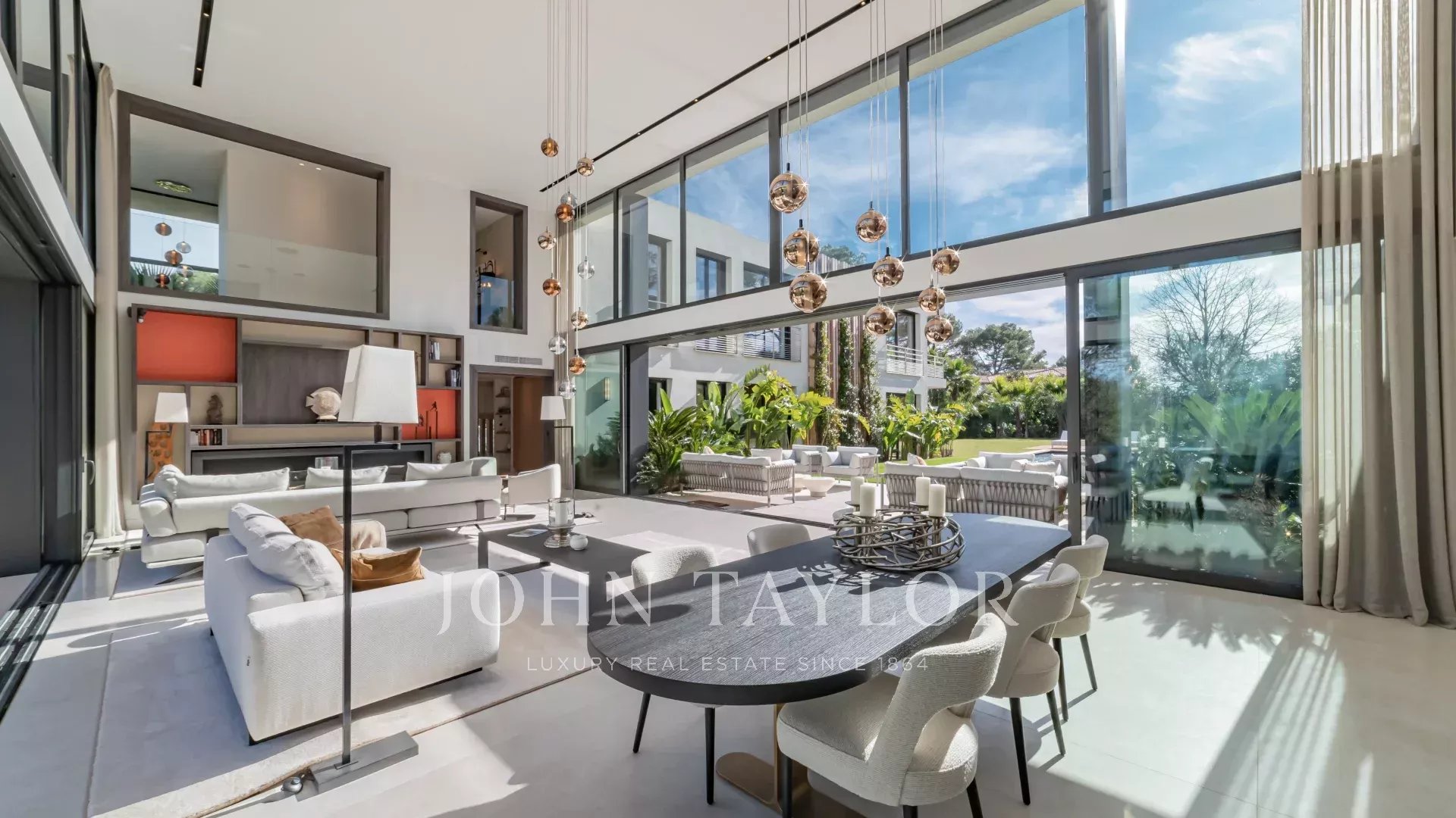 Пять спален с ванными комнатами обеспечивают уединение и комфорт, а для отдыха предусмотрены бассейн с подогревом, сауна, фитнес-зал, винный погреб, игровая комната и великолепный кинозал.