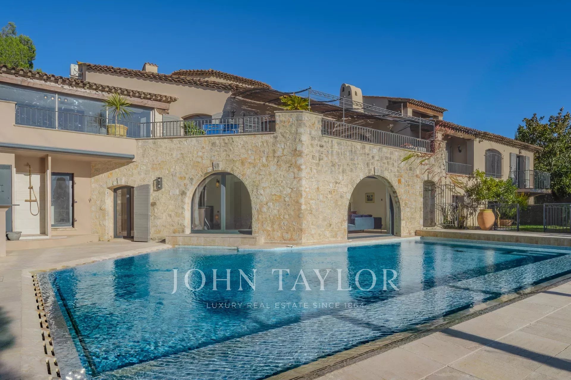 Снаружи просторный гараж, бассейн с подогревом и летней кухней, биоклиматическая терраса и площадка для игры в петанк создают исключительные условия для наслаждения панорамными видами и средиземноморским климатом.