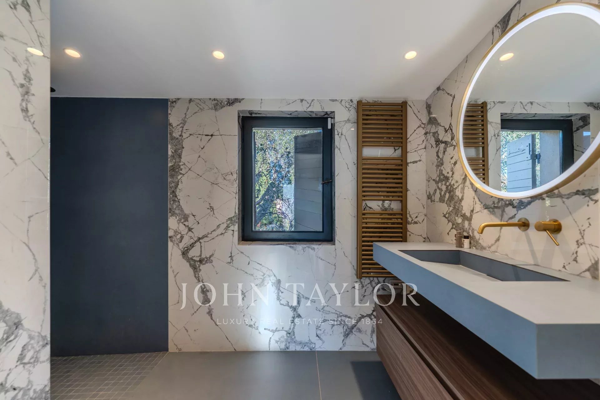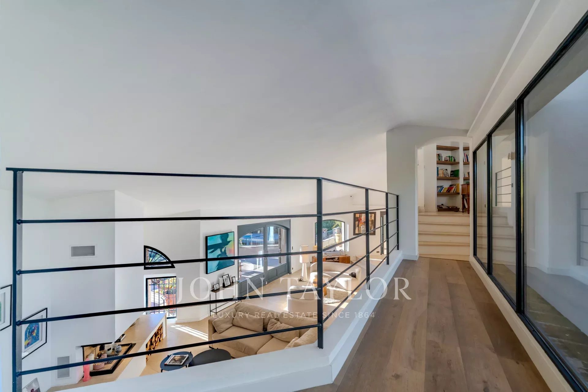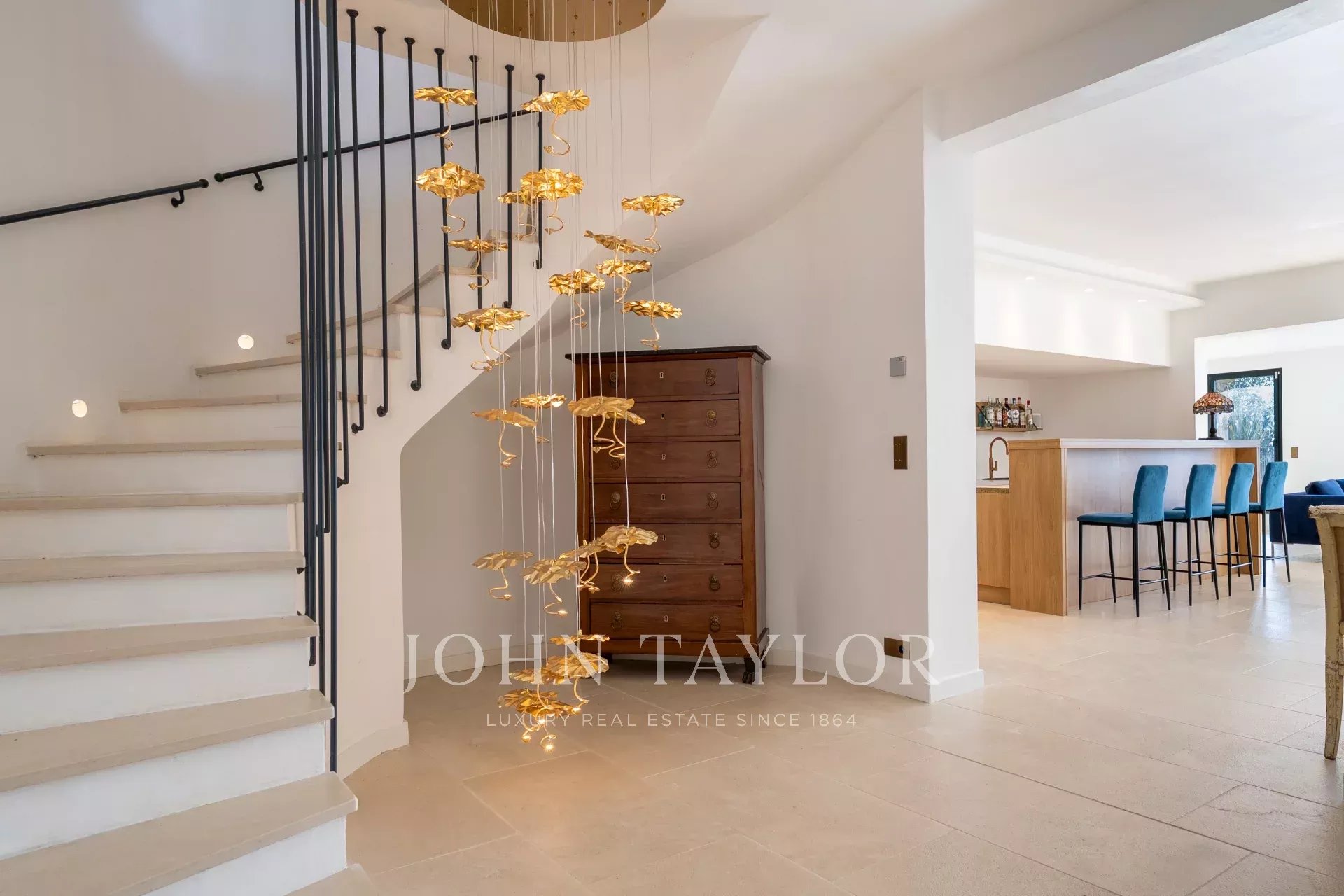 Исключительная, полностью отремонтированная вилла в одном из самых востребованных районов Мужена, недалеко от Этанга де Мужен, с непрерывным видом на море и массив Эстерель. Построенная из португальского камня, эта роскошная вилла состоит из первого этажа, уровня сада и второго этажа.