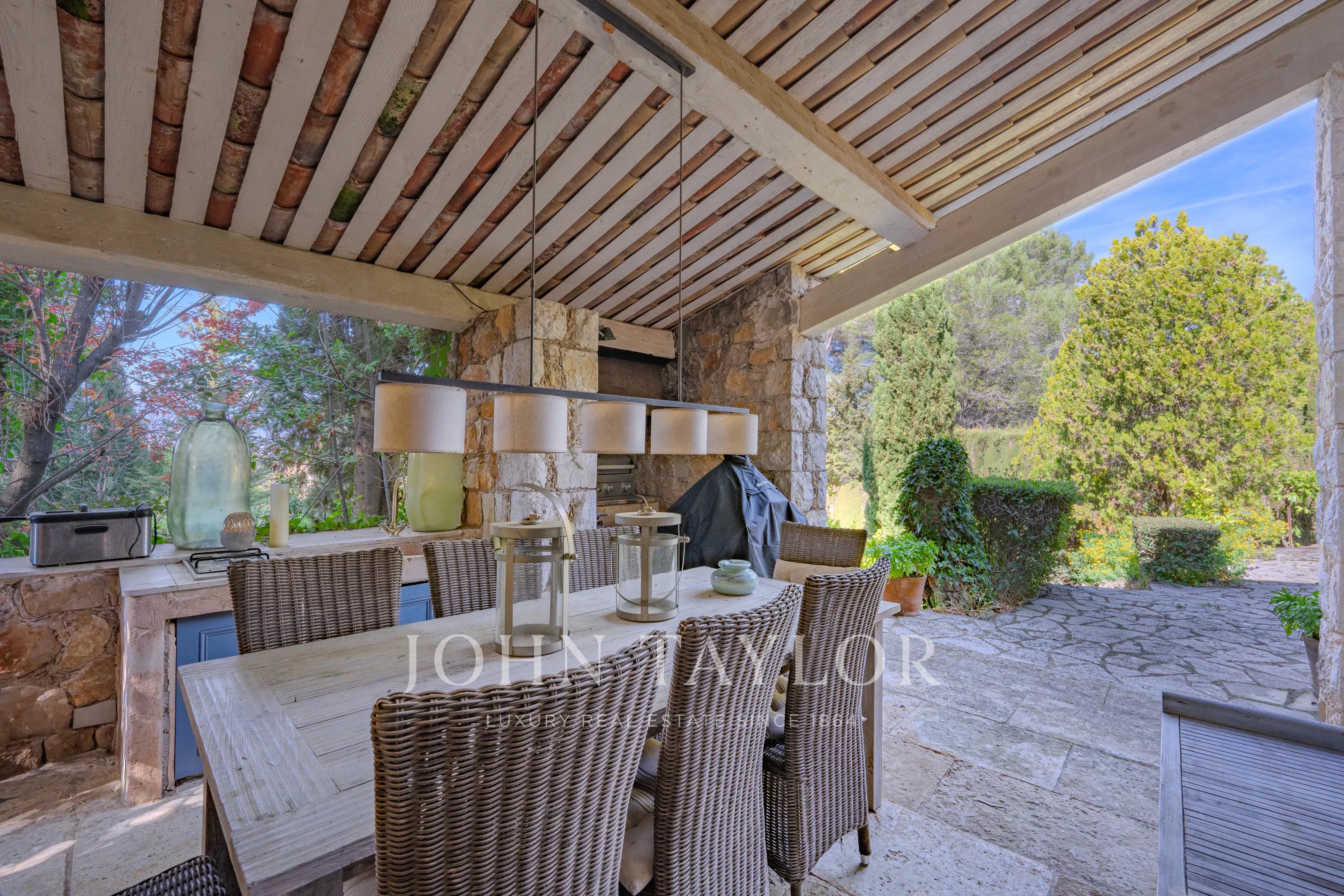 Сразу при входе собственность раскрывает просторную жилую зону, гармонично структурированную в несколько атмосфер: приемная гостиная, музыкальное пространство, уютный уголок с камином и кабинет, создавая атмосферу одновременно дружелюбную и изысканную. Обеденная зона и просторная кухня дополняют этот однопространственный комплекс.