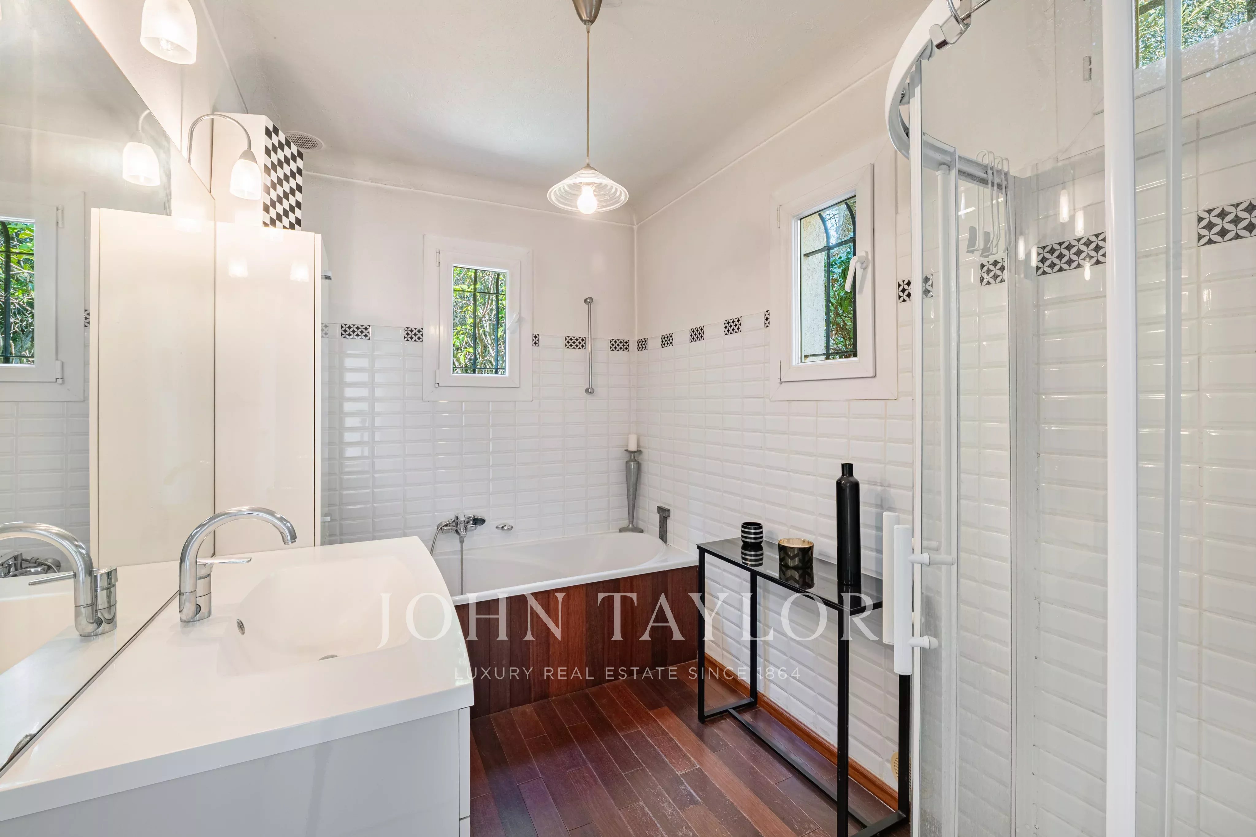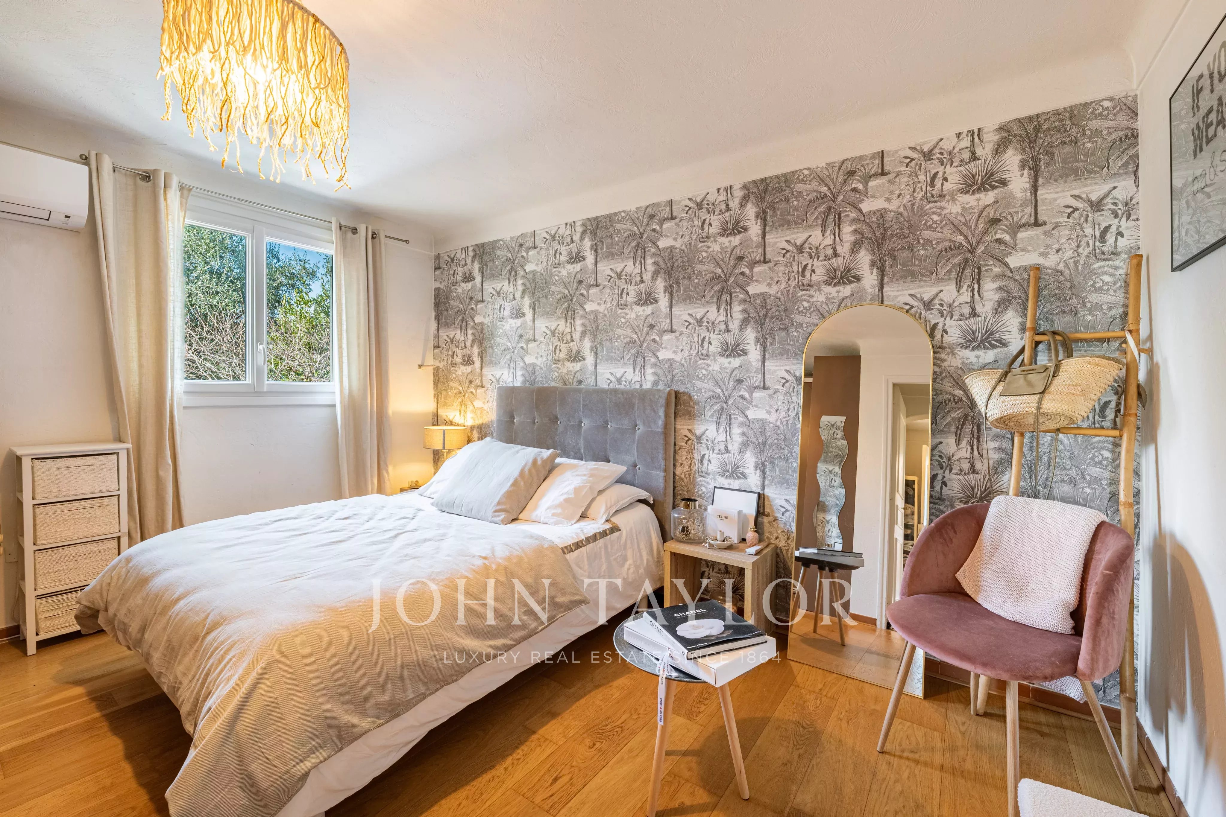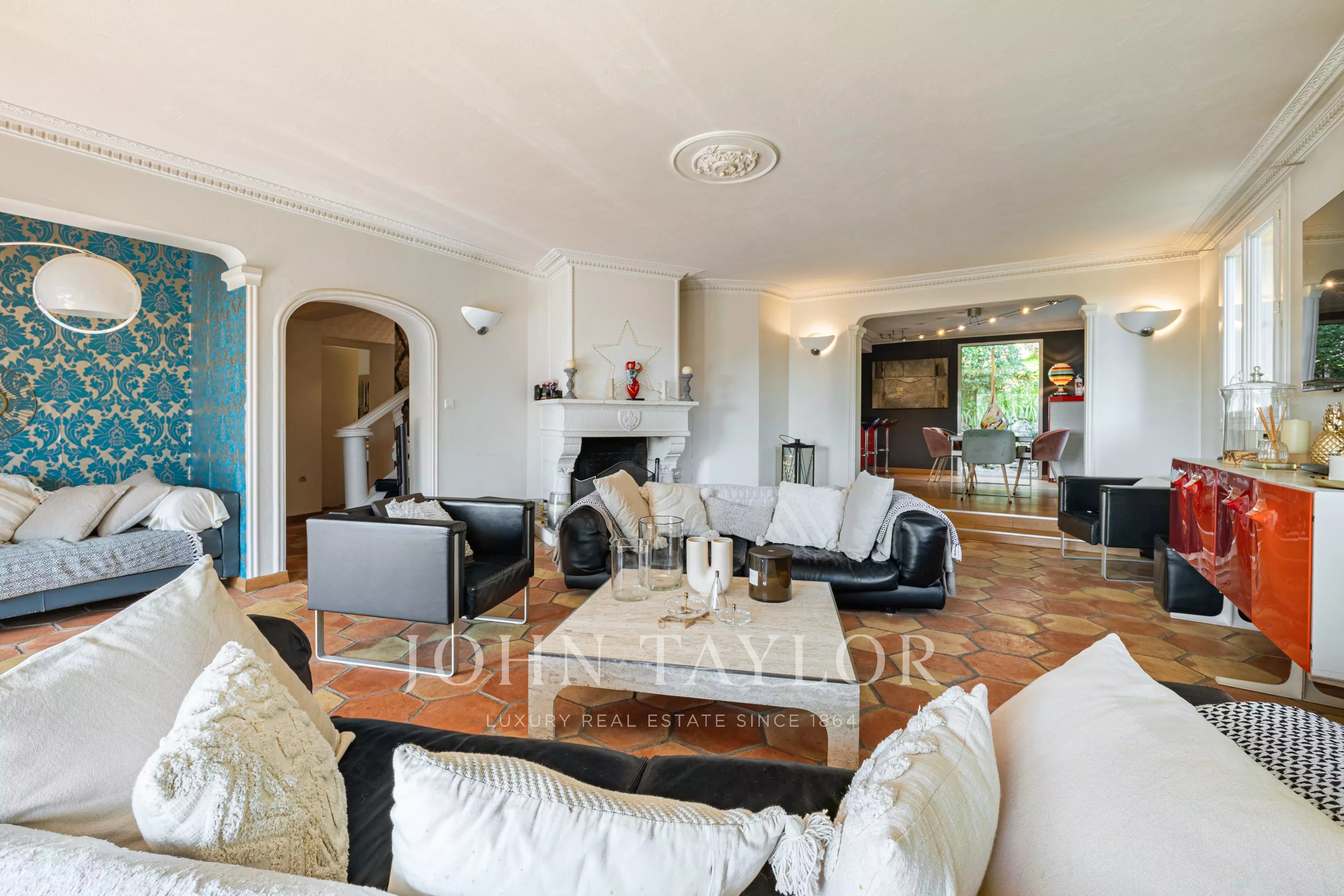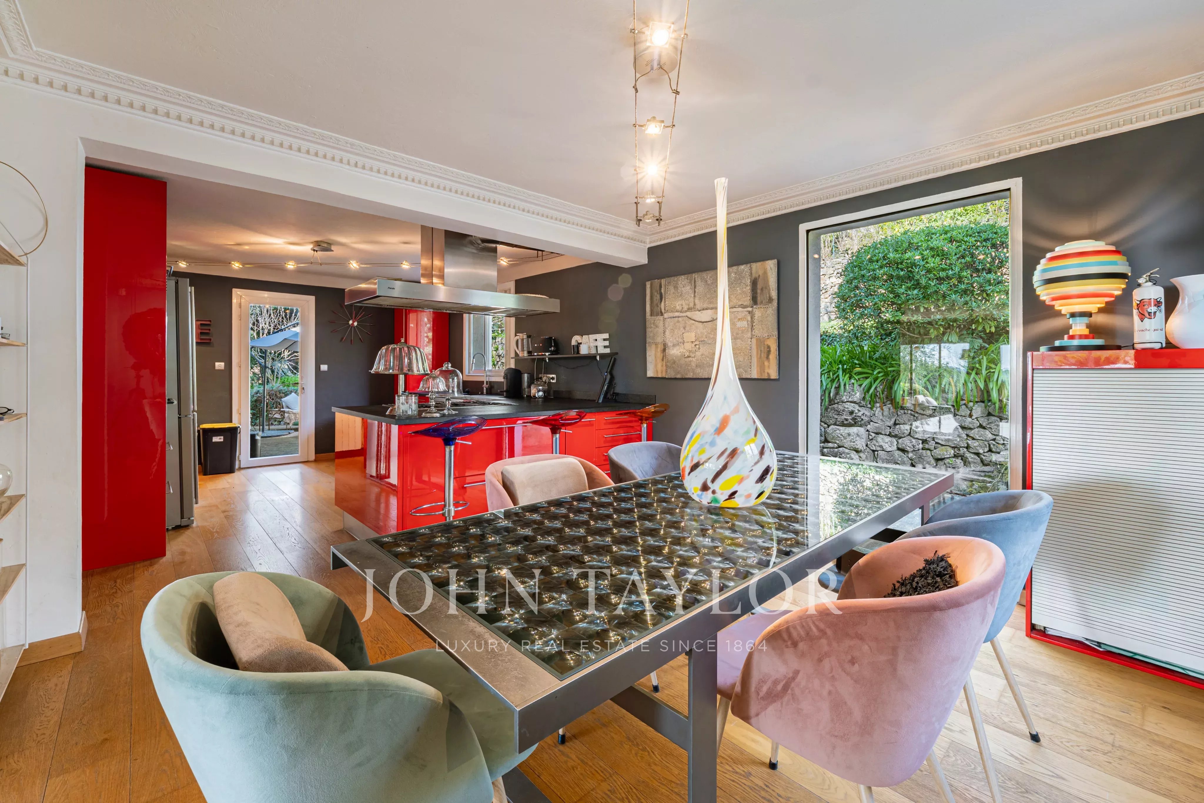 Эта элегантная вилла площадью около 220 м² расположена в конце тупика в престижном жилом районе и имеет южную ориентацию, доминирующее положение и быстрый доступ к Каннам.
