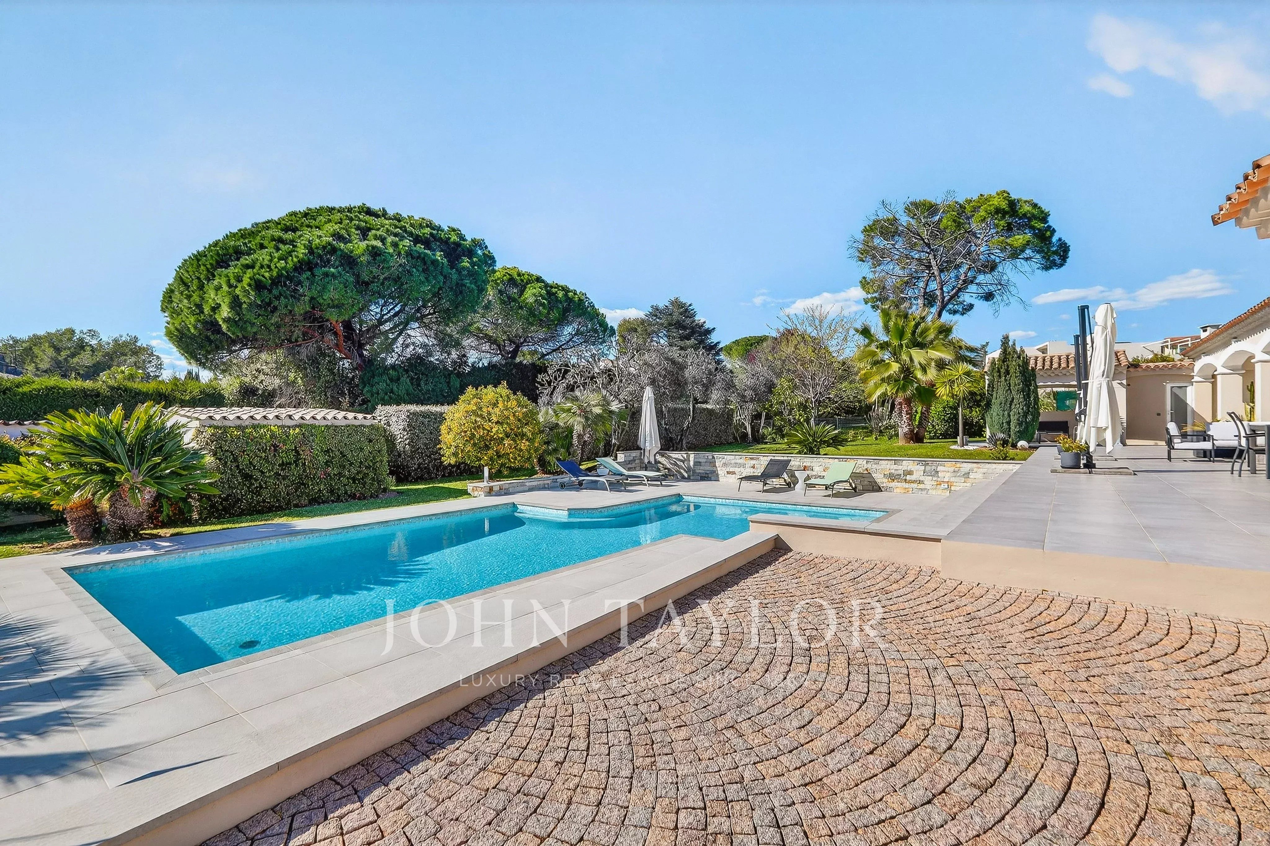 Ухоженные и легкие в использовании наружные пространства включают бассейн с домиком у бассейна, мощеный двор и двухместный гараж, подчеркивая преимущества этого имущества.']}]}'