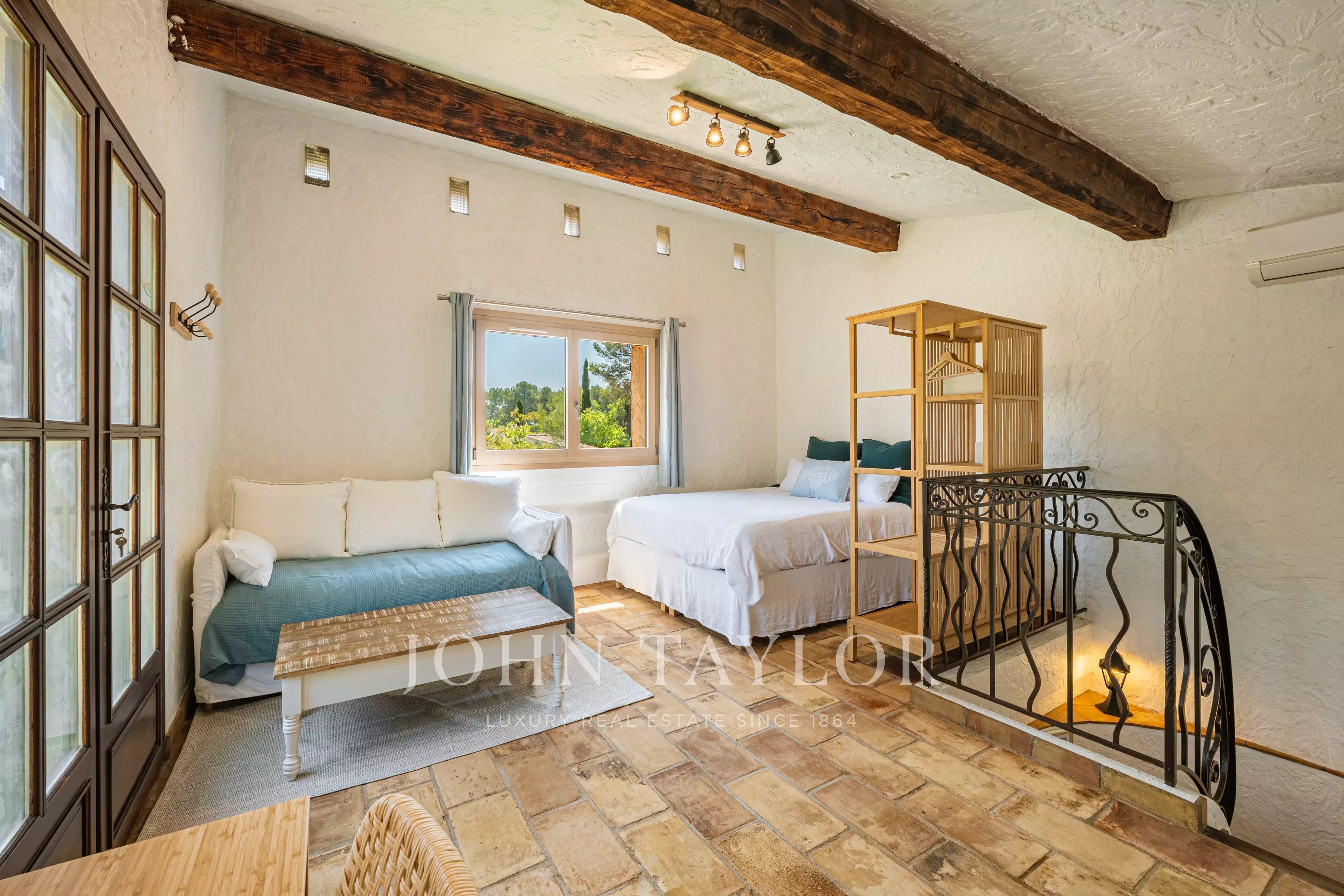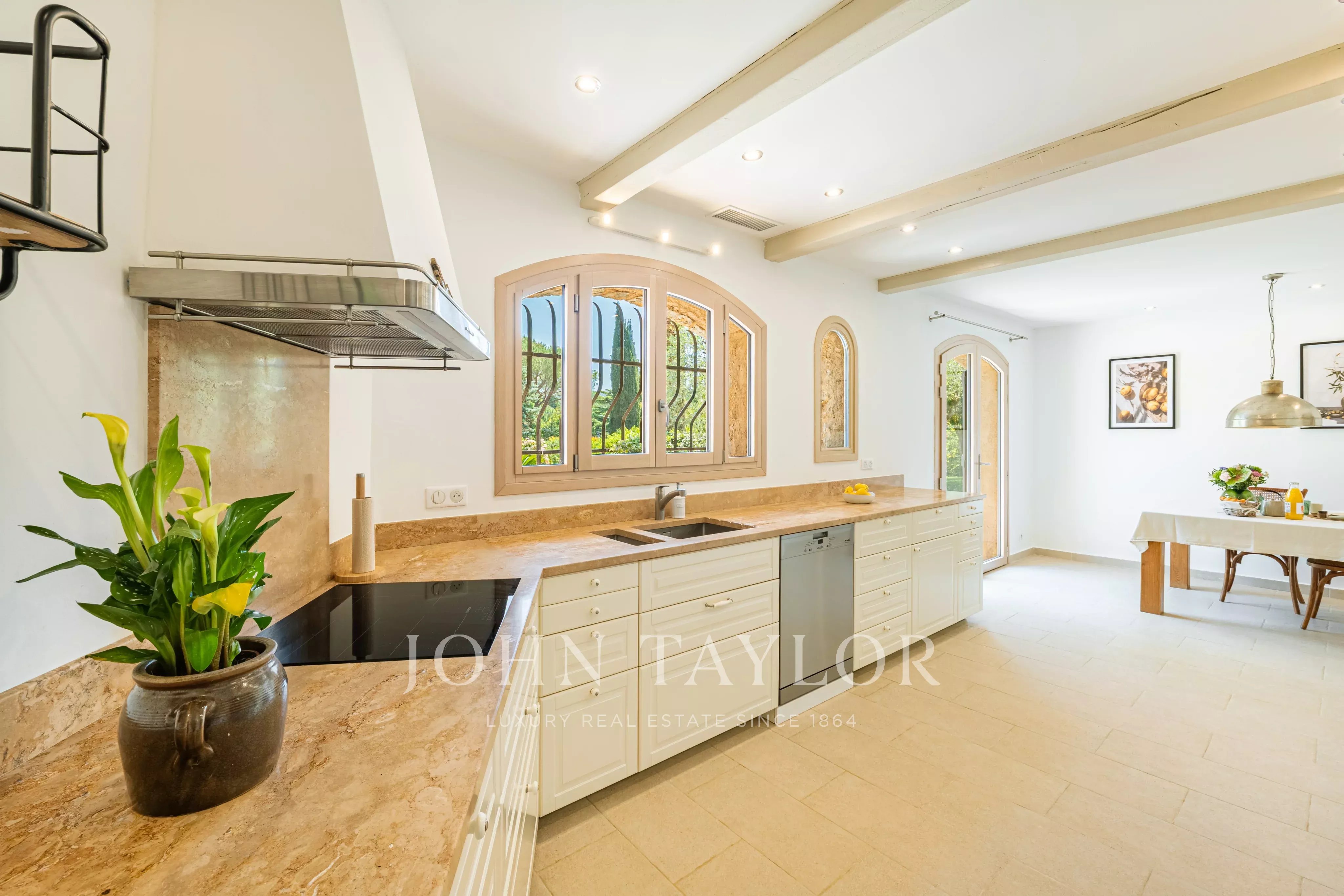 В сердце частной и охраняемой усадьбы расположено элегантное одноэтажное провансальское поместье, уютно расположенное в спокойной и охраняемой среде.
