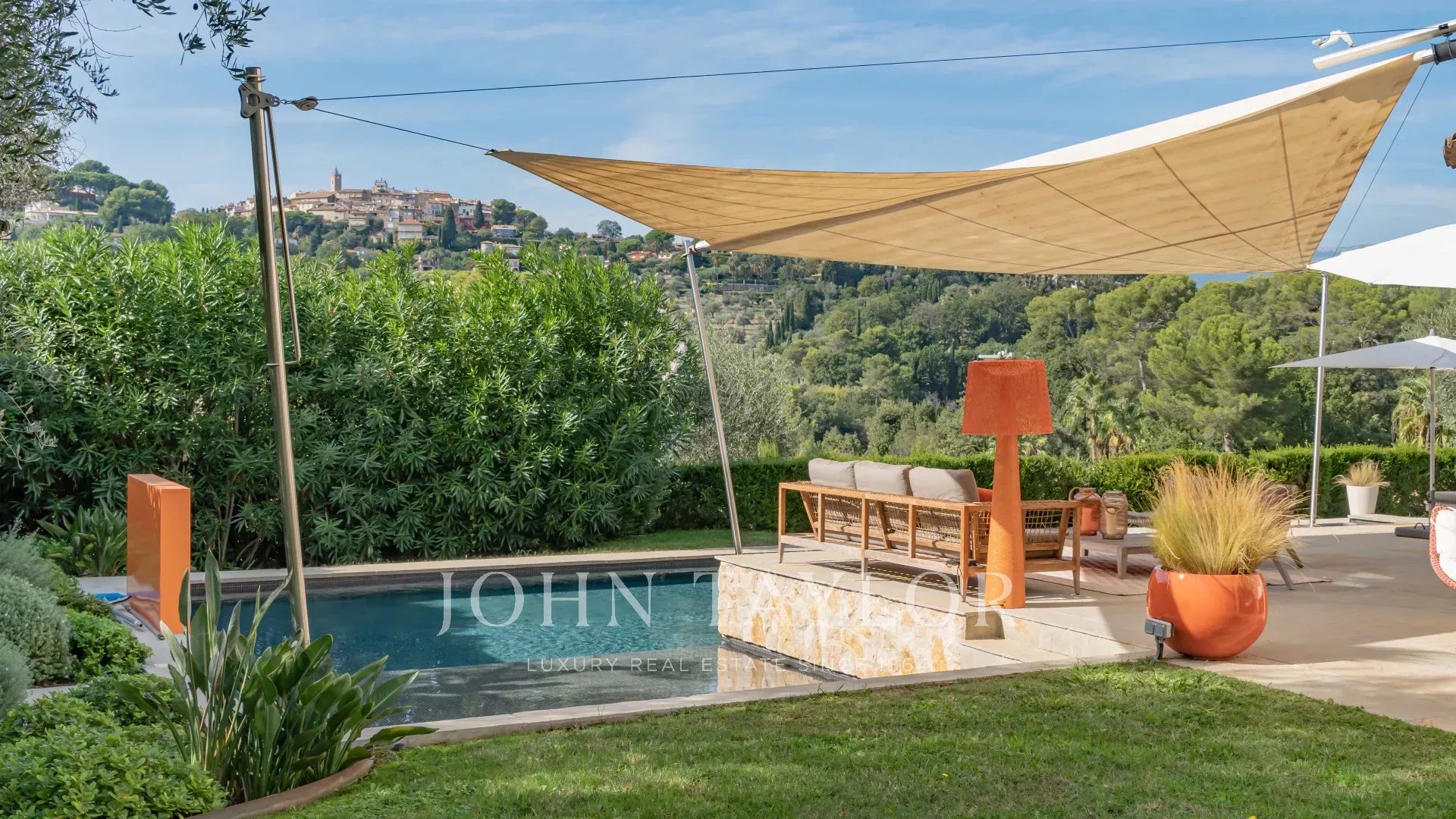 Вилла расположена всего в 1 км от деревни Мужен, известной своими художественными галереями и ресторанами для гурманов, по соседству с особняком Пабло Пикассо, в районе Шапель Нотр-Дам-де-Ви, пользующемся большим спросом.