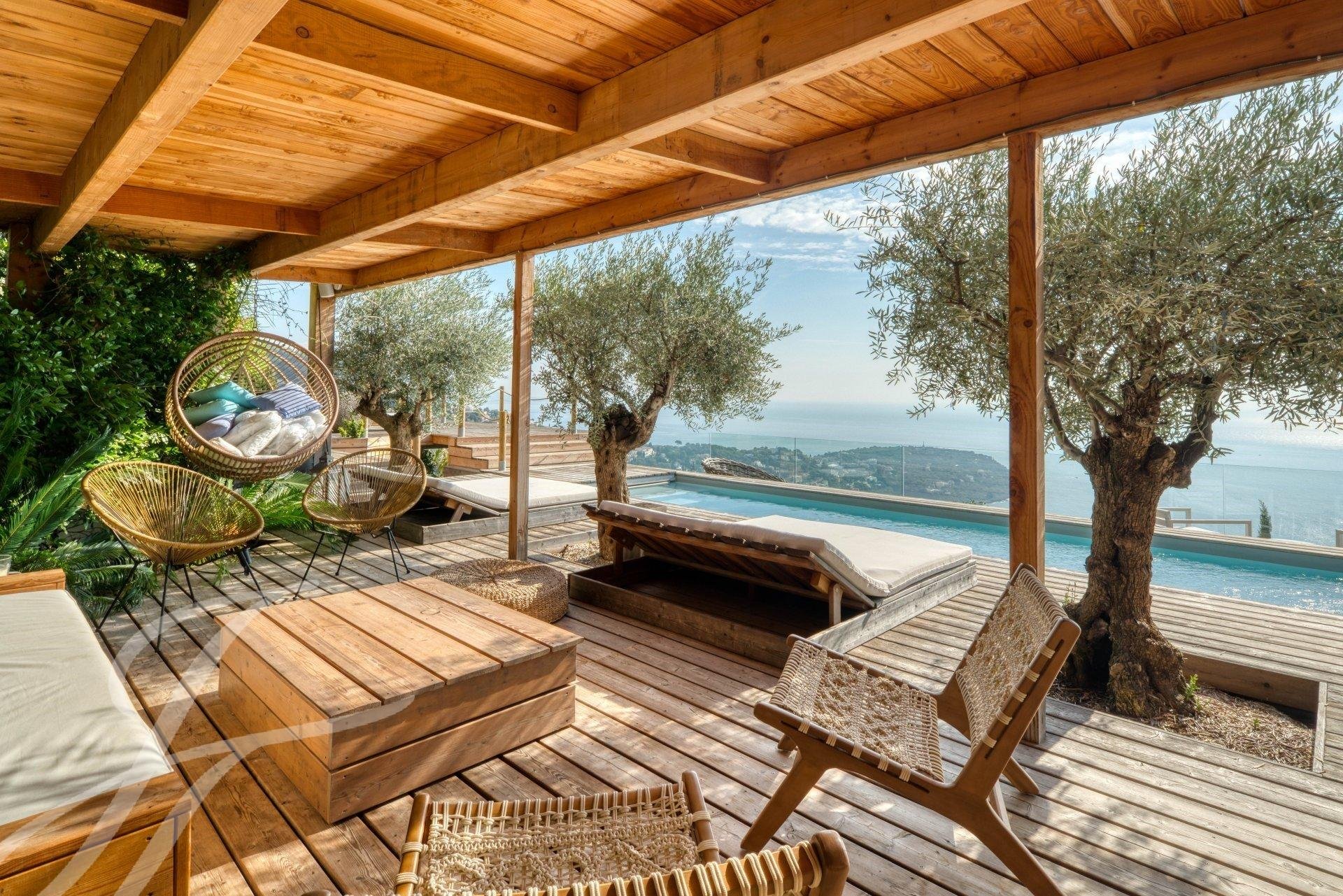 Эта вилла, где царит неподвластный времени стиль жизни, может похвастаться обширными террасами, включая красивую зону бассейна с домиком у бассейна и летней гостиной, приподнятую террасу с очаровательным видом на море, обеденную зону на открытом воздухе с провансальским шармом и панорамным видом на море.