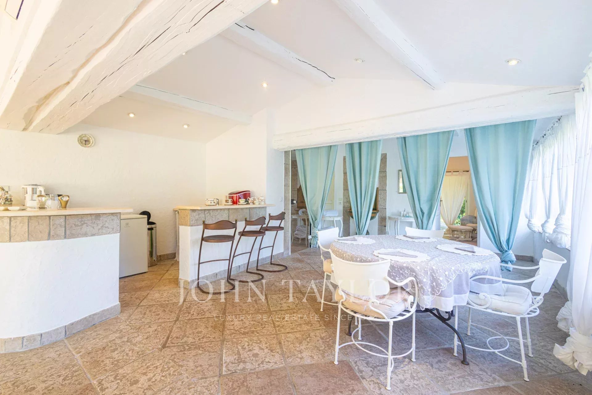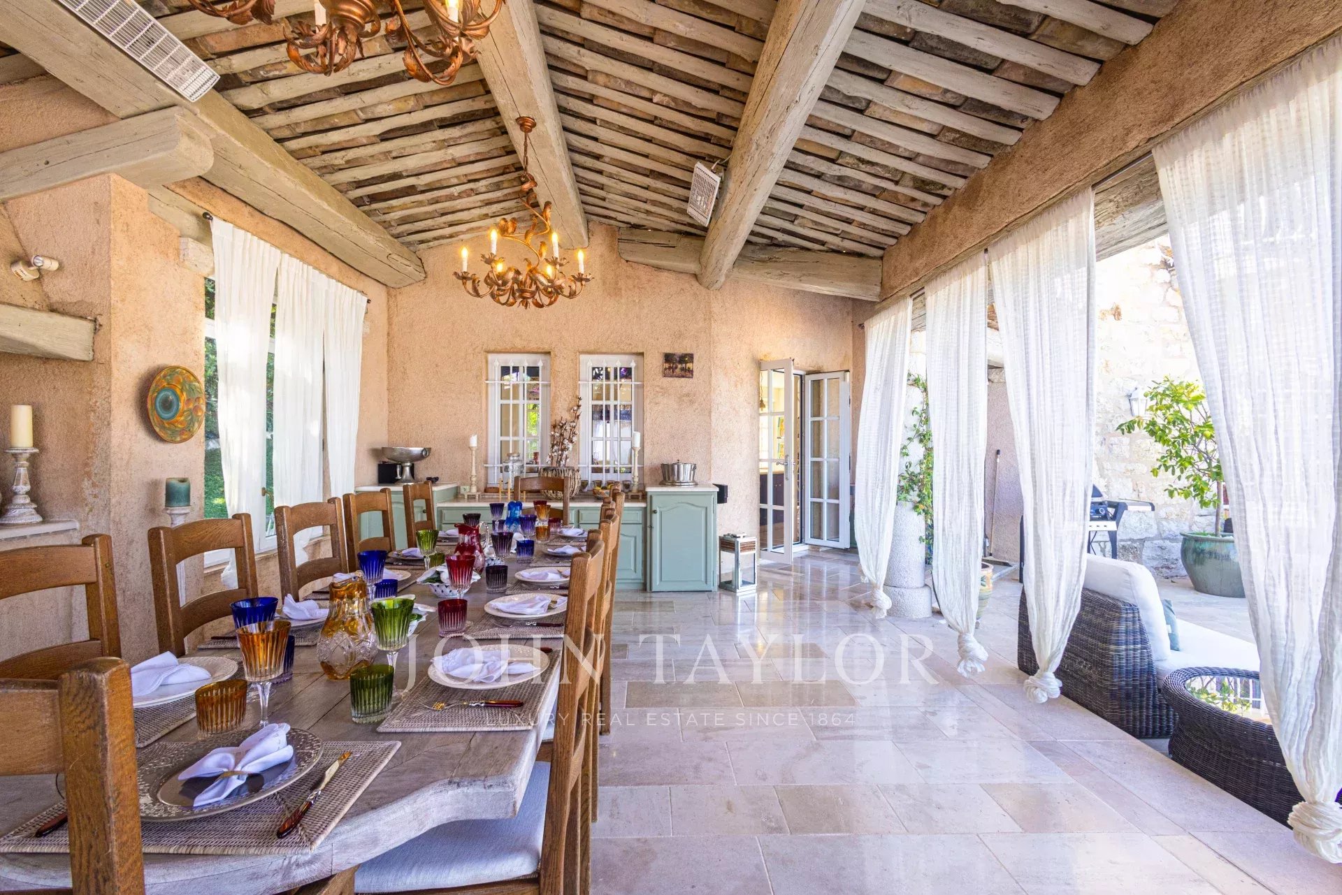 Эта роскошная вилла в провансальском стиле площадью более 700 м² расположена в престижном районе Ла-Колле-сюр-Луп, в двух шагах от Сен-Поль-де-Ванс, откуда открываются захватывающие панорамные виды на море.
