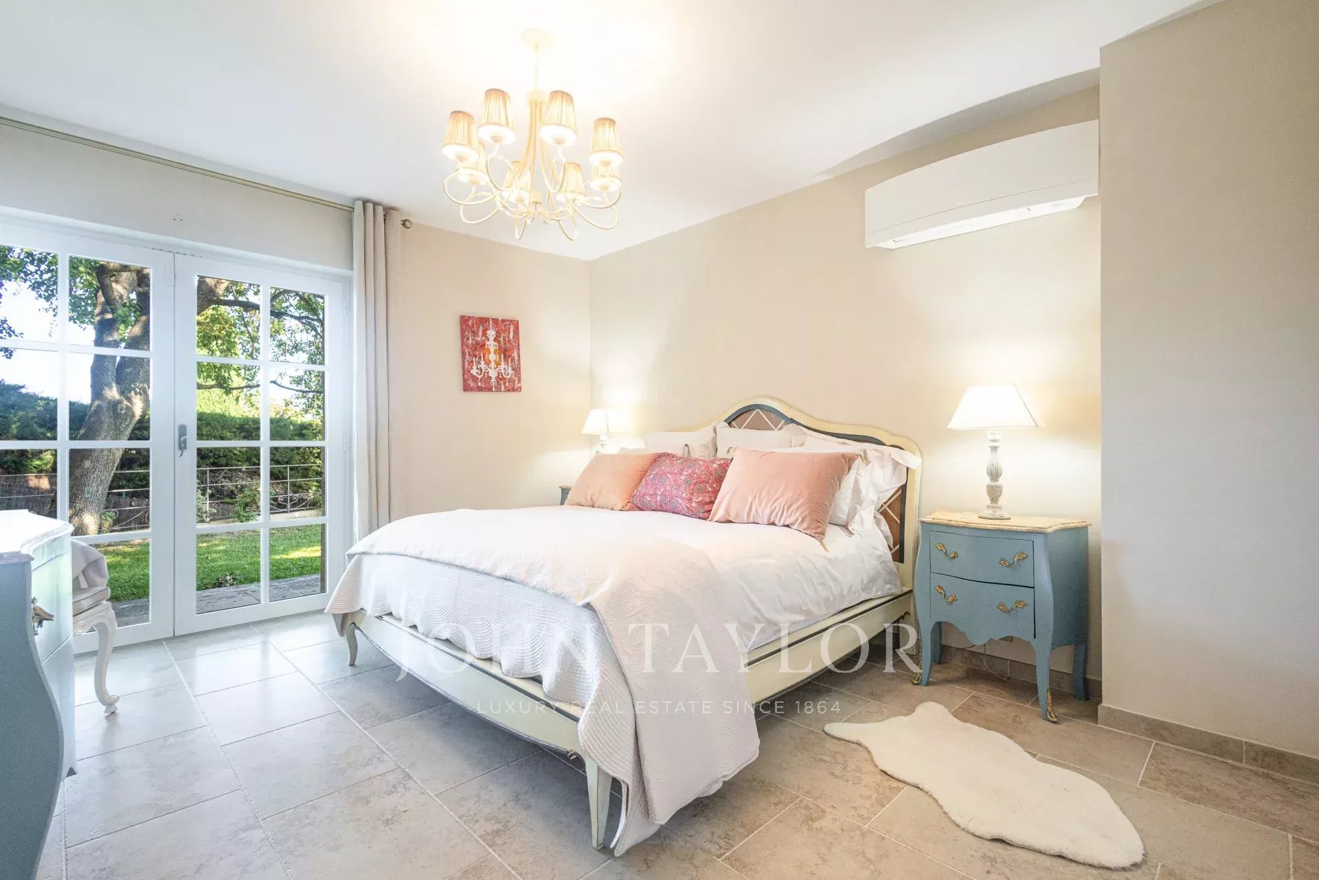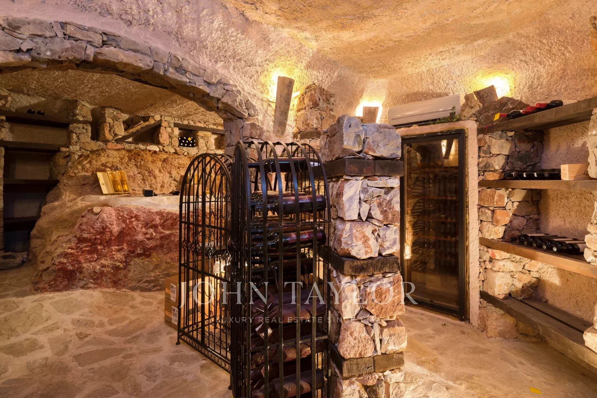 Главный дом включает в себя светлую гостиную с эркером, 2 сьюта на первом этаже и второй этаж, предназначенный для хозяев. На нижнем уровне сада расположены кинозал, бильярдная, винный погреб и отдельная квартира с 2 спальнями.