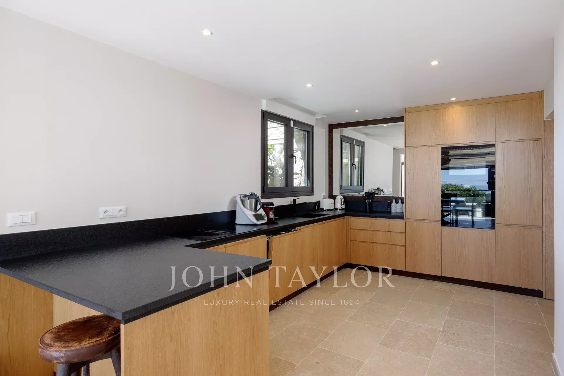 Дом полностью отремонтирован и оснащен по последнему слову техники. Он имеет тройную экспозицию на юг, восток и запад, благодаря чему комнаты наполнены светом в течение всего дня. Дом состоит из просторной светлой гостиной, великолепной оборудованной кухни, подсобного помещения и четырех спален с ванными комнатами, включая просторную главную спальню с собственной террасой площадью около 40 м².