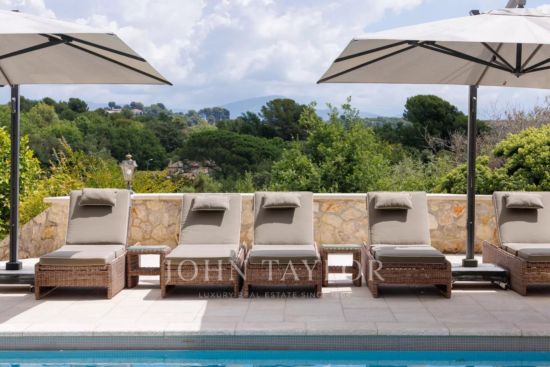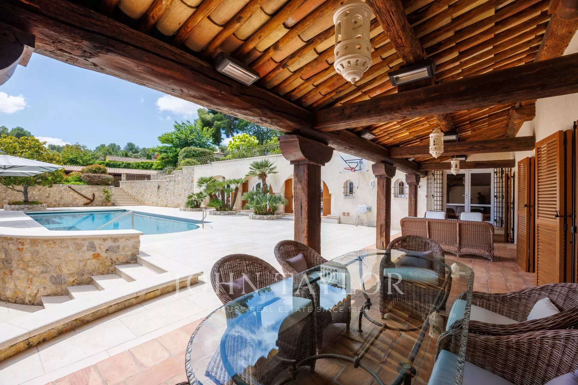 Всего в нескольких минутах от очаровательной деревушки Ла-Колле-сюр-Луп, на великолепном участке площадью 6 575 м² с ландшафтным дизайном царит абсолютная тишина и спокойствие. Здесь есть зеркальный бассейн с подогревом, большие газоны, каменные террасы и обширный лесной массив.