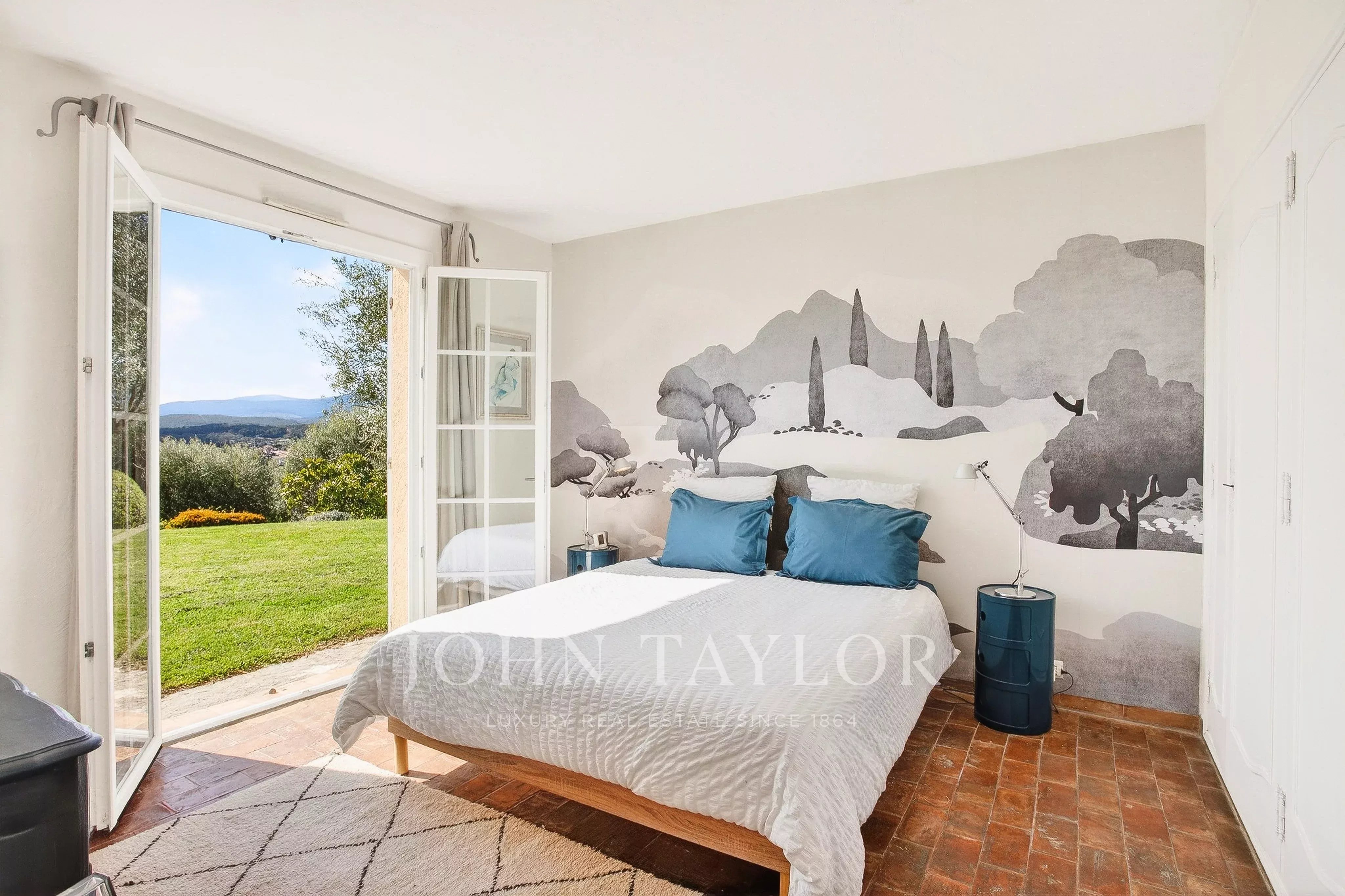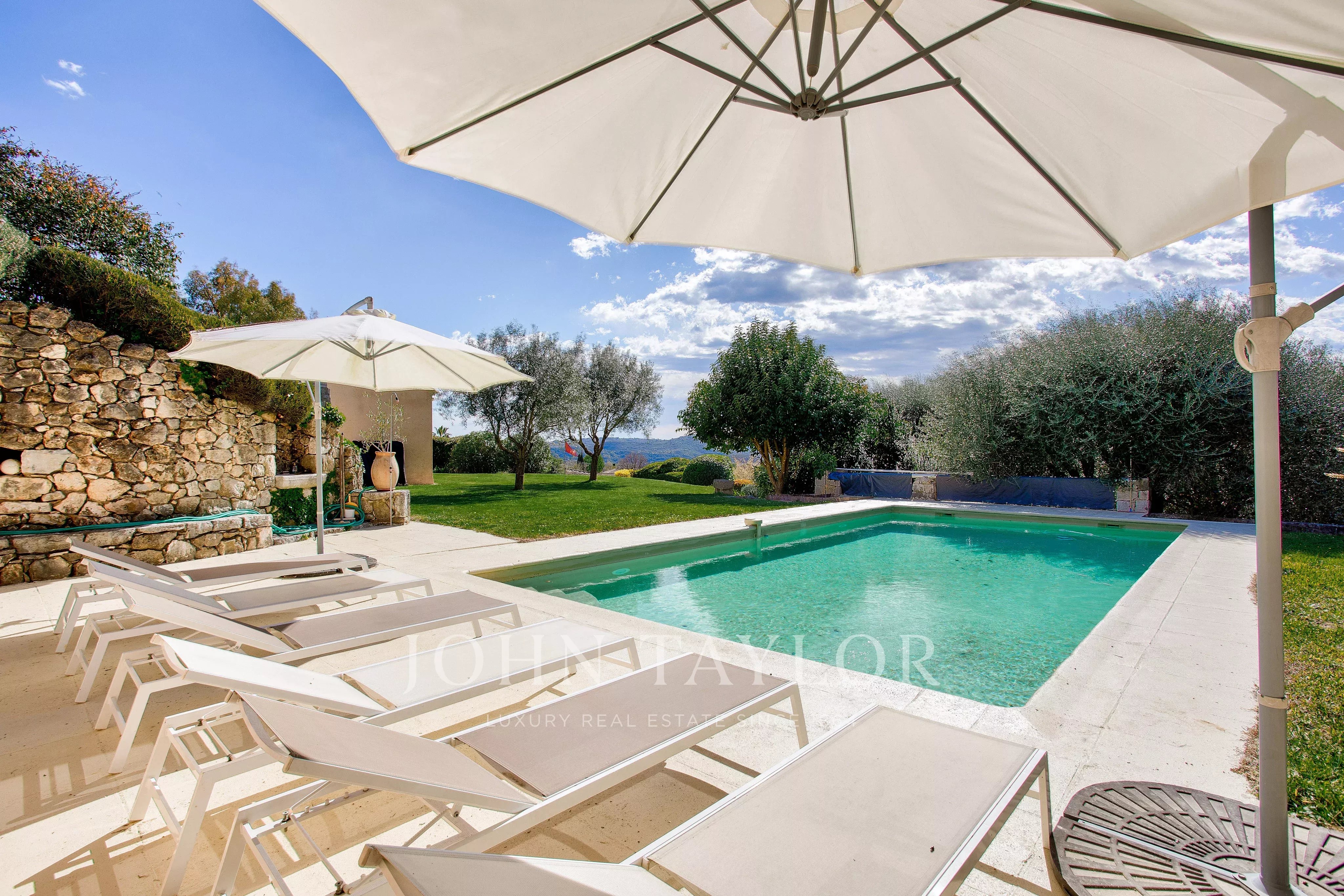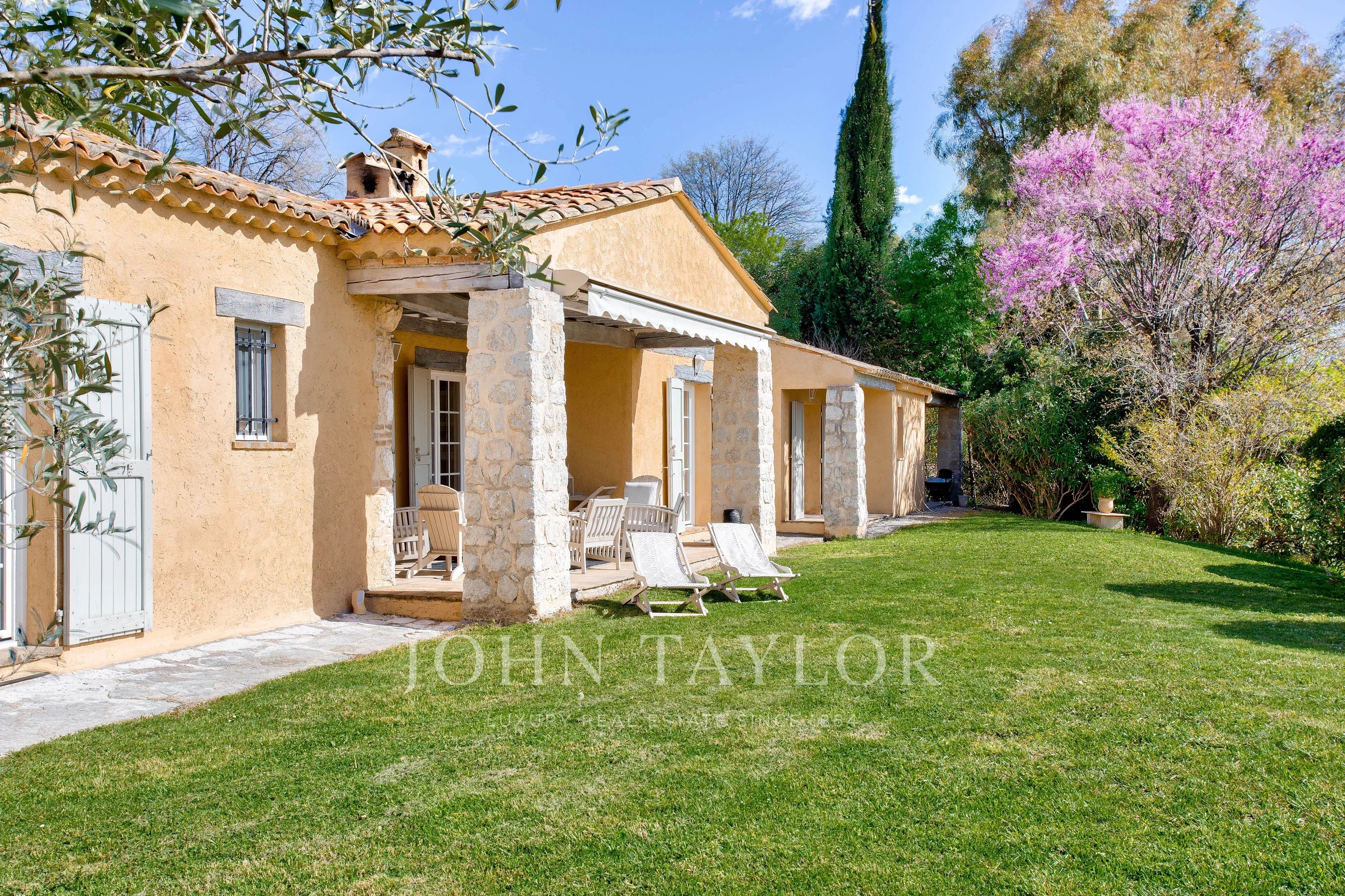 Расположенный на возвышенности Сан-Поль де Ванс, в небольшом районе из двух участков, этот очаровательный одноэтажный дом площадью 175 м² на ровной территории площадью 2358 м² предлагает 4 спальни с ванными комнатами, кабинет, бассейн, гараж и панорамный вид на зеленую и спокойную окружающую среду.