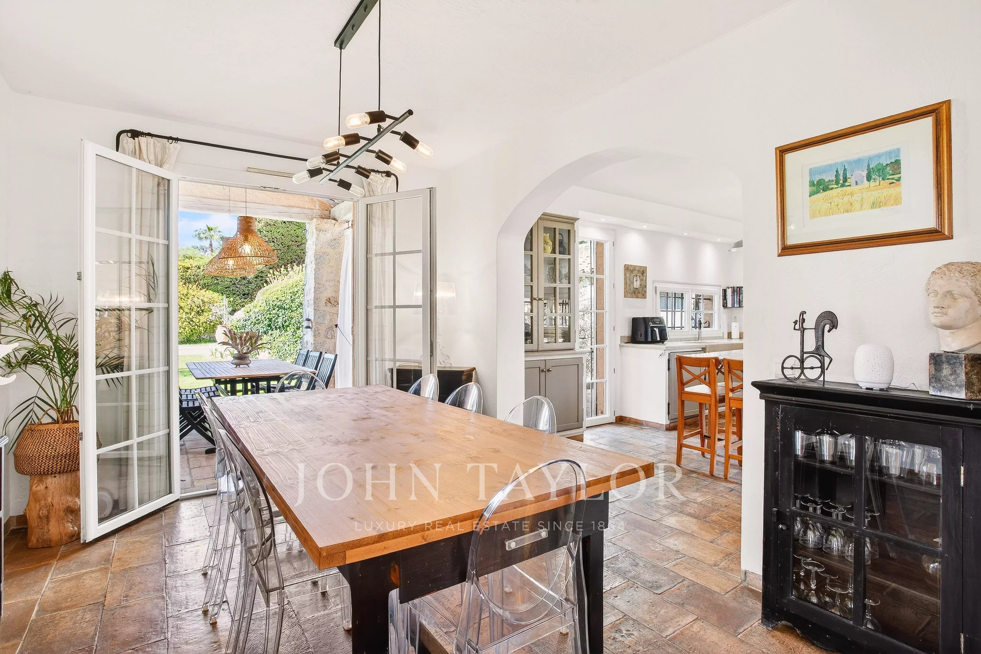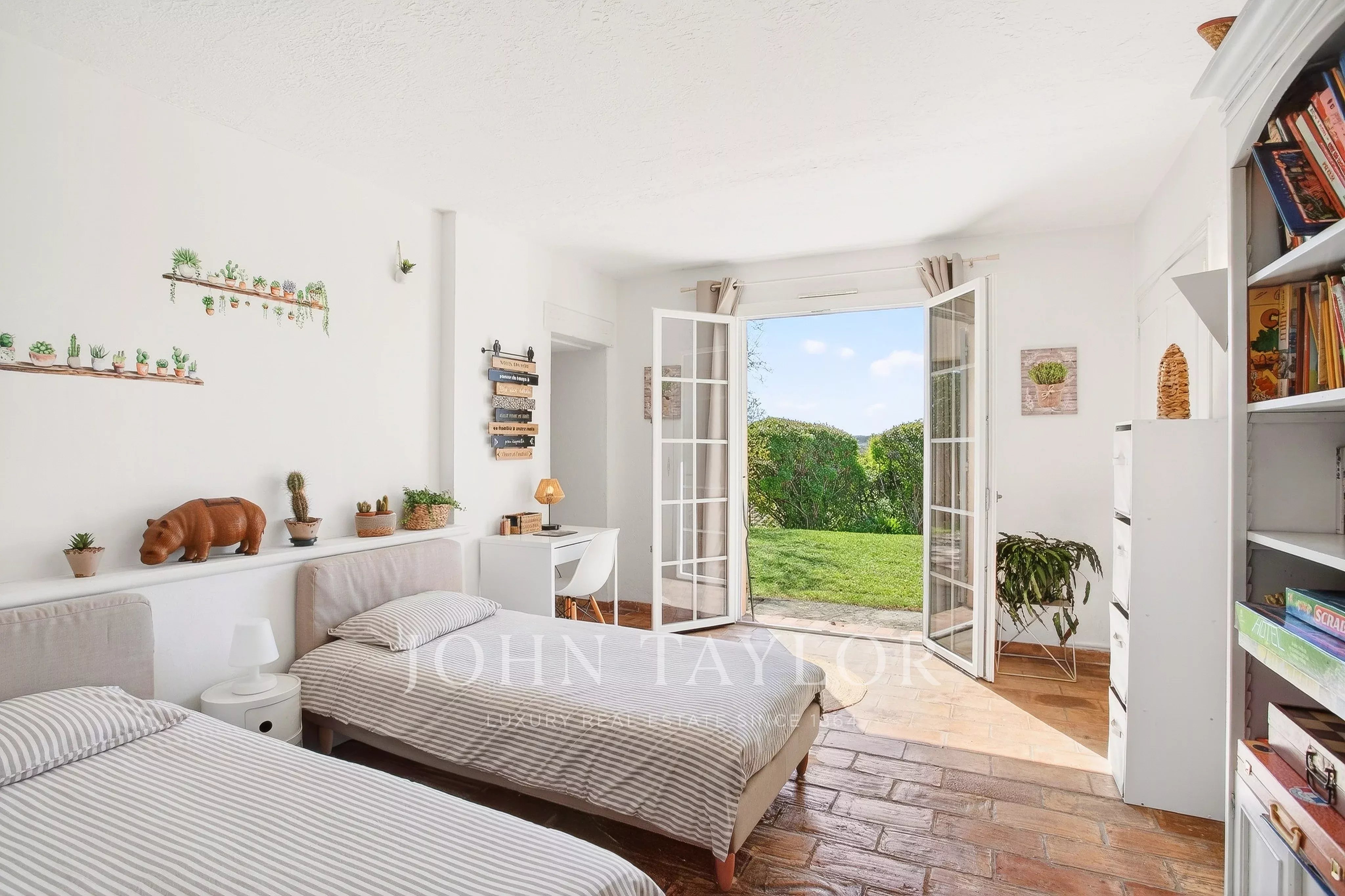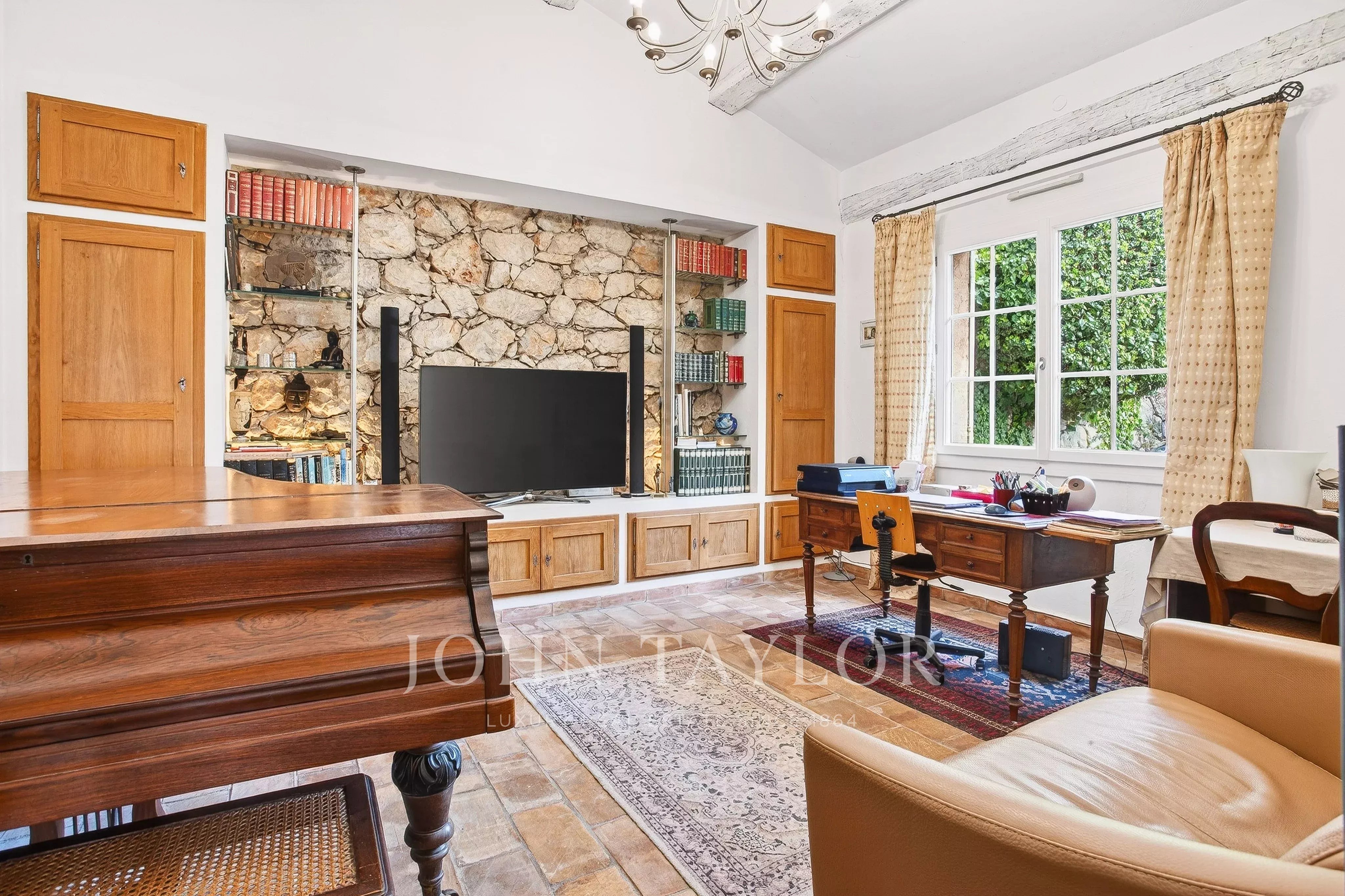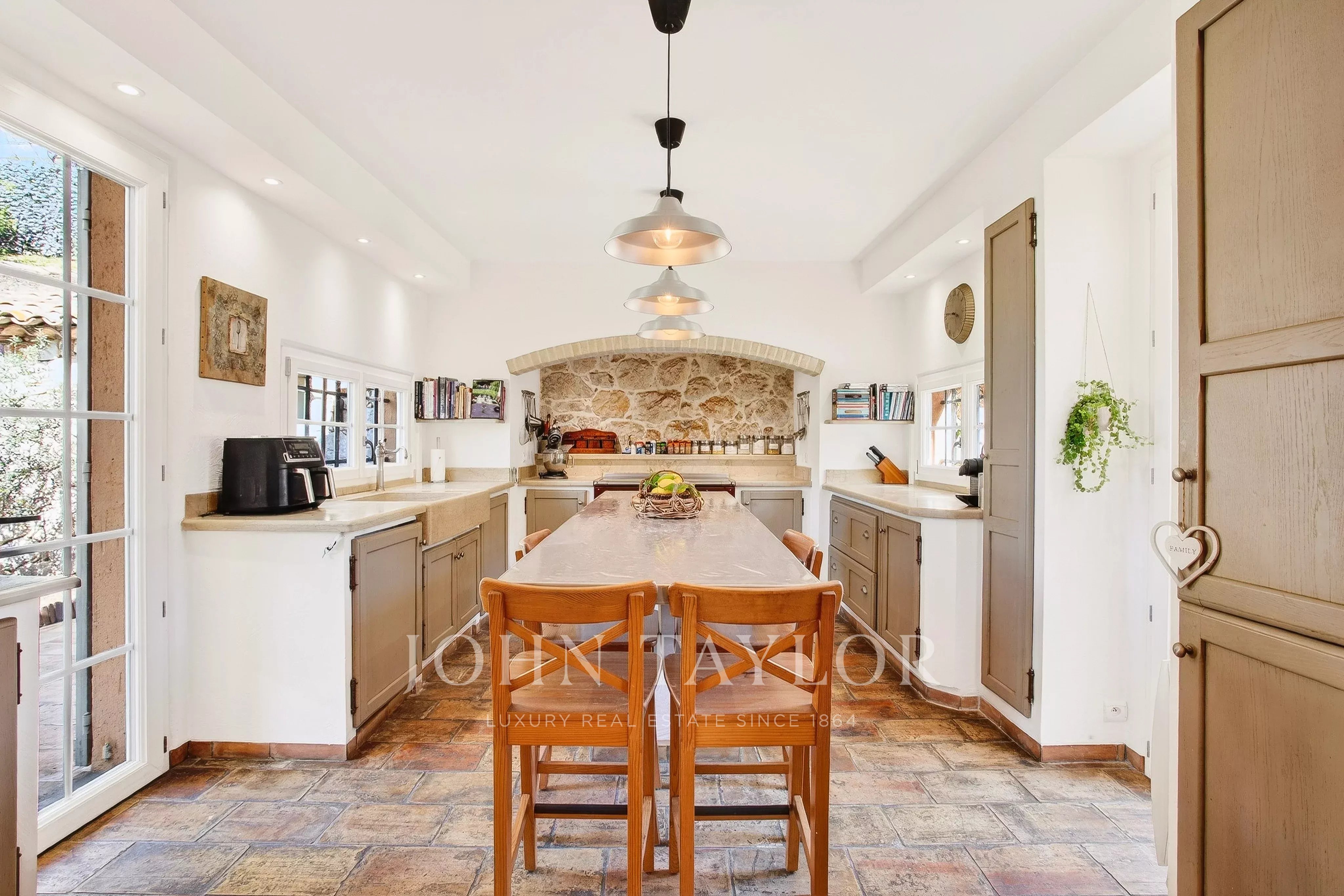 Расположенный на возвышенности Сан-Поль де Ванс, в небольшом районе из двух участков, этот очаровательный одноэтажный дом площадью 175 м² на ровной территории площадью 2358 м² предлагает 4 спальни с ванными комнатами, кабинет, бассейн, гараж и панорамный вид на зеленую и спокойную окружающую среду.
